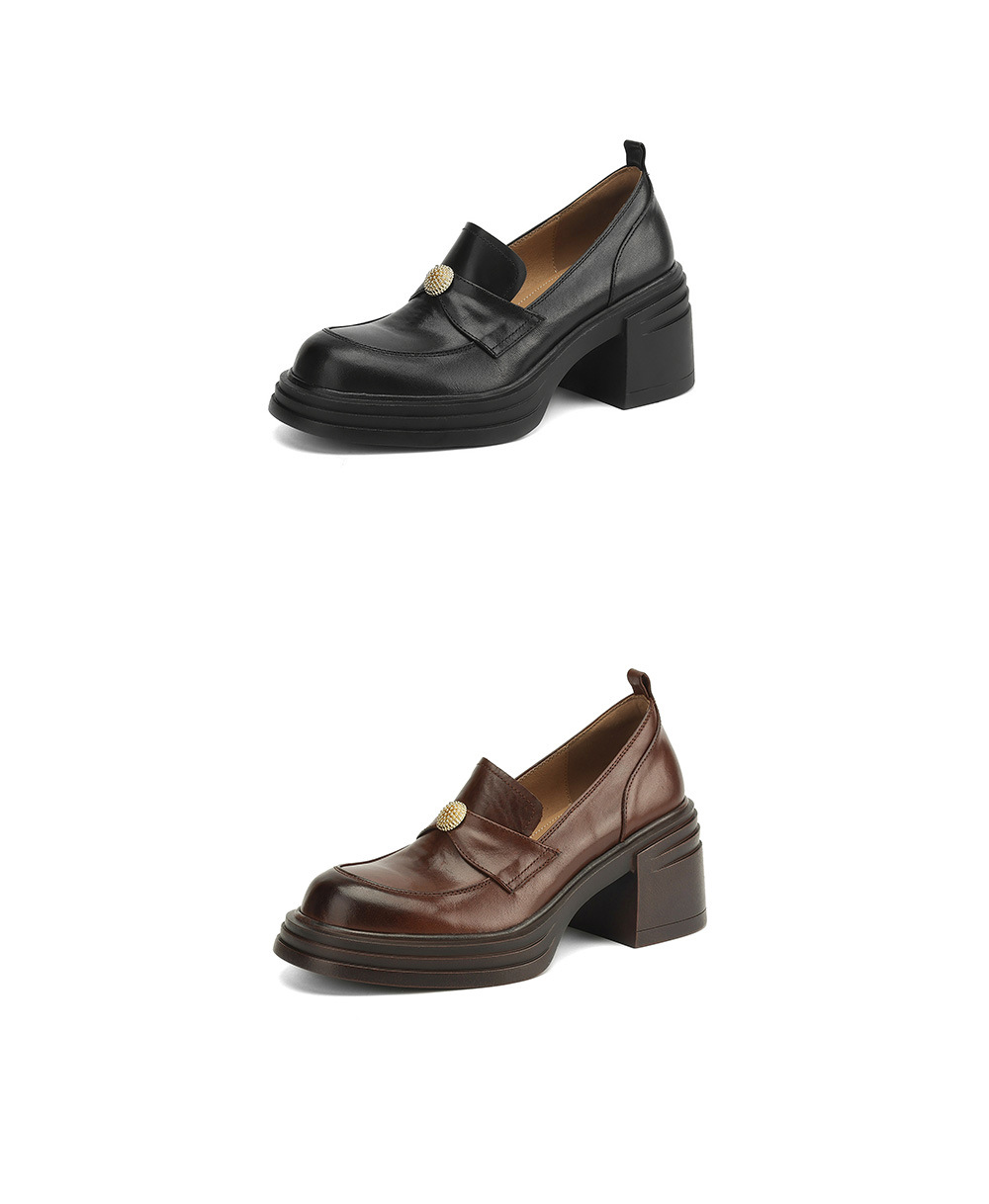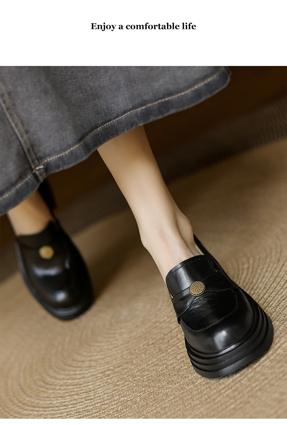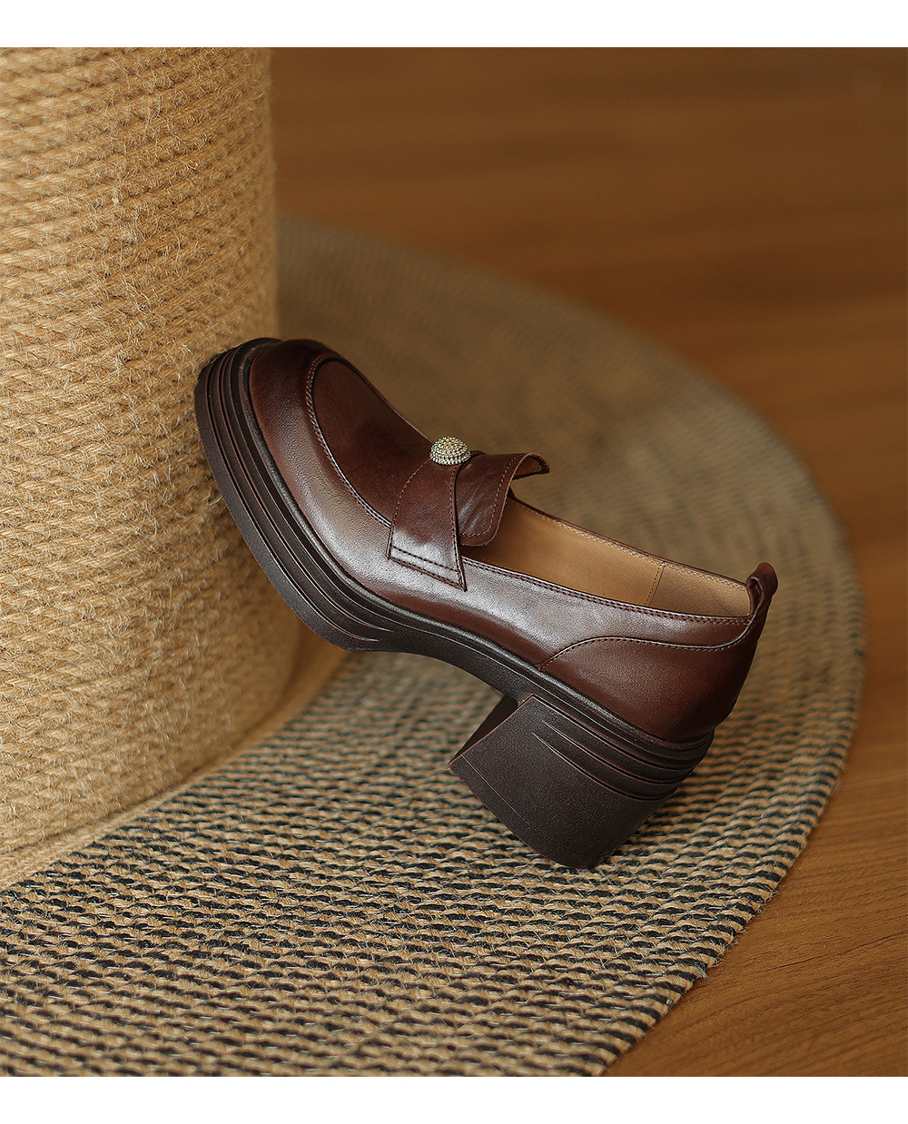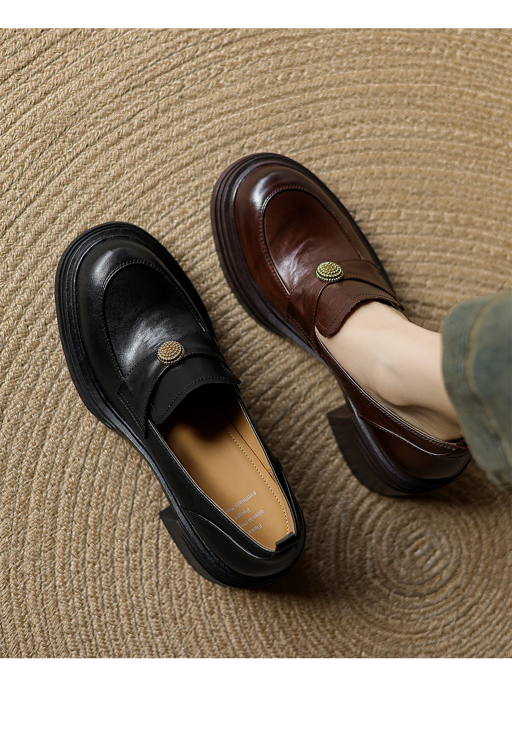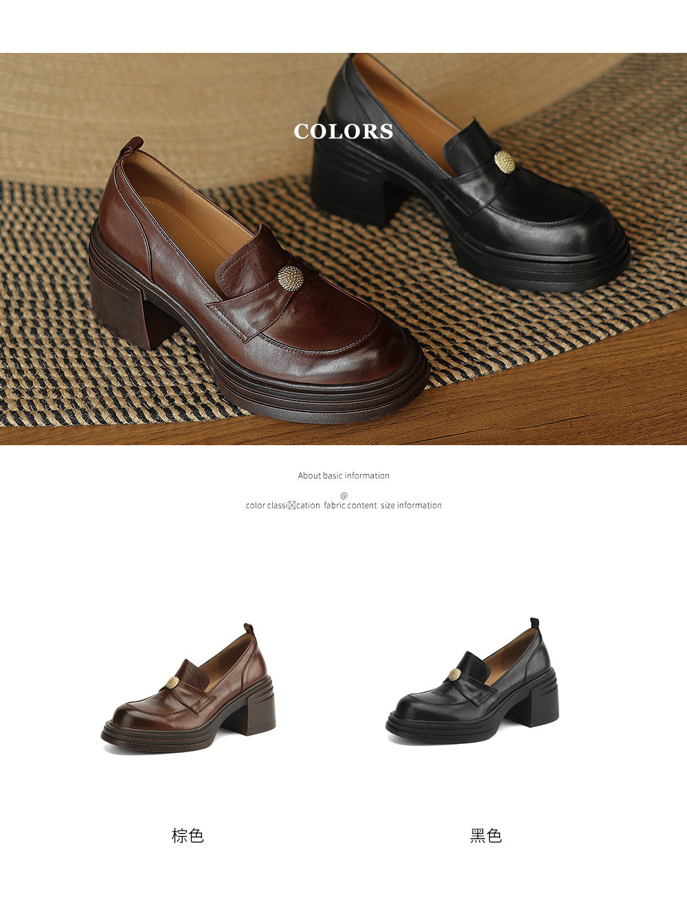 영국 스타일의 두꺼운 단독 가죽 신발 여성 정품 가죽 두꺼운 고리 2025 새로운 봄 꽃 하이힐 게으른 신발스토어 가기