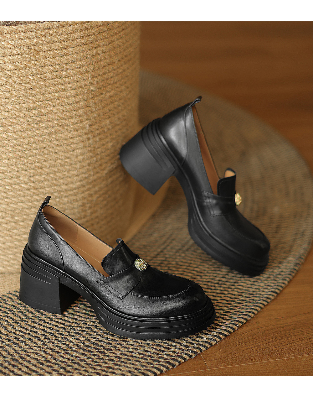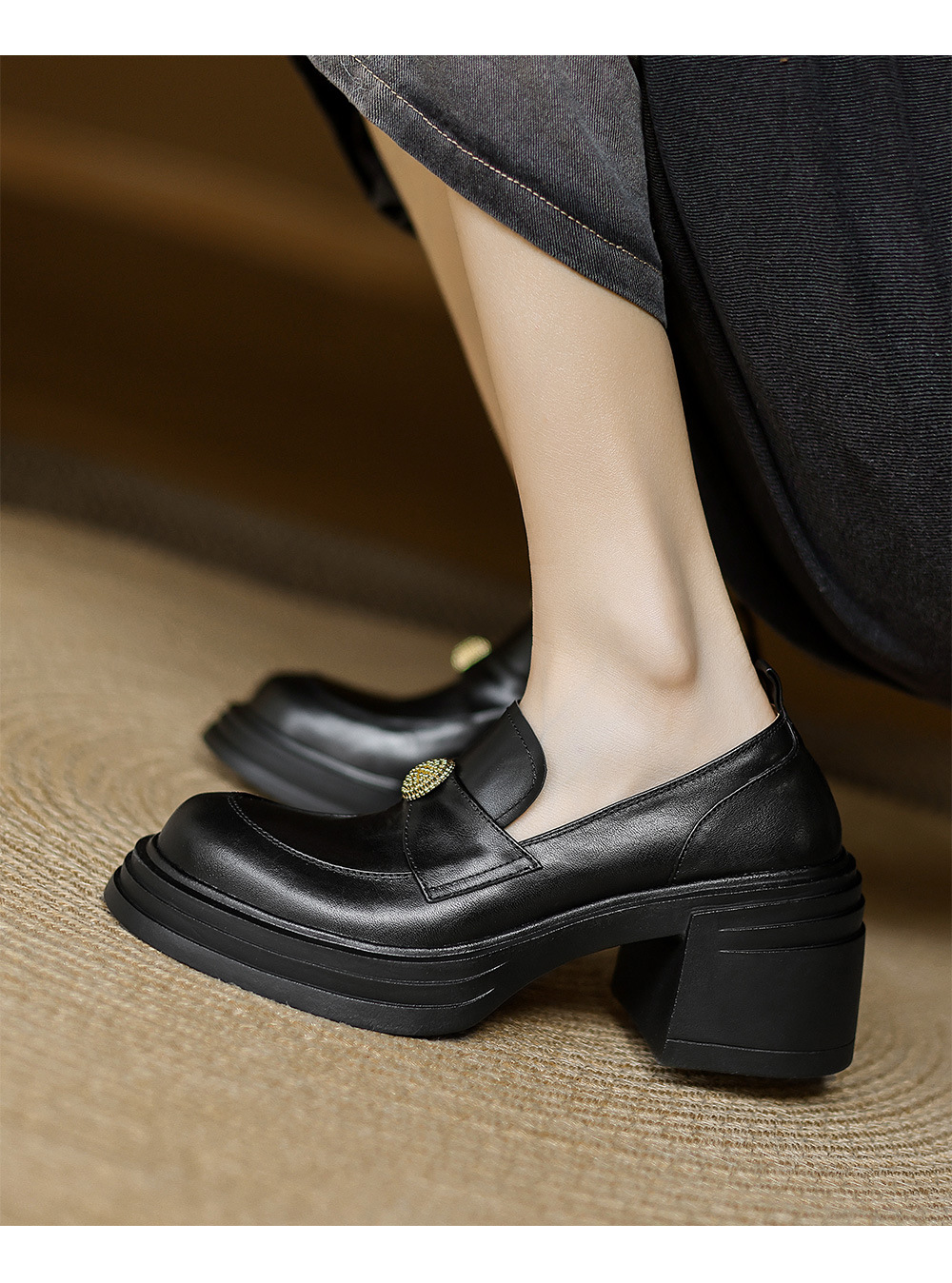 영국 스타일의 두꺼운 단독 가죽 신발 여성 정품 가죽 두꺼운 고리 2025 새로운 봄 꽃 하이힐 게으른 신발