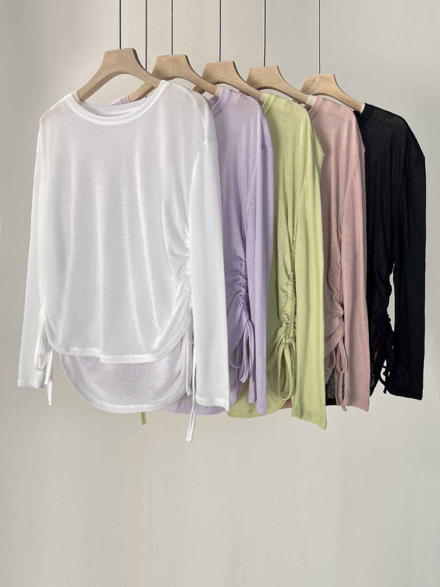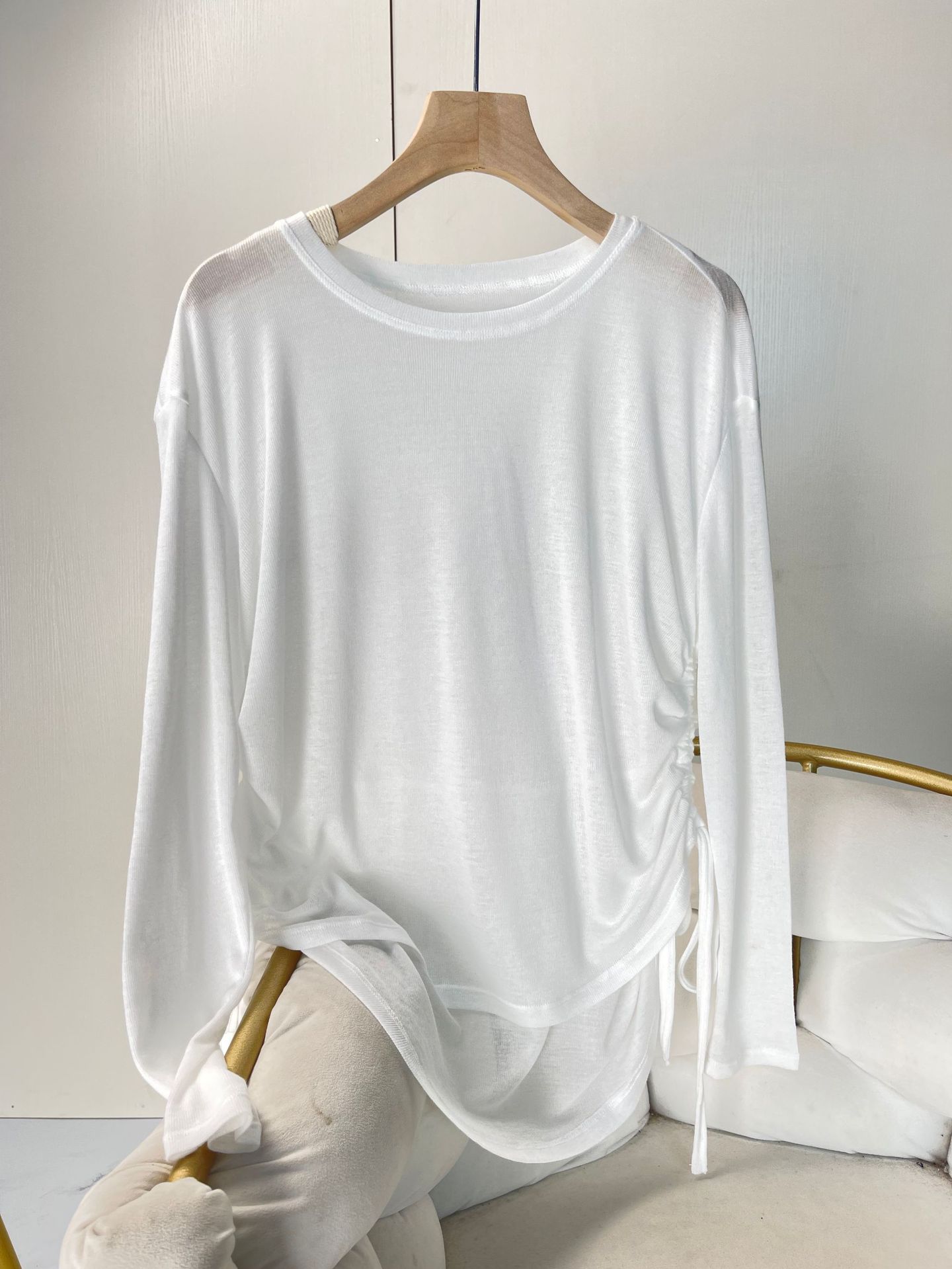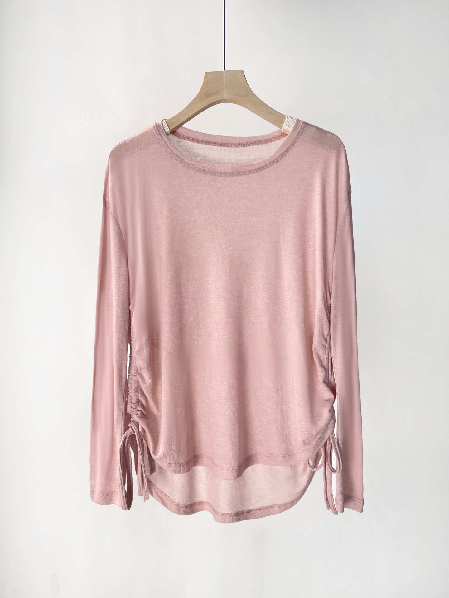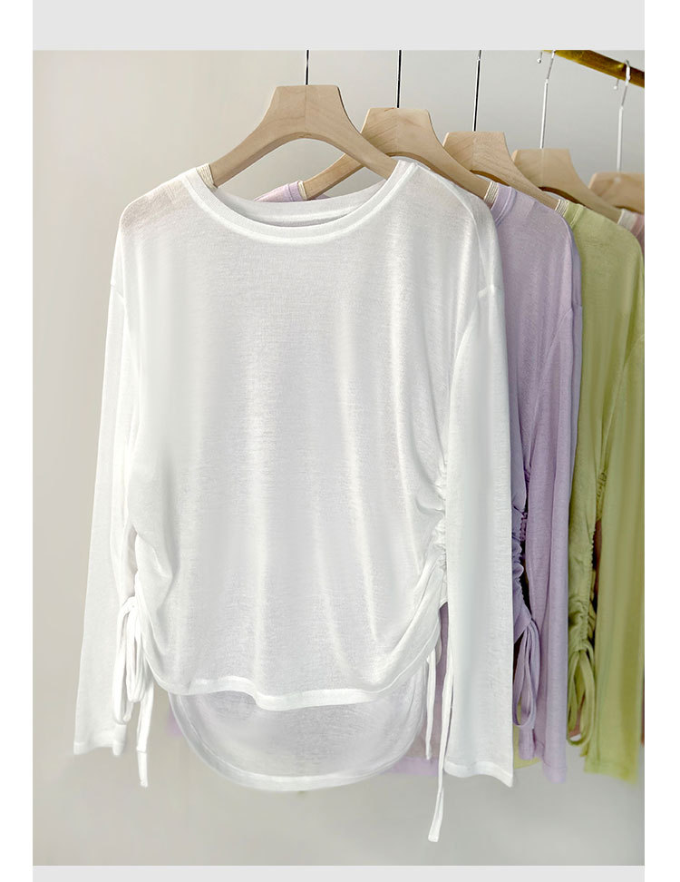 텐셀 리브 프로 스포츠 티셔츠 요가 의류 여성 러닝 긴팔 피트니스 의류 드로우 스트링 루즈 탑 블라우스 가을