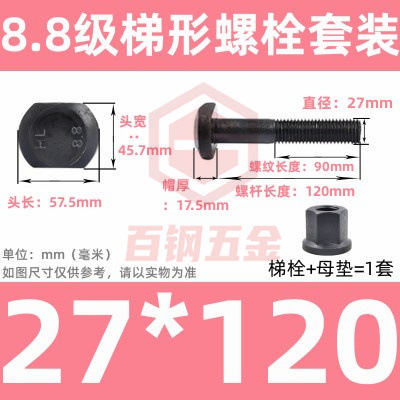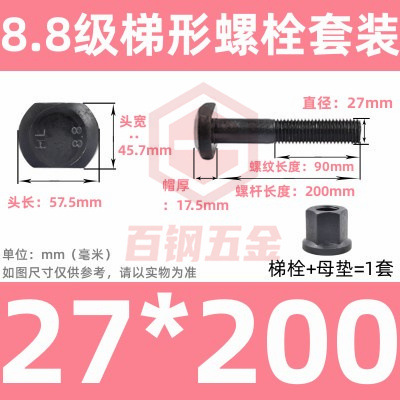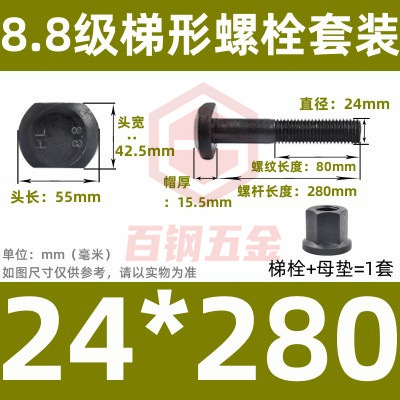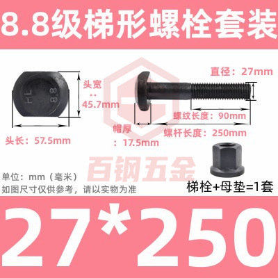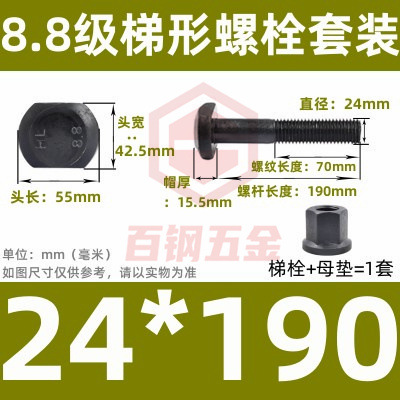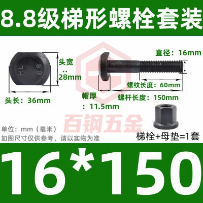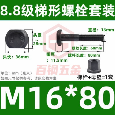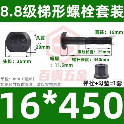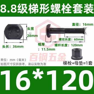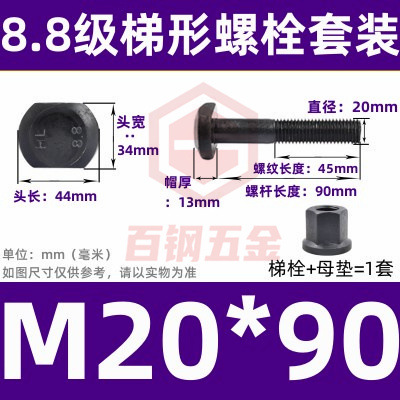 8.8 사다리 형 스크류 플랜지 너트 세트 사다리꼴 볼트 T 형 T 형 압력판 나사 M6M8M10-M48mm
