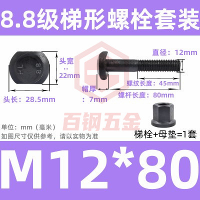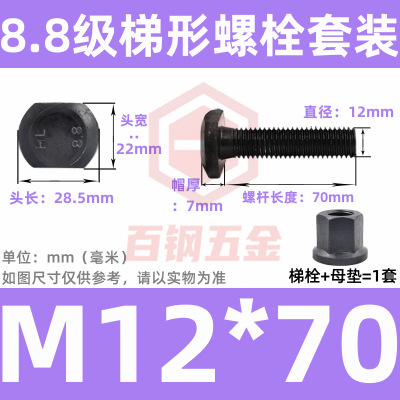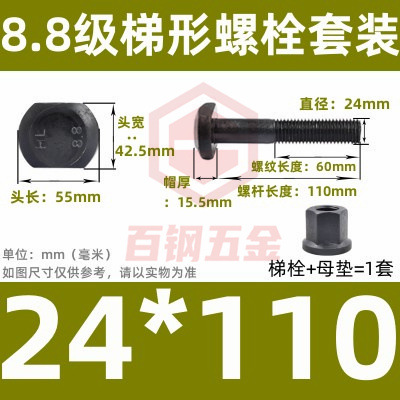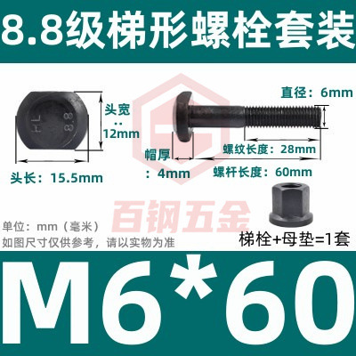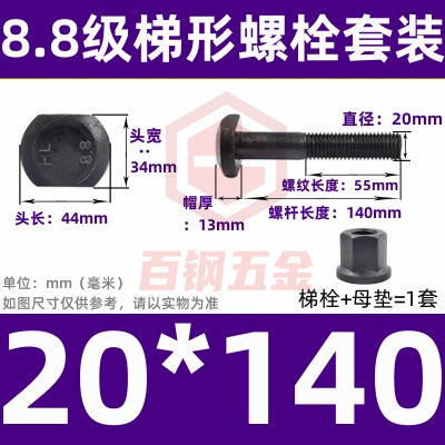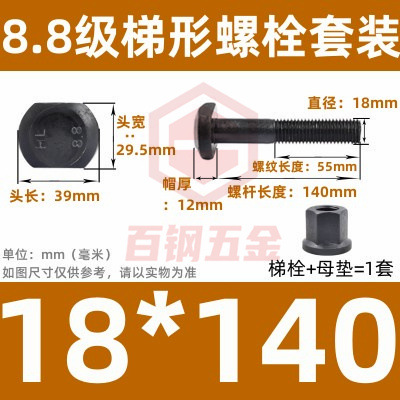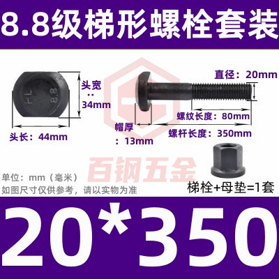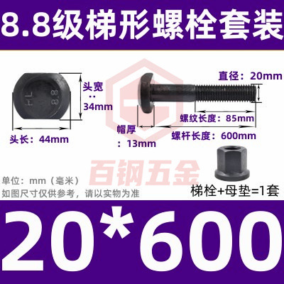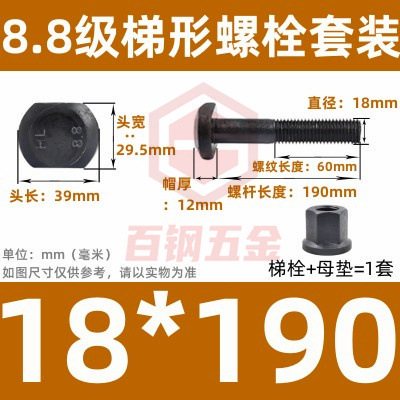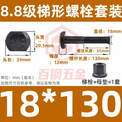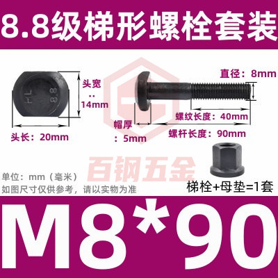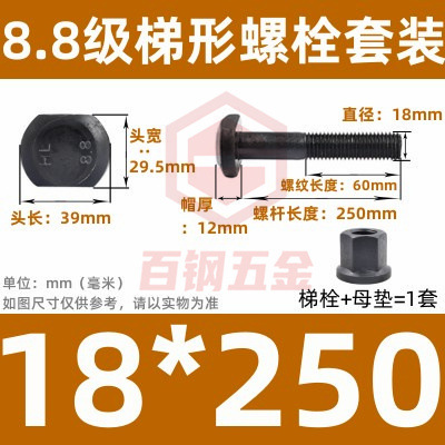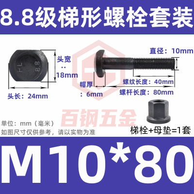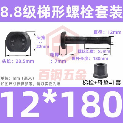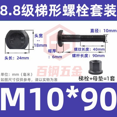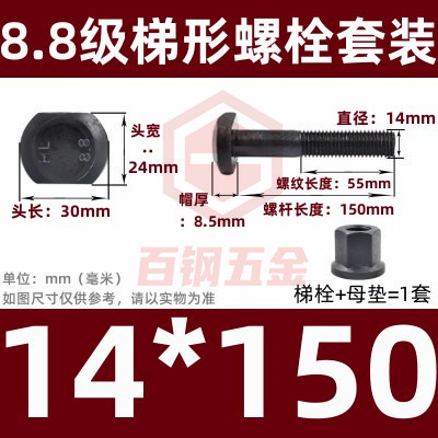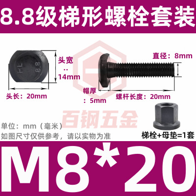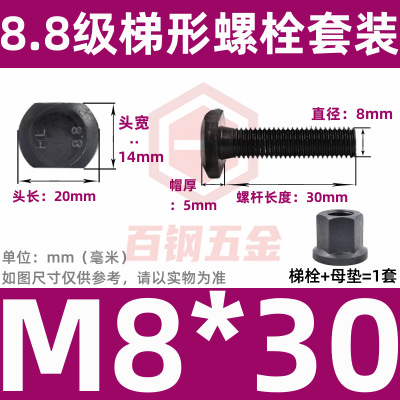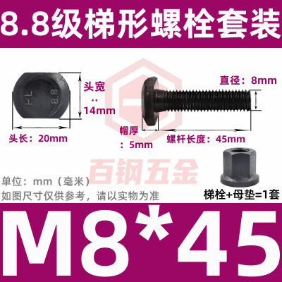 8.8 사다리 형 스크류 플랜지 너트 세트 사다리꼴 볼트 T 형 T 형 압력판 나사 M6M8M10-M48mm스토어 가기
