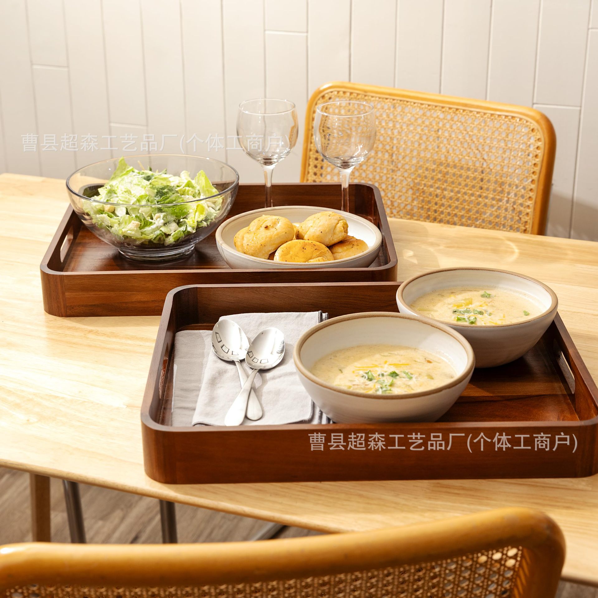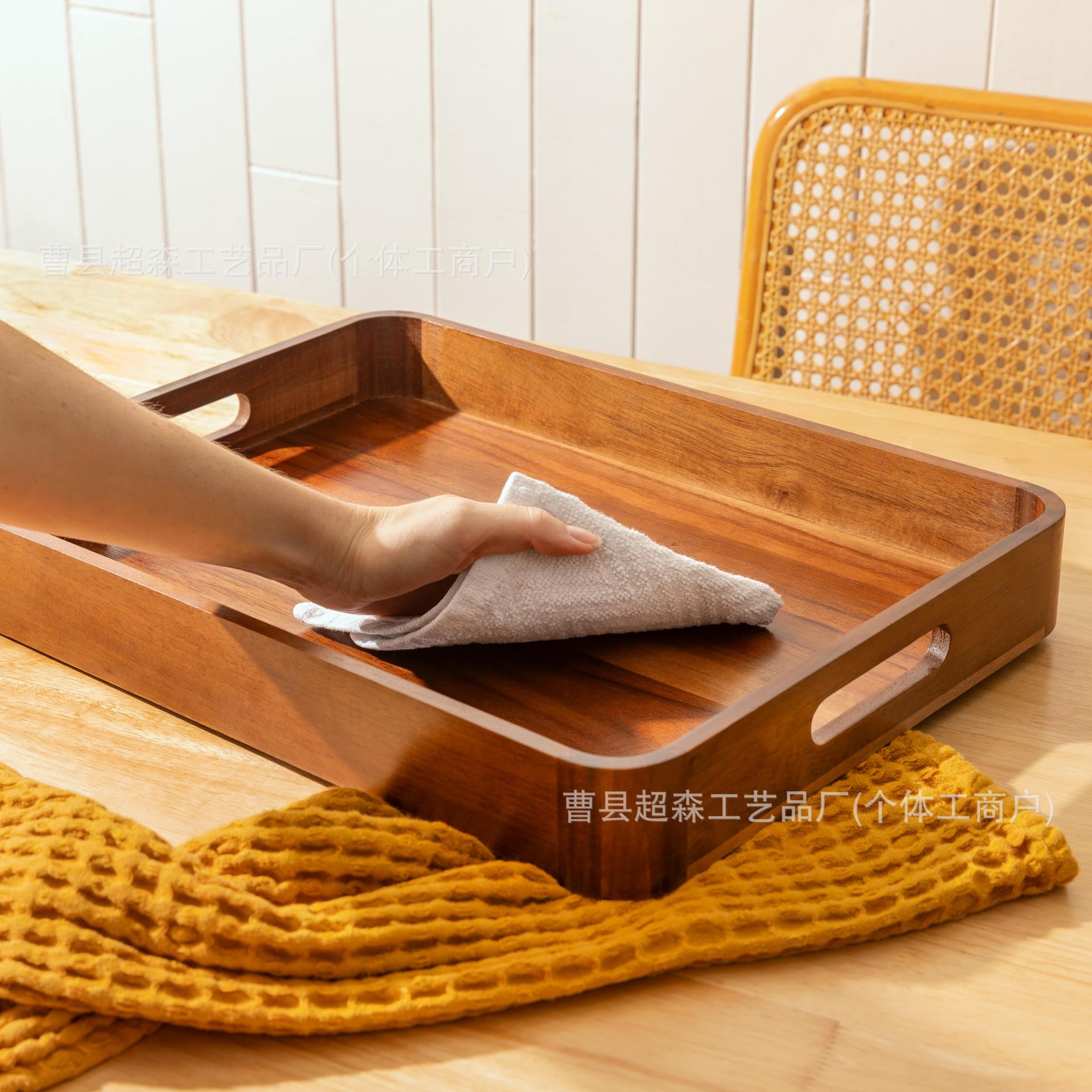 나무 다이닝 트레이 가정용 간식 과일 간식 오후 차 아침 식사 트레이 식당 손잡이와 함께 트레이 제공