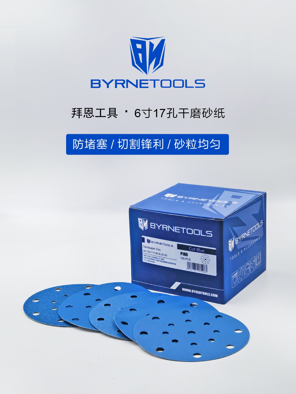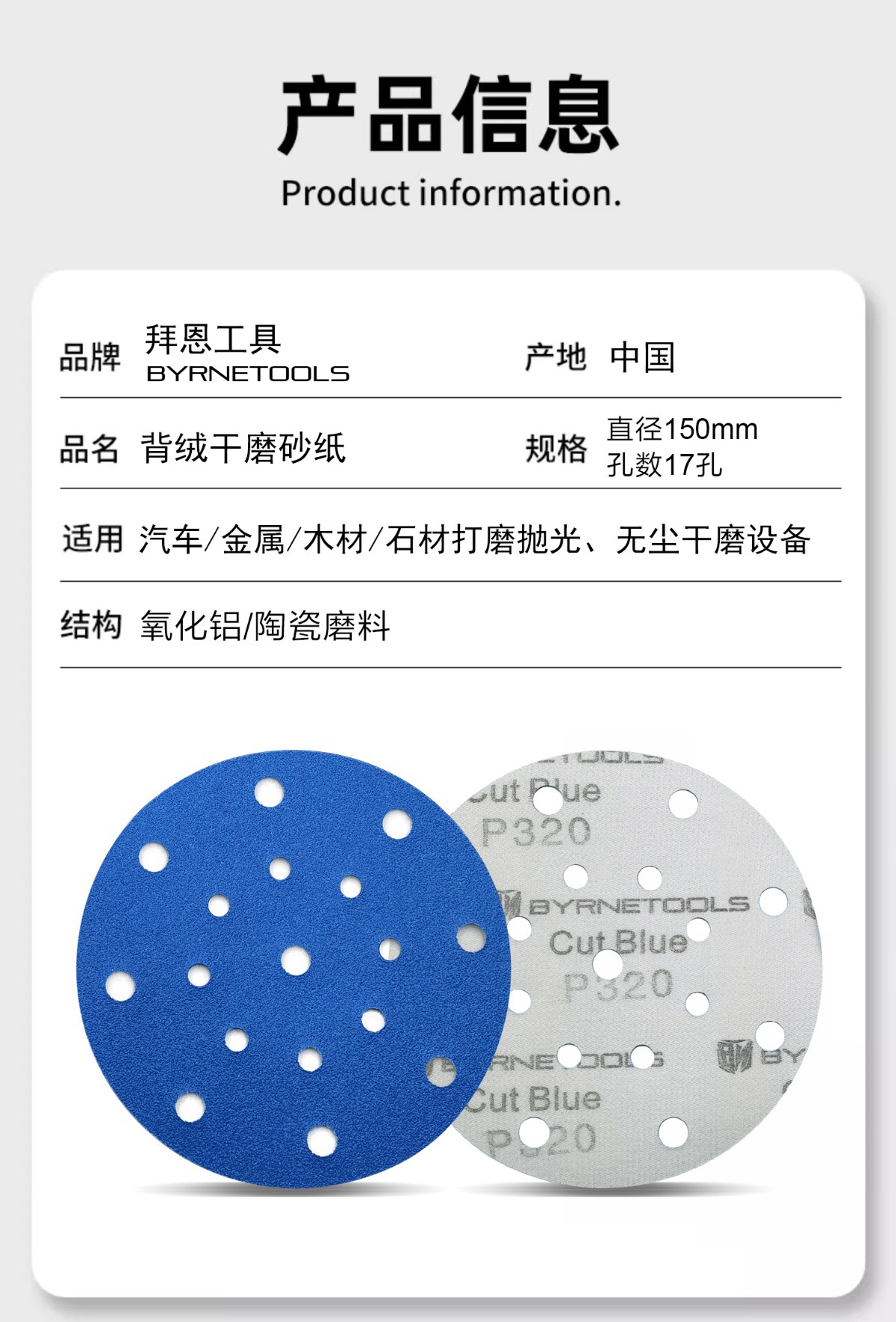 BYRNETOOLS Byrne 자동차 드라이 샌딩 페이퍼 세라믹 연마 형 잠금 6 인치 17 홀 연마 디스크 샌드 150mm스토어 가기