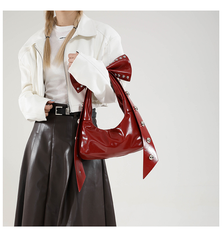 국경 간 레트로 오일 가죽 리벳 활 토트 백 언더암 가방 패션 트렌디 한 달콤한 올 매치 여성용 숄더 백스토어 가기