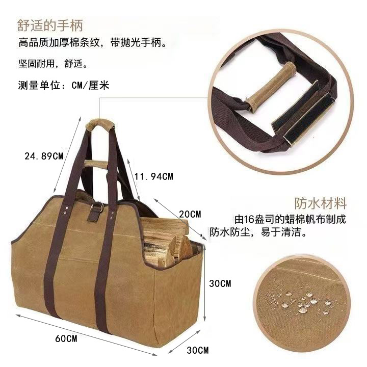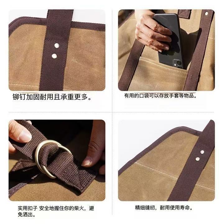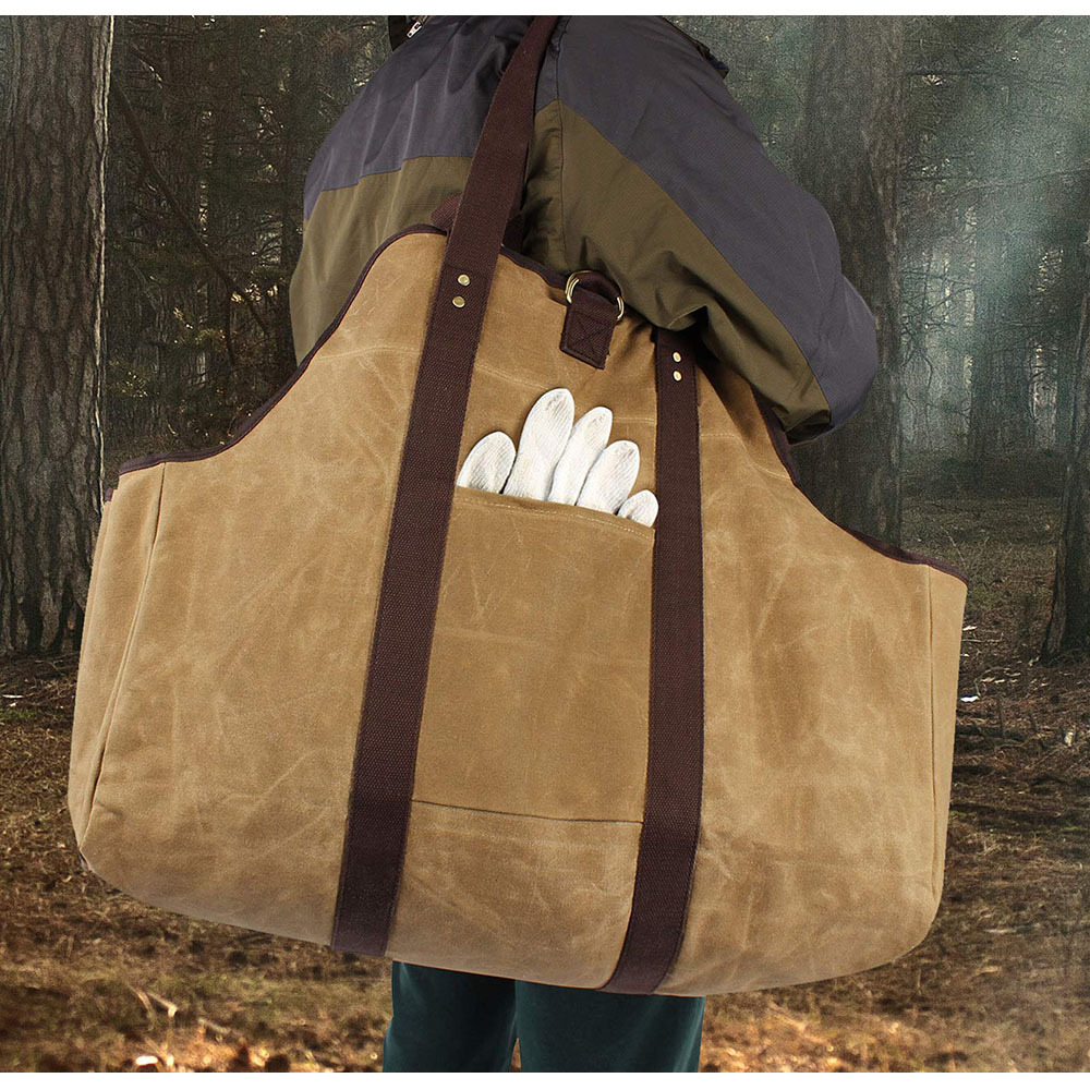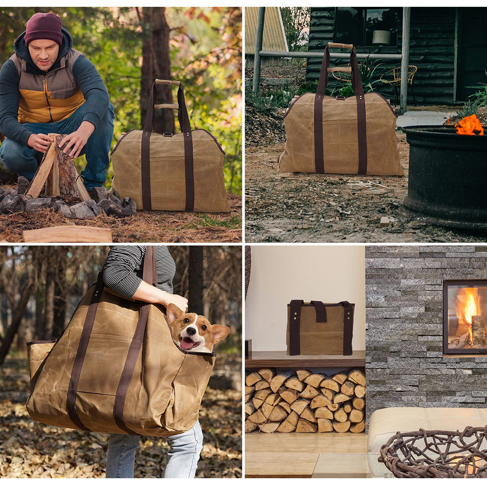 대용량 휴대용 장작 보관 가방 왁스 캔버스 토트 백 로깅 백 캠핑 용품 야외 장작 가방스토어 가기