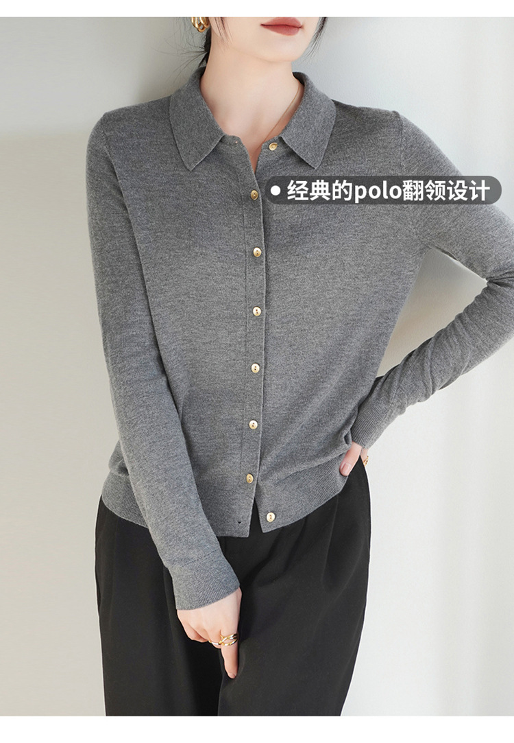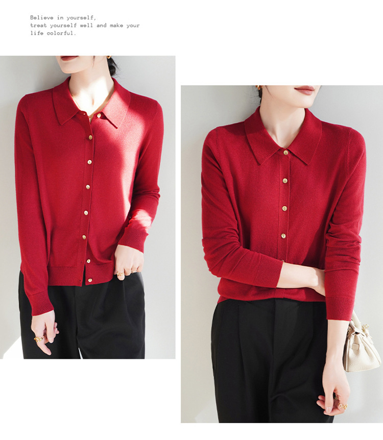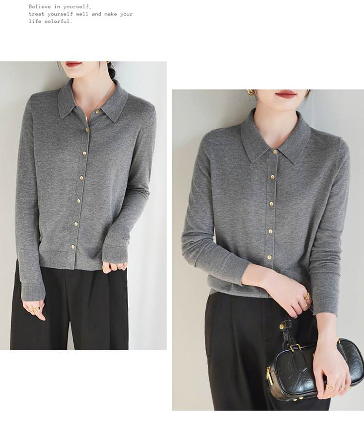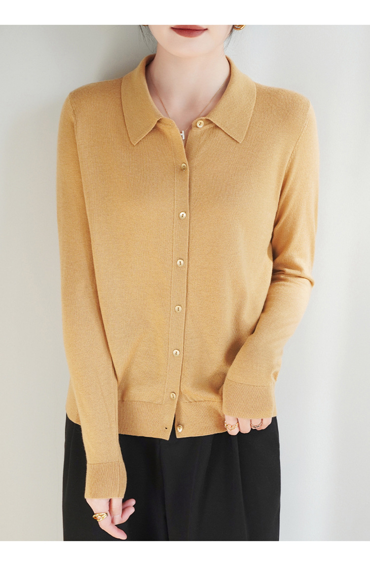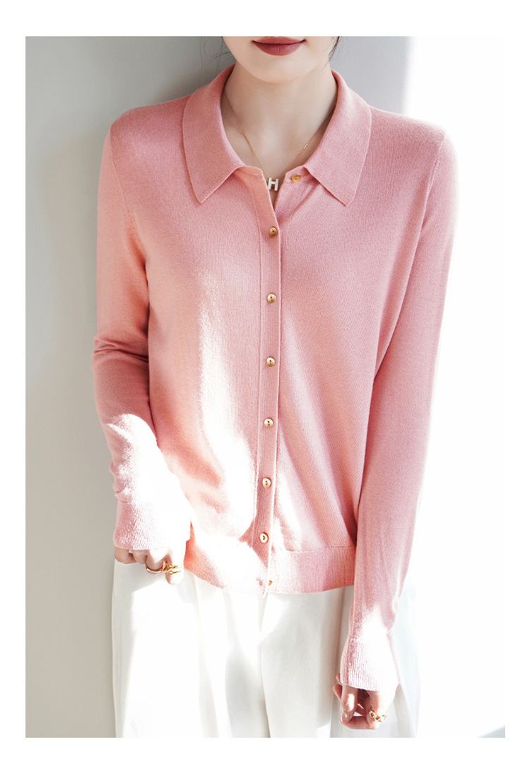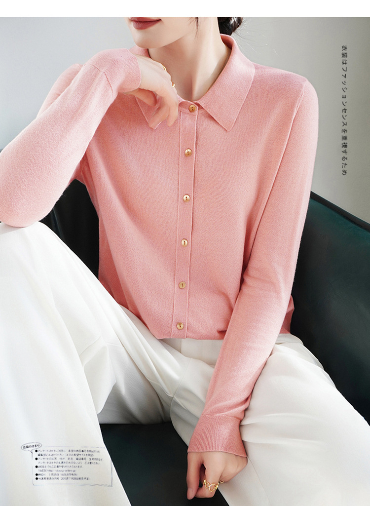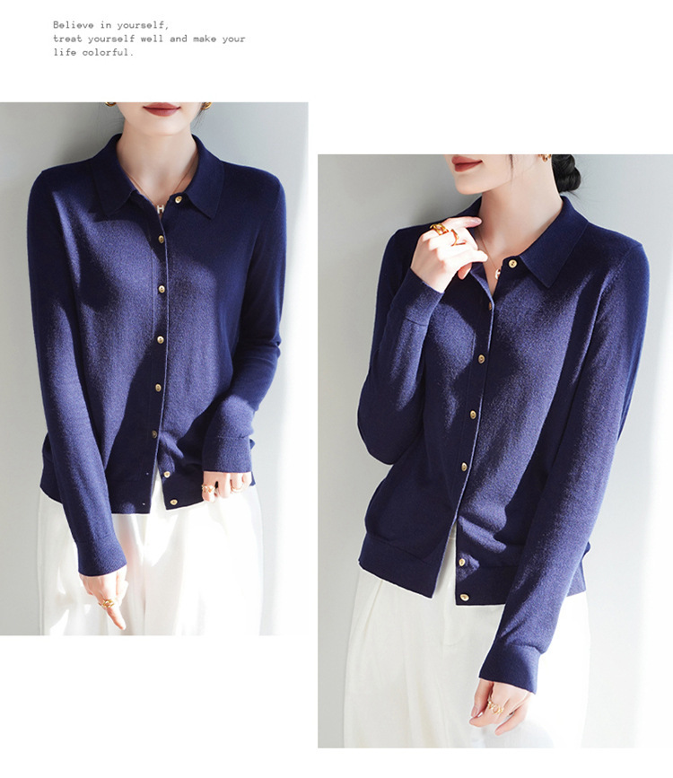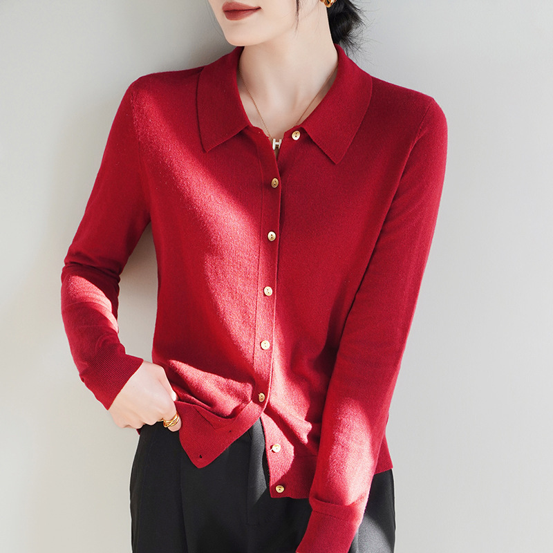 여자 카디건 봄 새로운 실크 캐시미어 폴로 칼라 솔리드 컬러 외부 긴 소매 슬림 룩 올매치 니트 셔츠