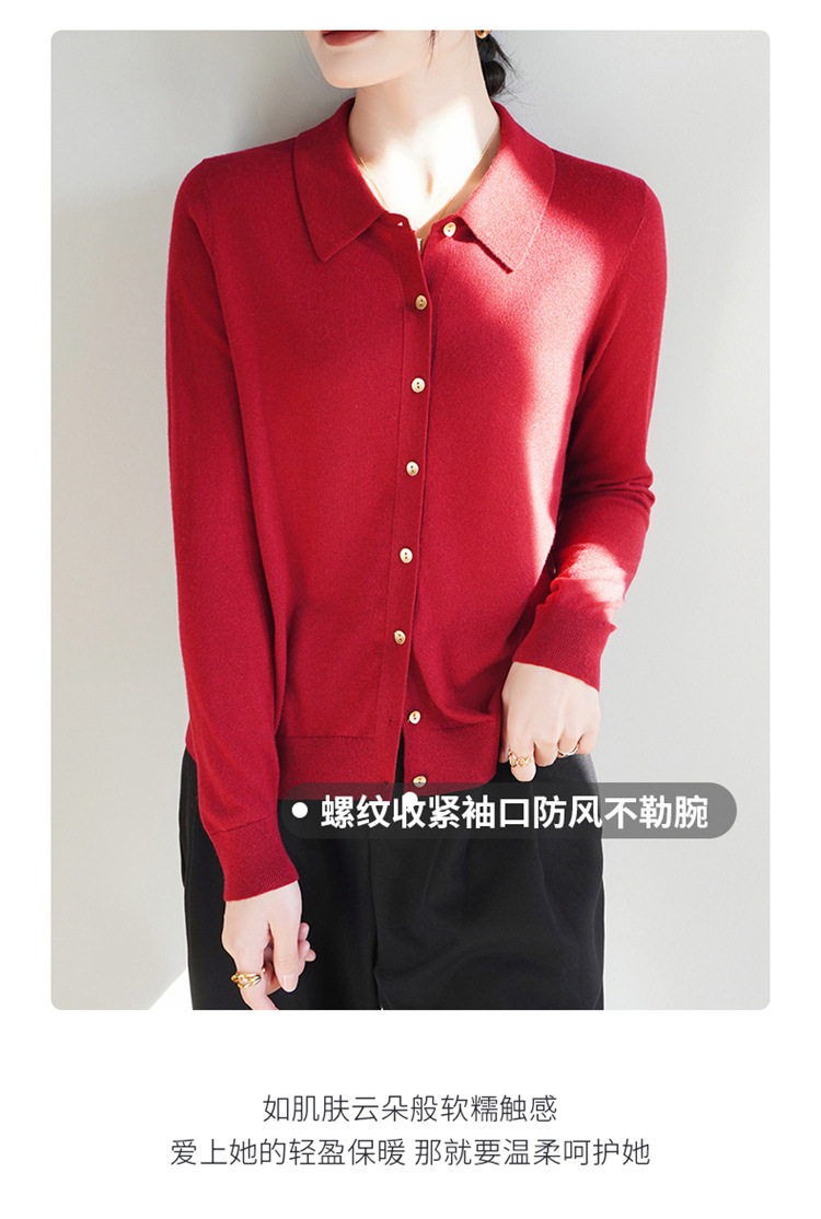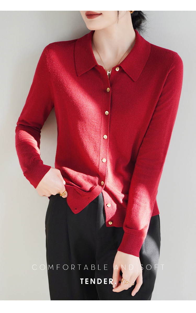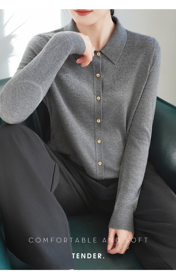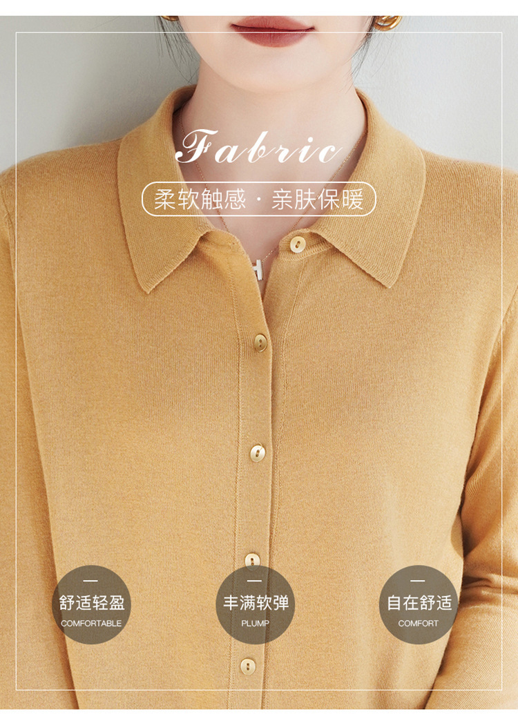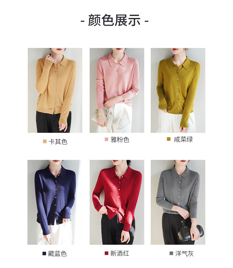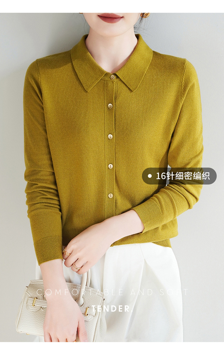 여자 카디건 봄 새로운 실크 캐시미어 폴로 칼라 솔리드 컬러 외부 긴 소매 슬림 룩 올매치 니트 셔츠스토어 가기
