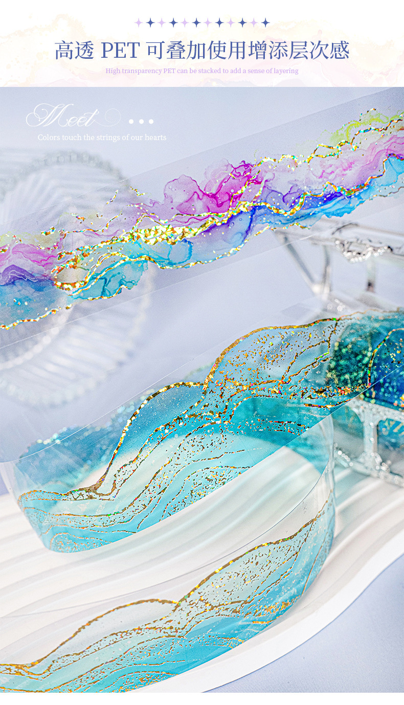 좋은 날 브론징 테이프 컬러 파라다이스 시리즈 수채화 헤일로 테마 휴대 전화 케이스 Diy 콜라주스토어 가기