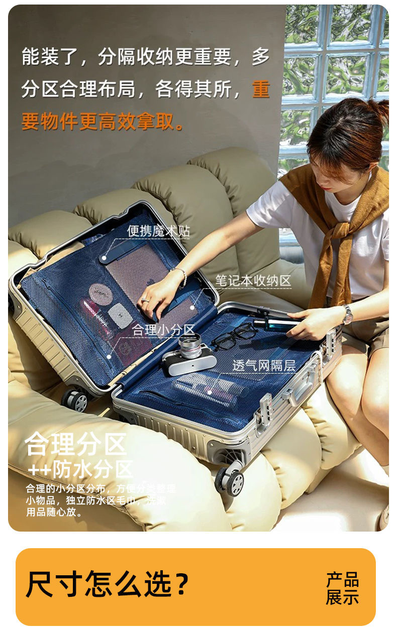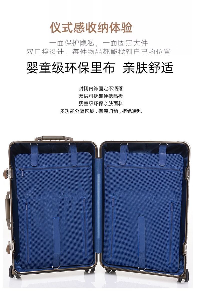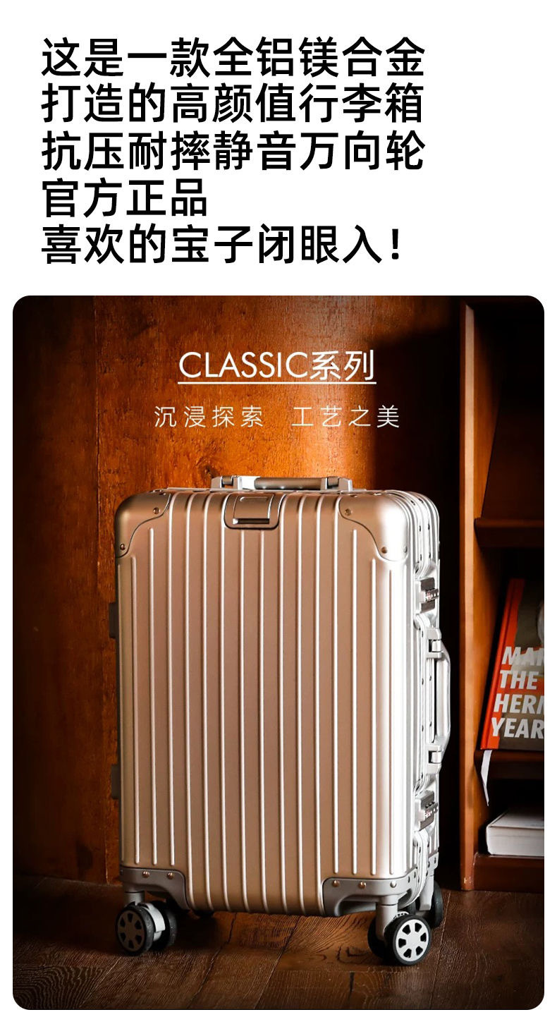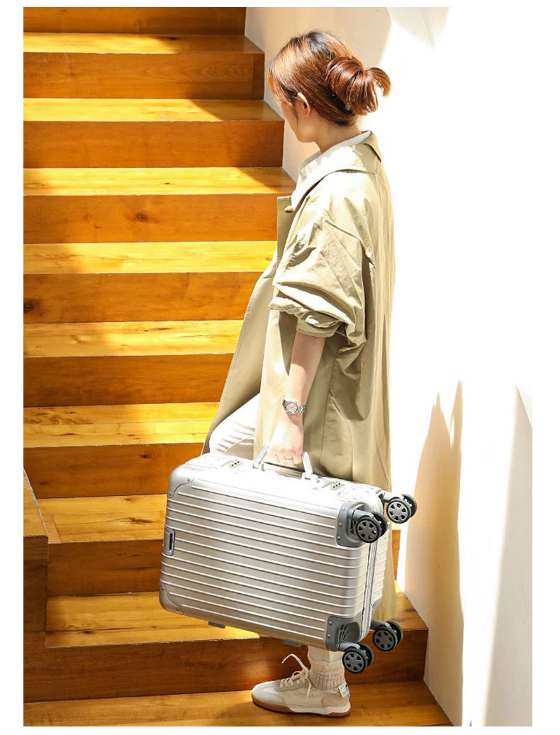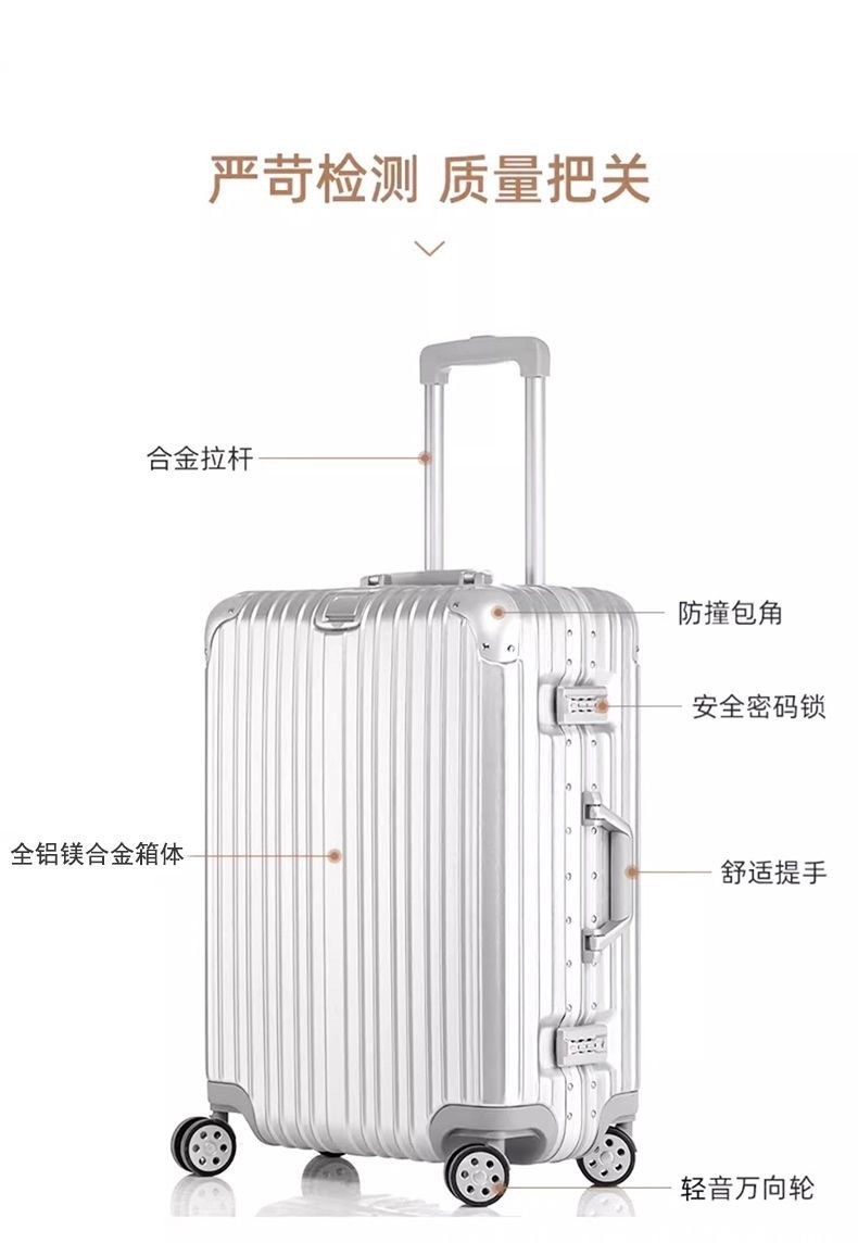 모든 알루미늄-마그네슘 합금 암호 상자 여성 트롤리 케이스 남성용 유니버설 휠 가방 20 인치 수하물 탑승 상자 알루미늄 프레임 상자스토어 가기