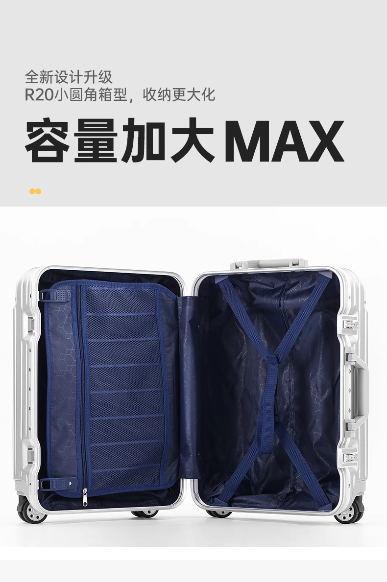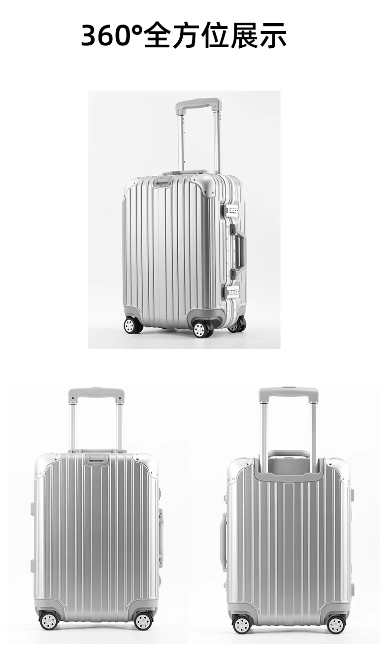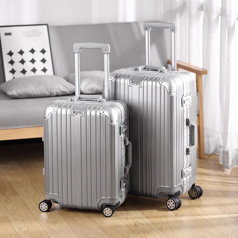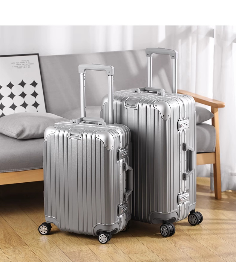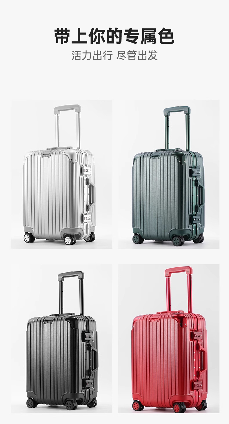 모든 알루미늄-마그네슘 합금 암호 상자 여성 트롤리 케이스 남성용 유니버설 휠 가방 20 인치 수하물 탑승 상자 알루미늄 프레임 상자