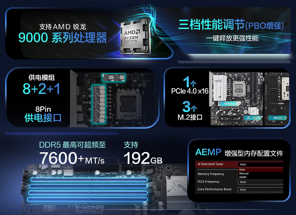 PRIME B840M-A 마더 보드 CPU 7800X3D/9800X3D/9600X스토어 가기
