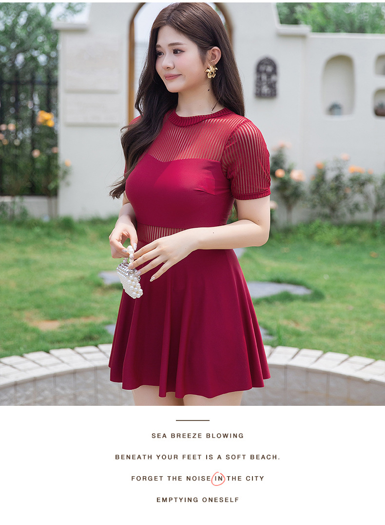 수영복 여성의 플러스 사이즈 지방 mm200 kg 배꼽으로 덮인 슬림 보수적 인 고기로 덮인 섹시한 원피스 스커트, 바람 온천 수영복스토어 가기