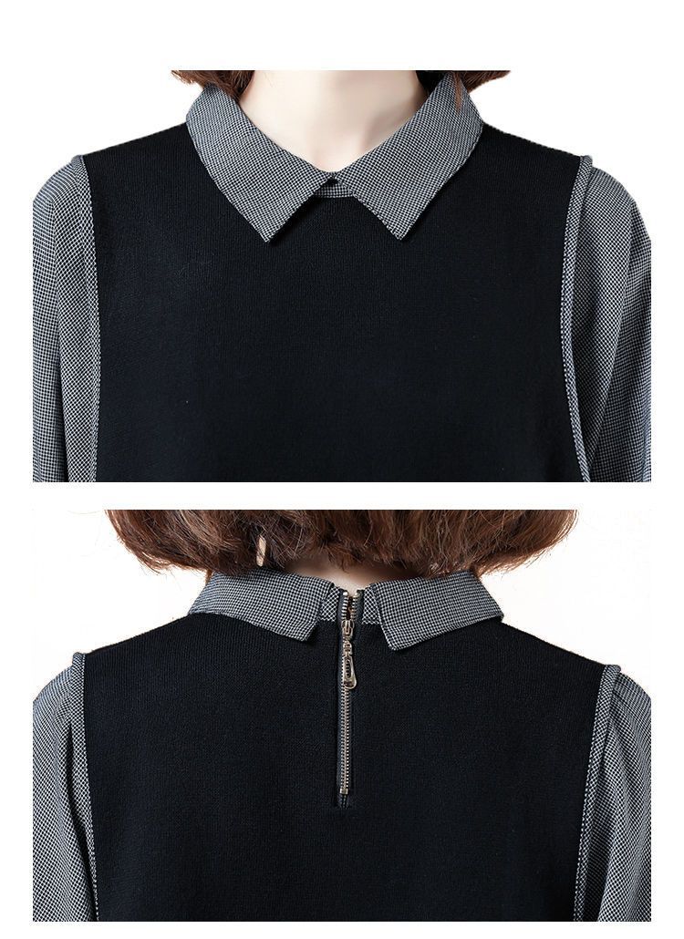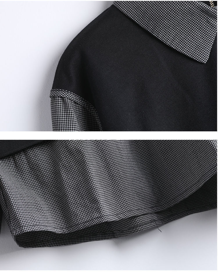 유럽 역 2024 봄과 가을 새로운 가짜 투피스 느슨한 슬리밍 인형 칼라 격자 무늬 스티칭 스웨트 셔츠 탑 여성