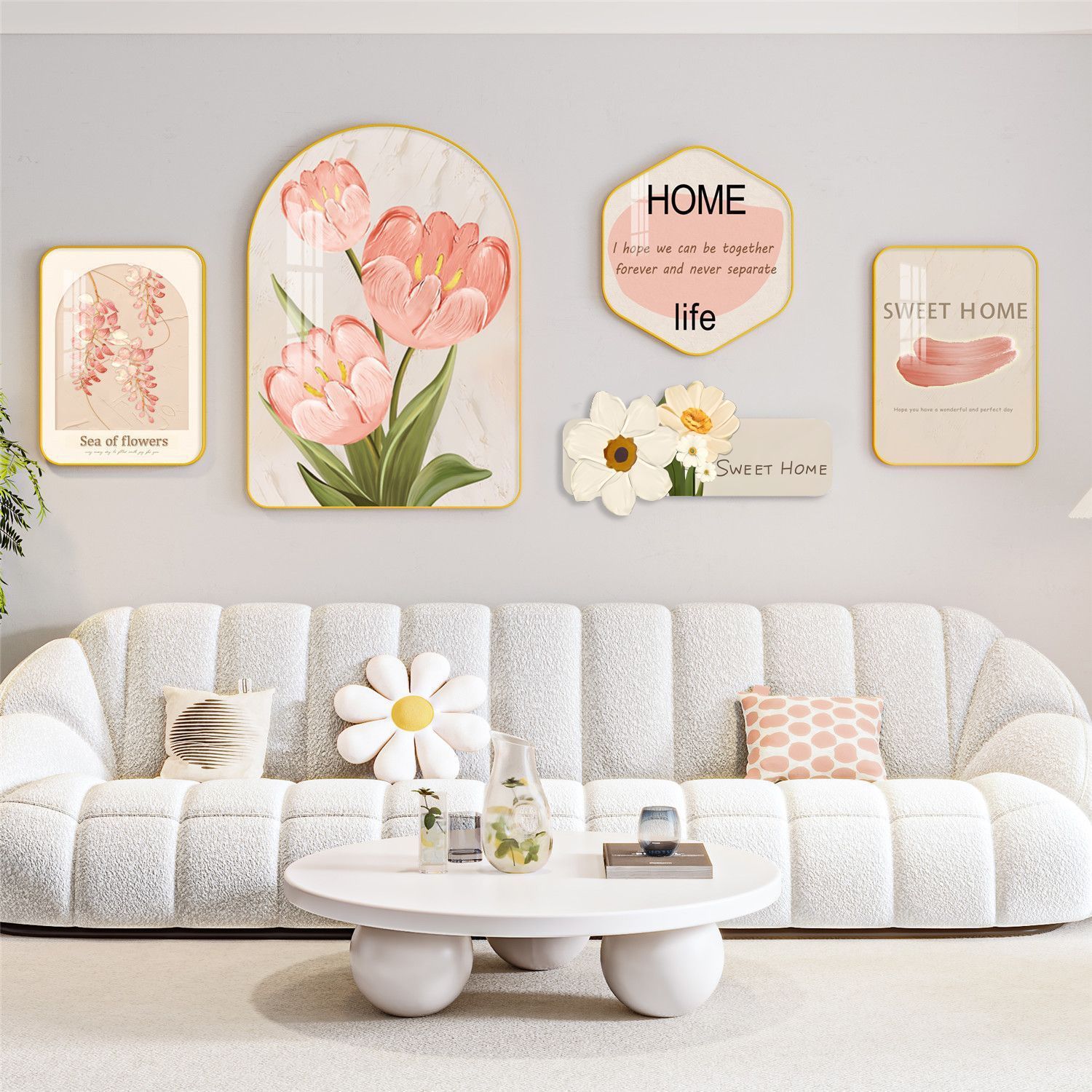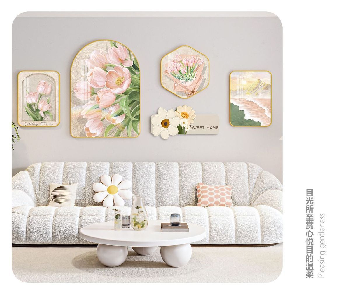 [액자 디자인] 거실 북유럽 스타일 장식 그림 소파 배경 크림 간단한 신선한 교수형 그림 꽃