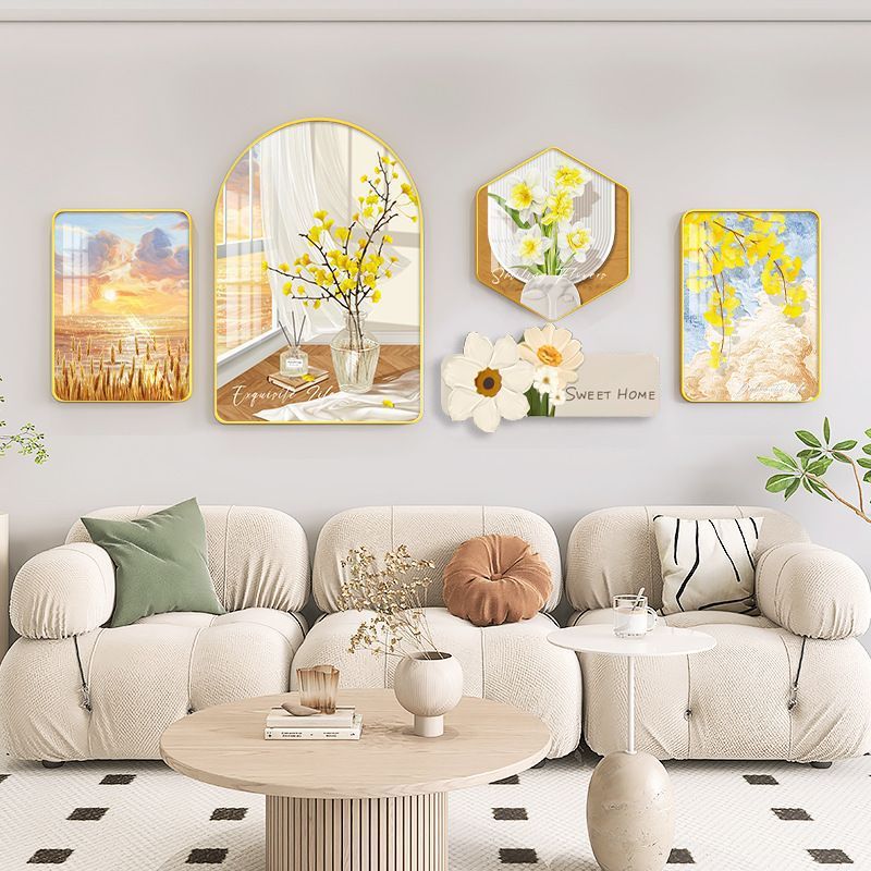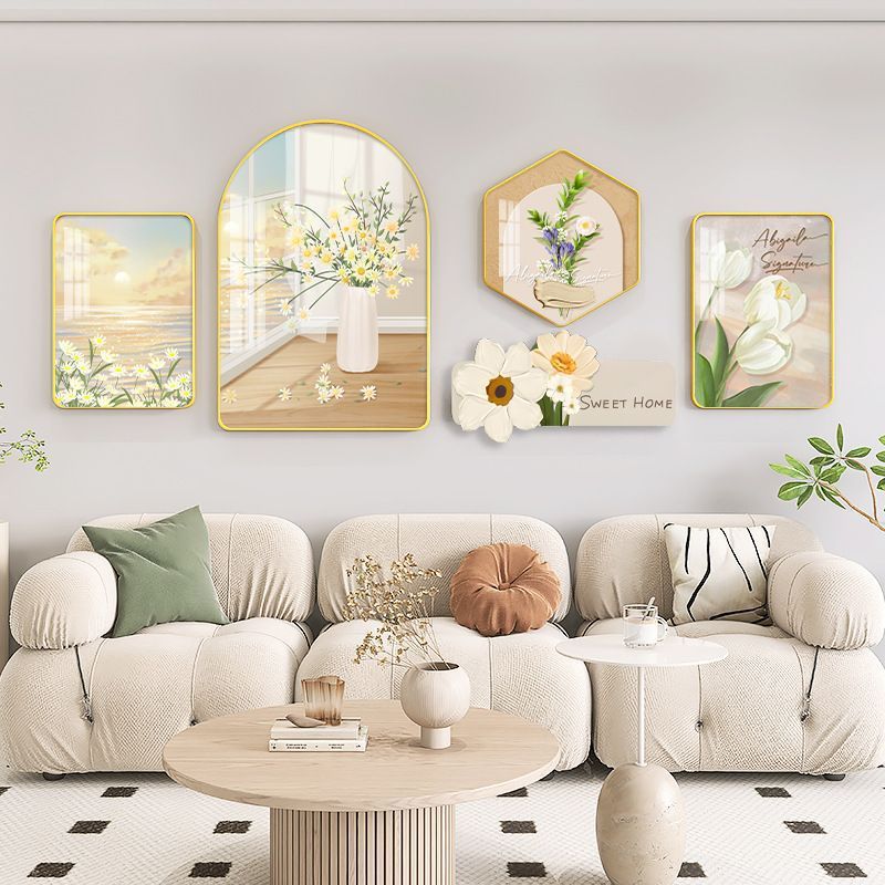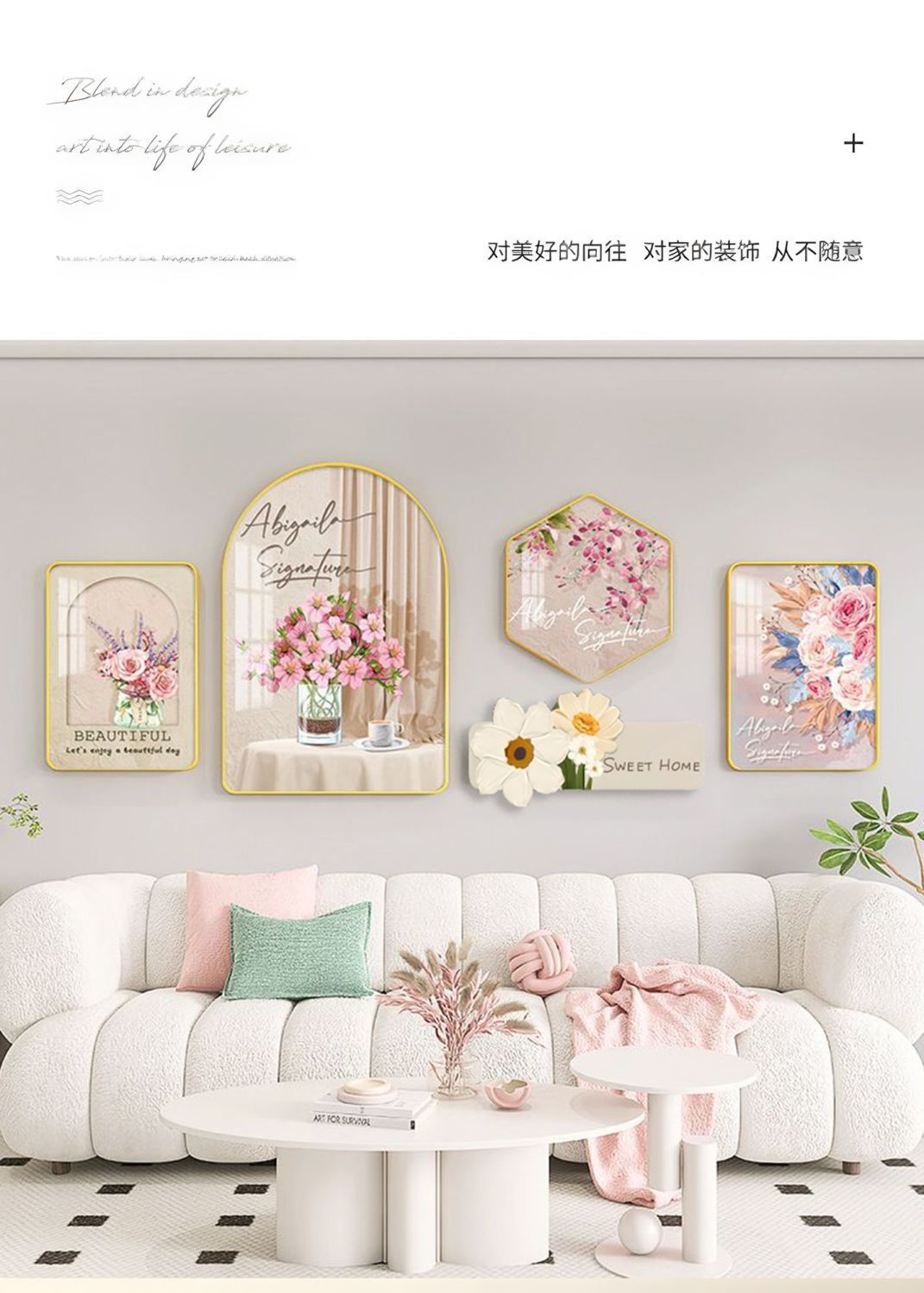 [액자 디자인] 거실 북유럽 스타일 장식 그림 소파 배경 크림 간단한 신선한 교수형 그림 꽃스토어 가기