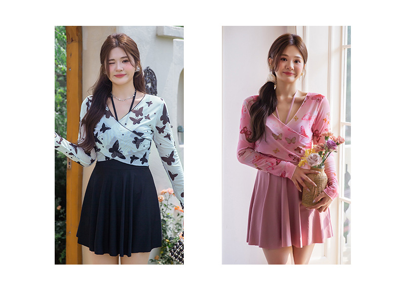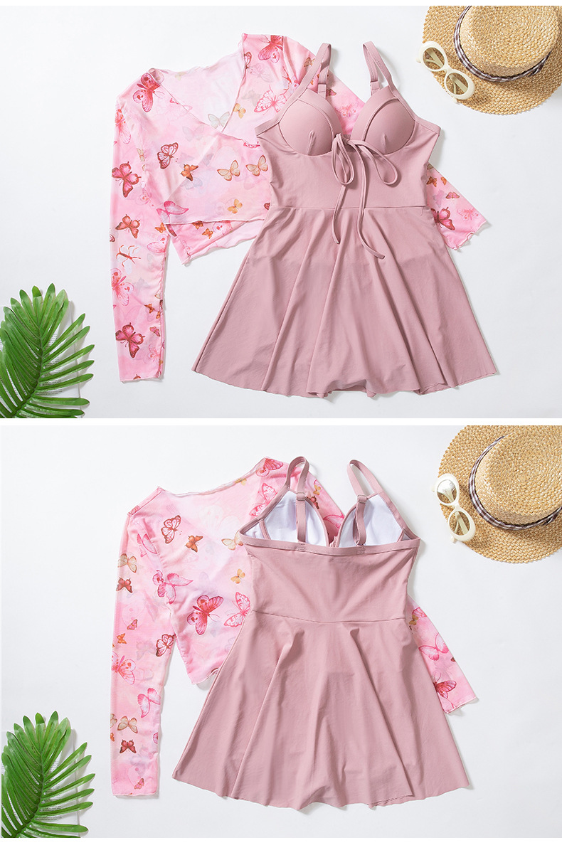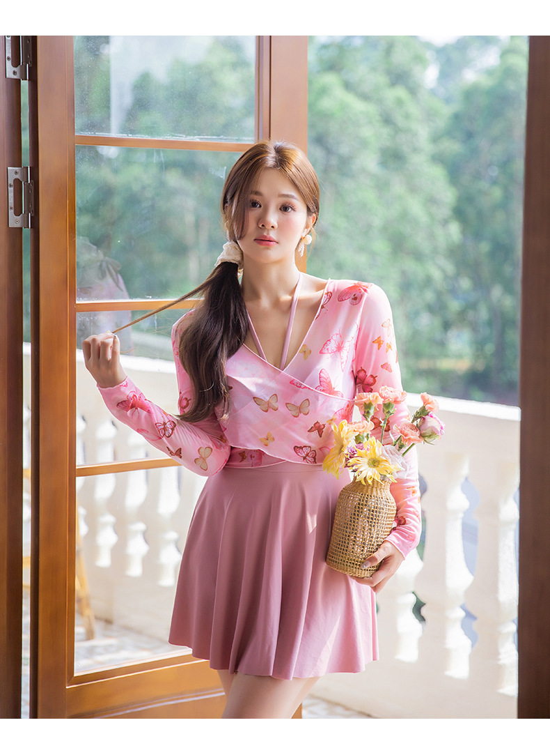 플러스 사이즈 수영복 여성용 긴 소매 통통 mm200 진 하이 엔드 섹시 슬링 서스펜더 세트 스틸 지원 모임 온천 세트