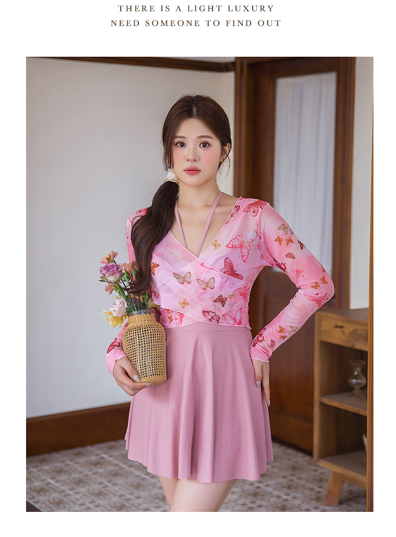 플러스 사이즈 수영복 여성용 긴 소매 통통 mm200 진 하이 엔드 섹시 슬링 서스펜더 세트 스틸 지원 모임 온천 세트스토어 가기