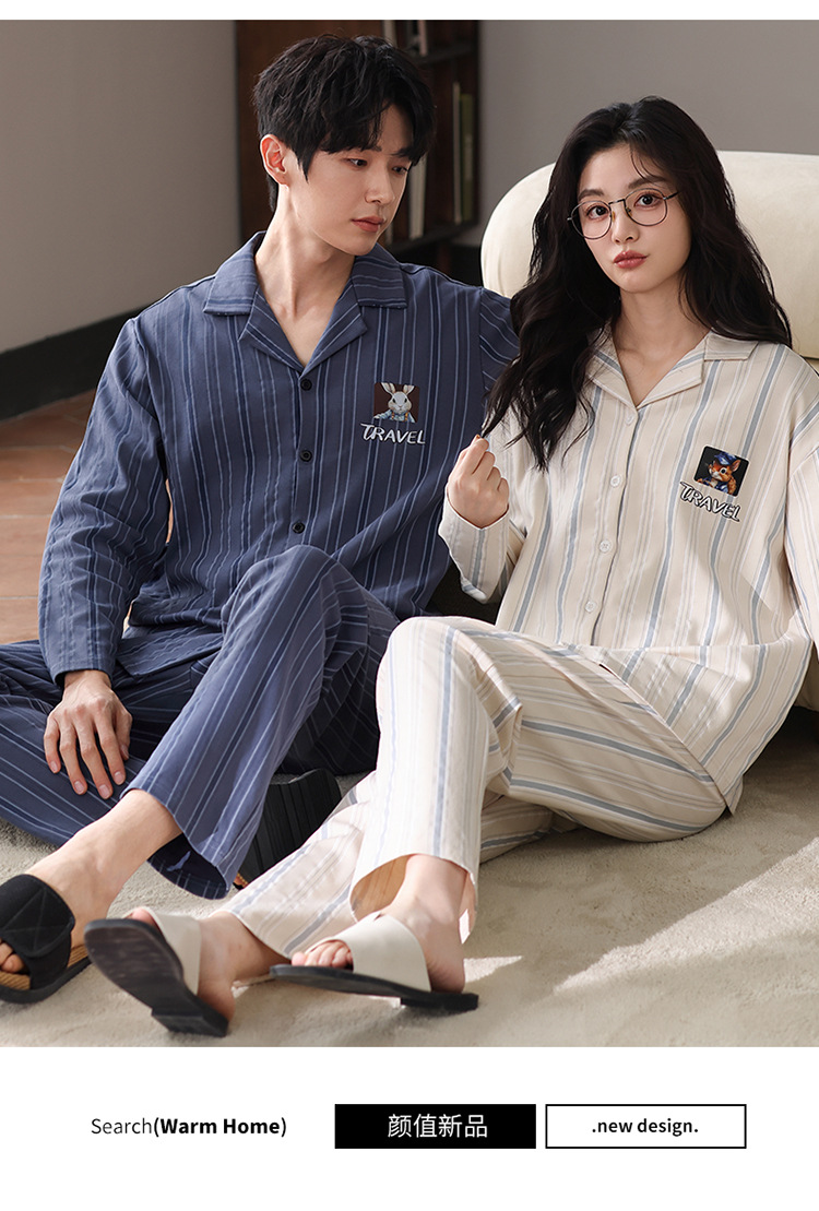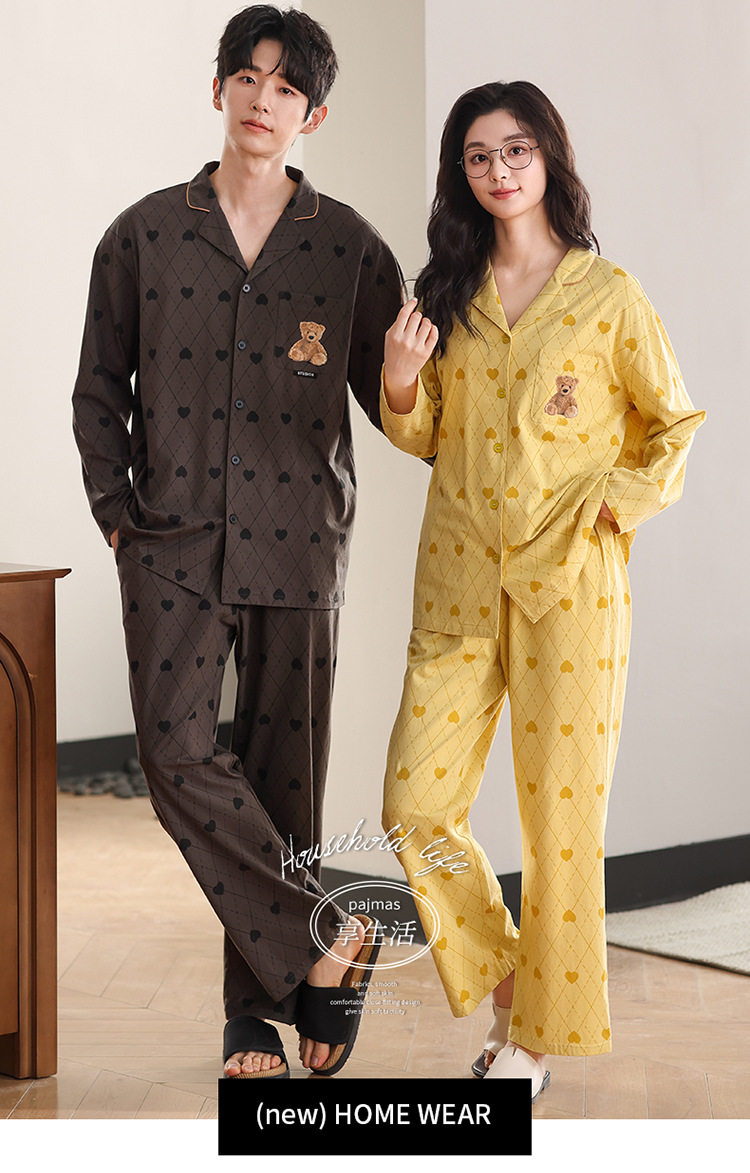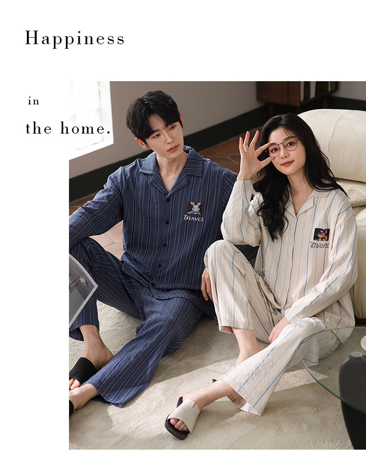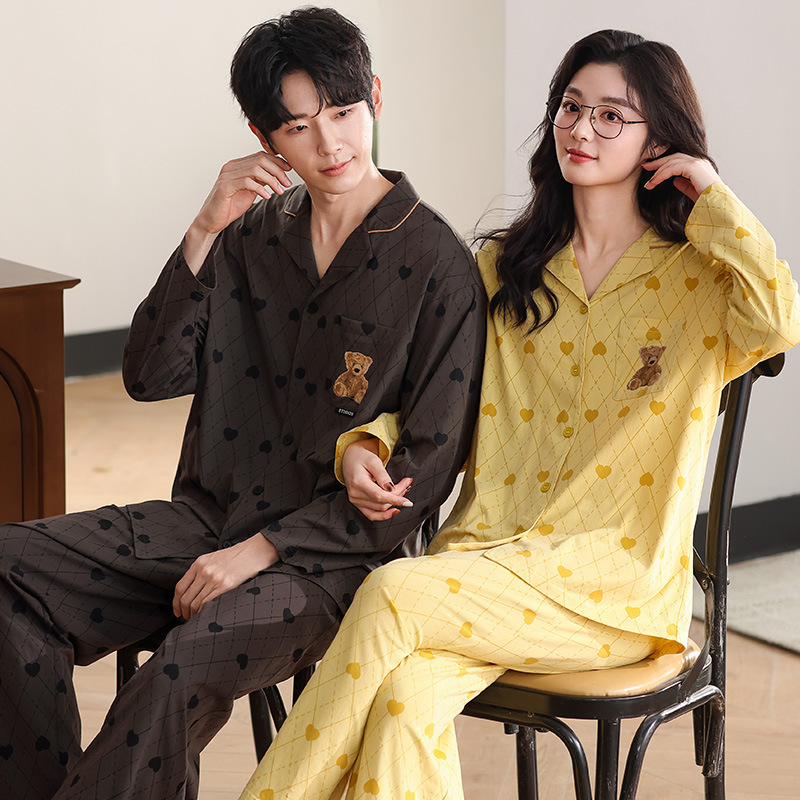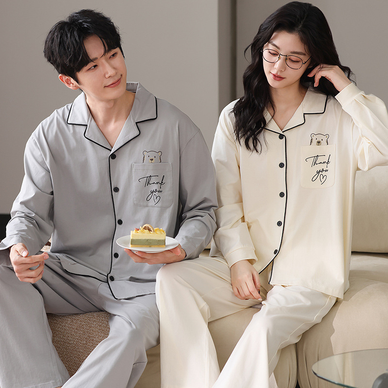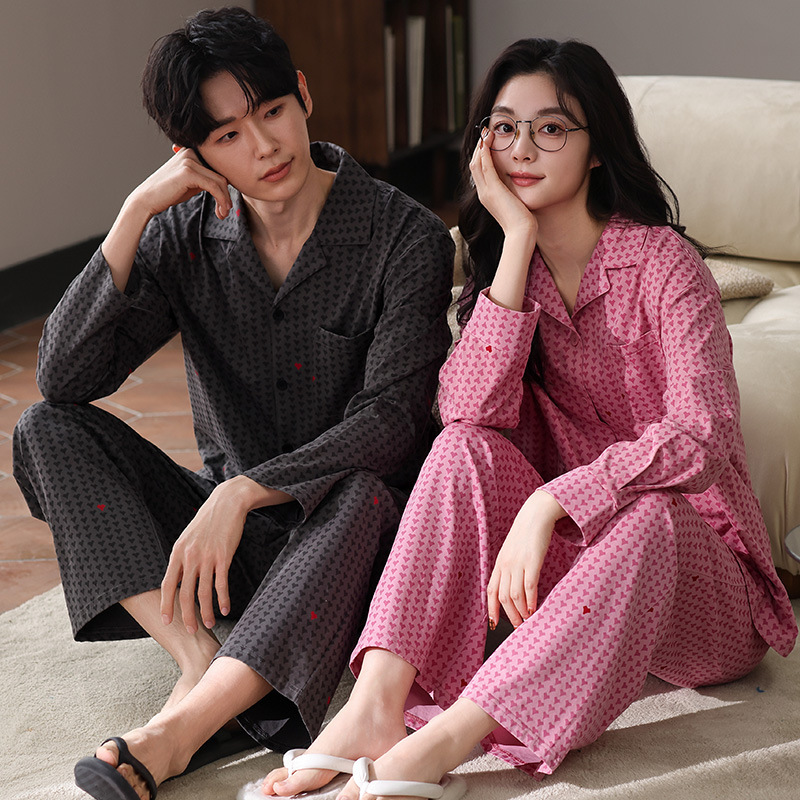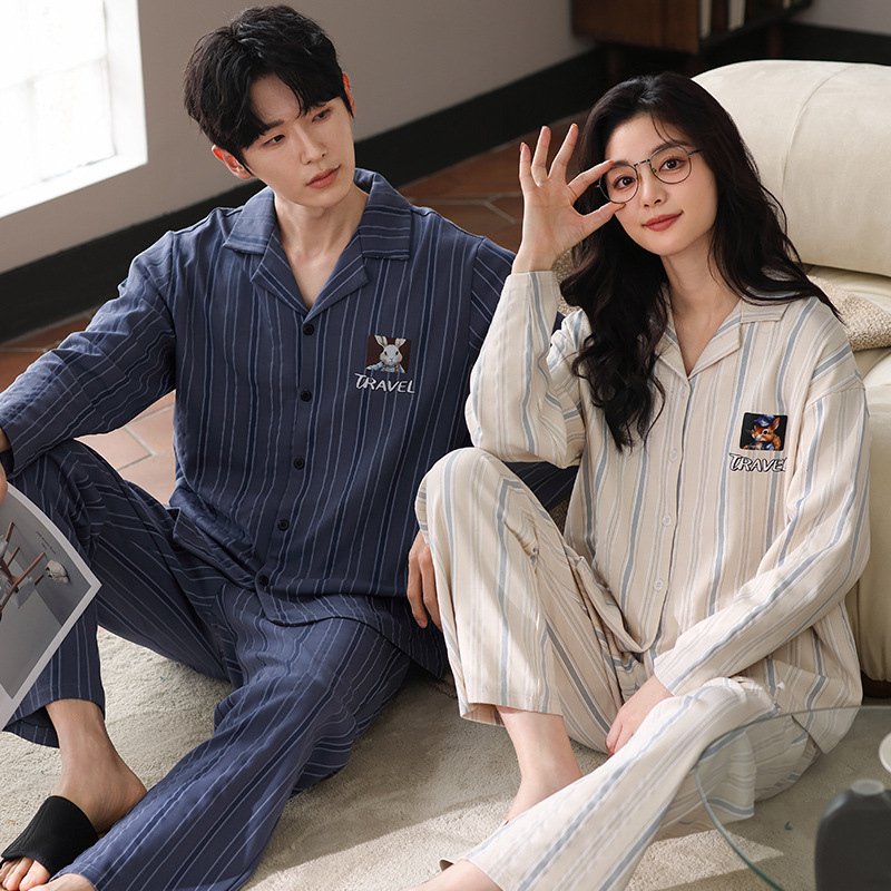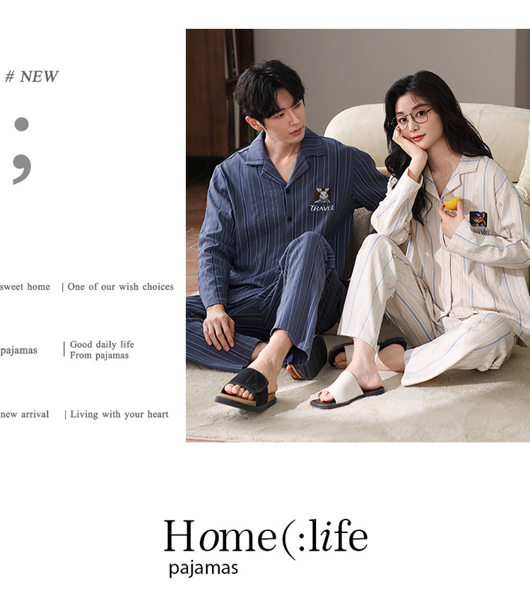하이 엔드 커플 파자마 여성 2025 봄 가을 겨울 코튼 긴팔 남성 아웃웨어 높은 가치의 홈 웨어 패션스토어 가기