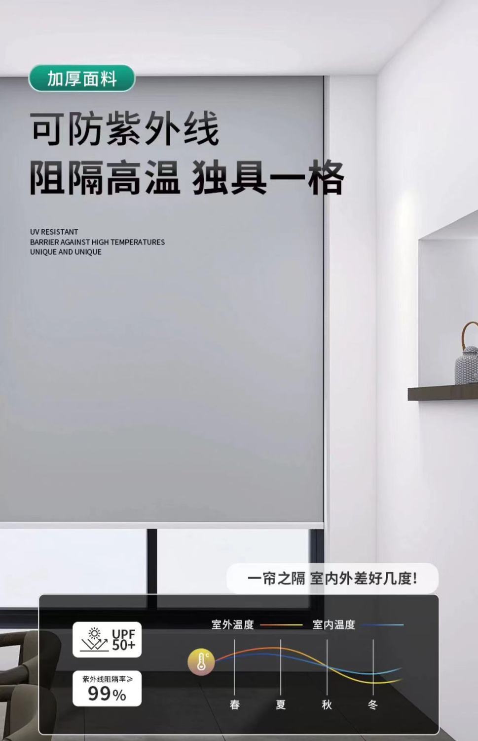 • [라이트 그레이] - 99.7% 차광 두꺼운 실버 원단은 방수가 되지 않습니다.
