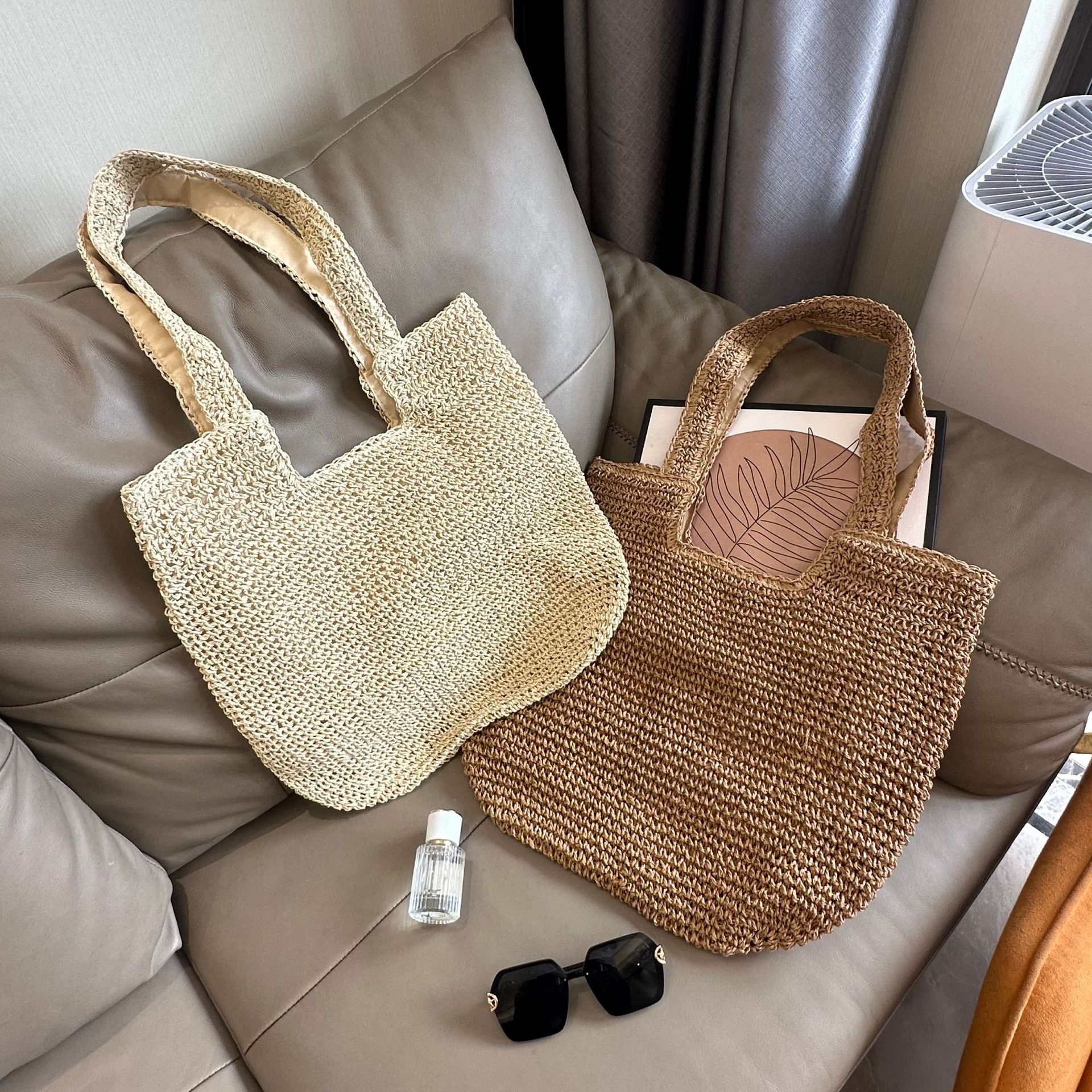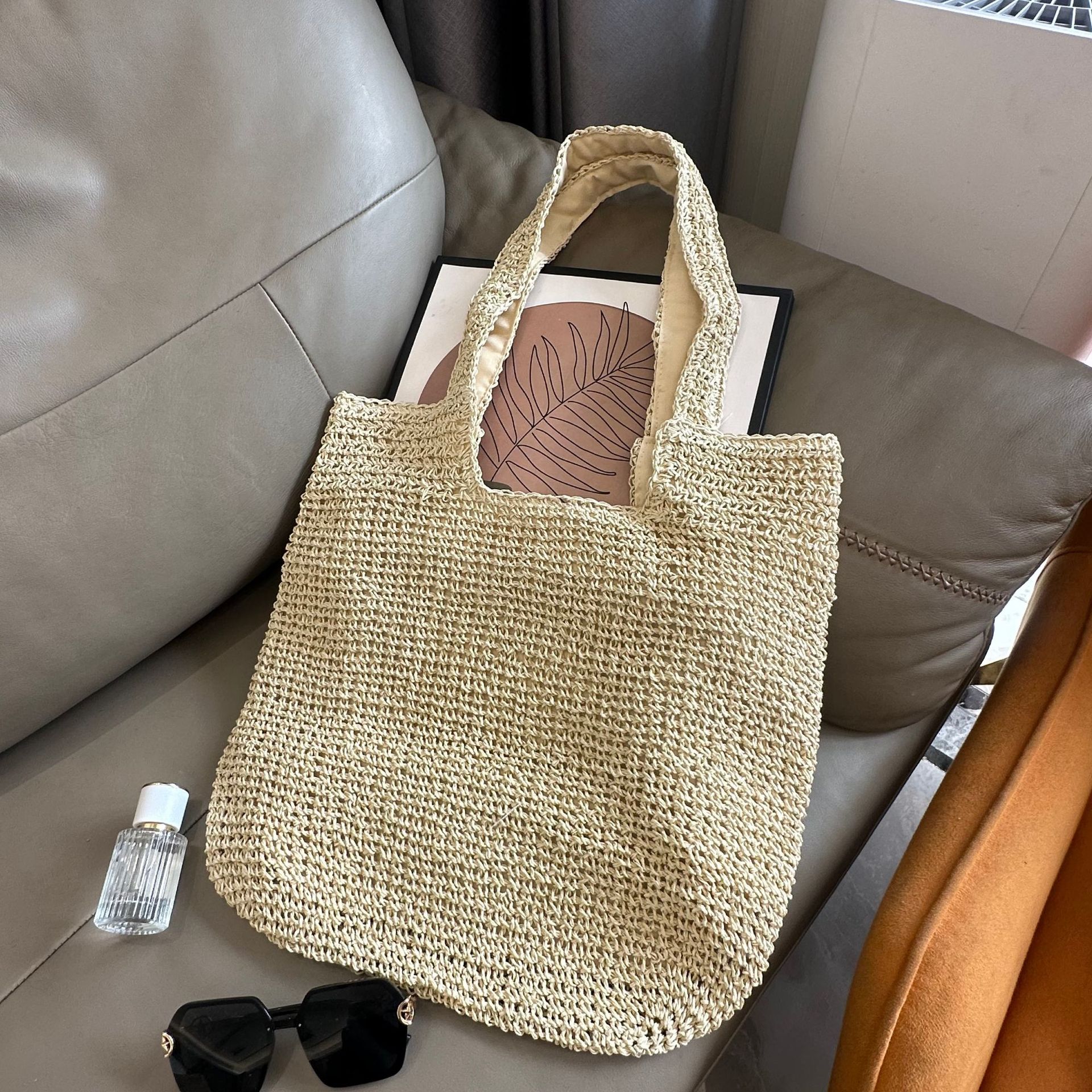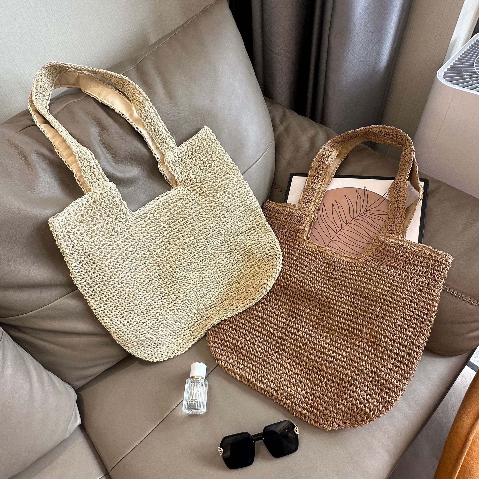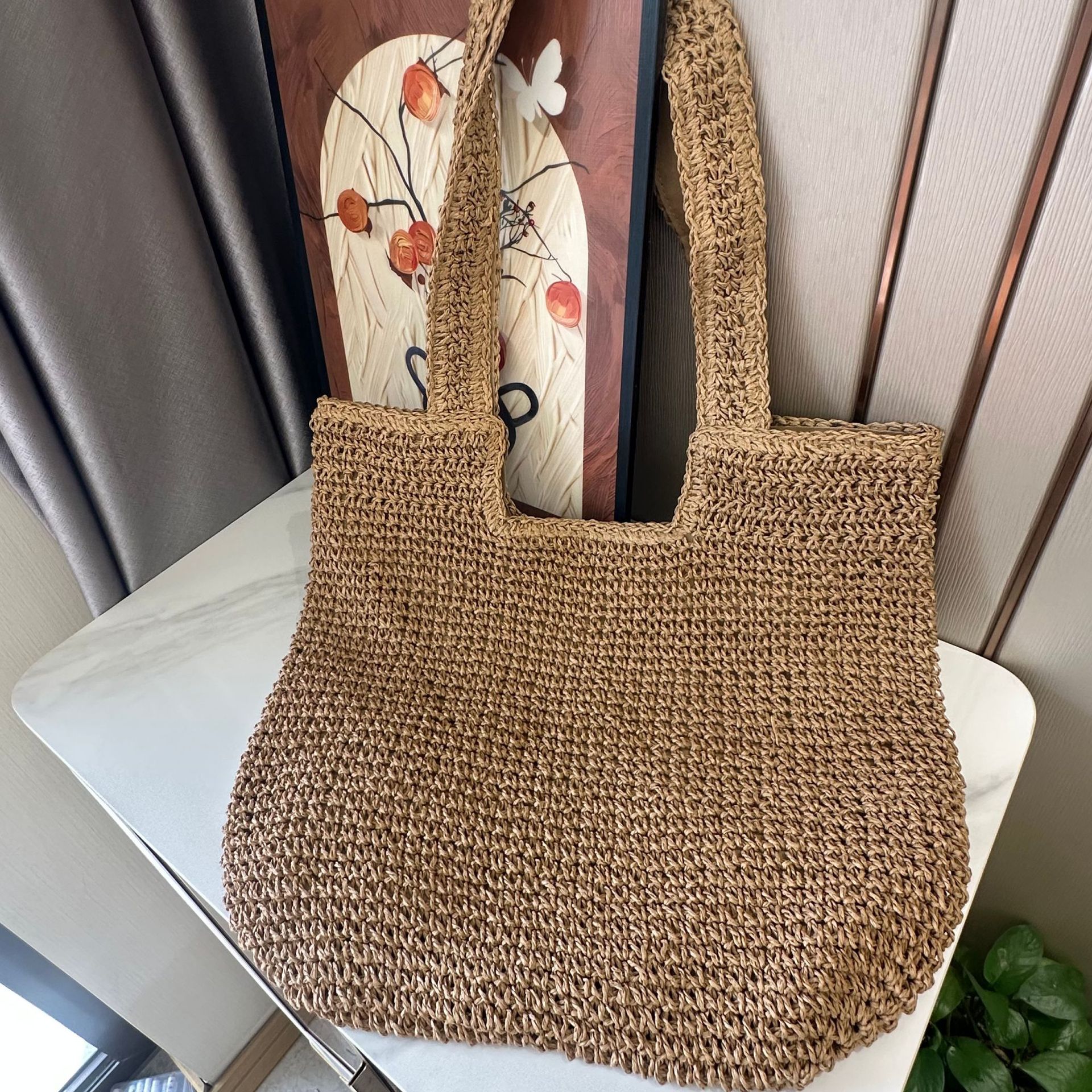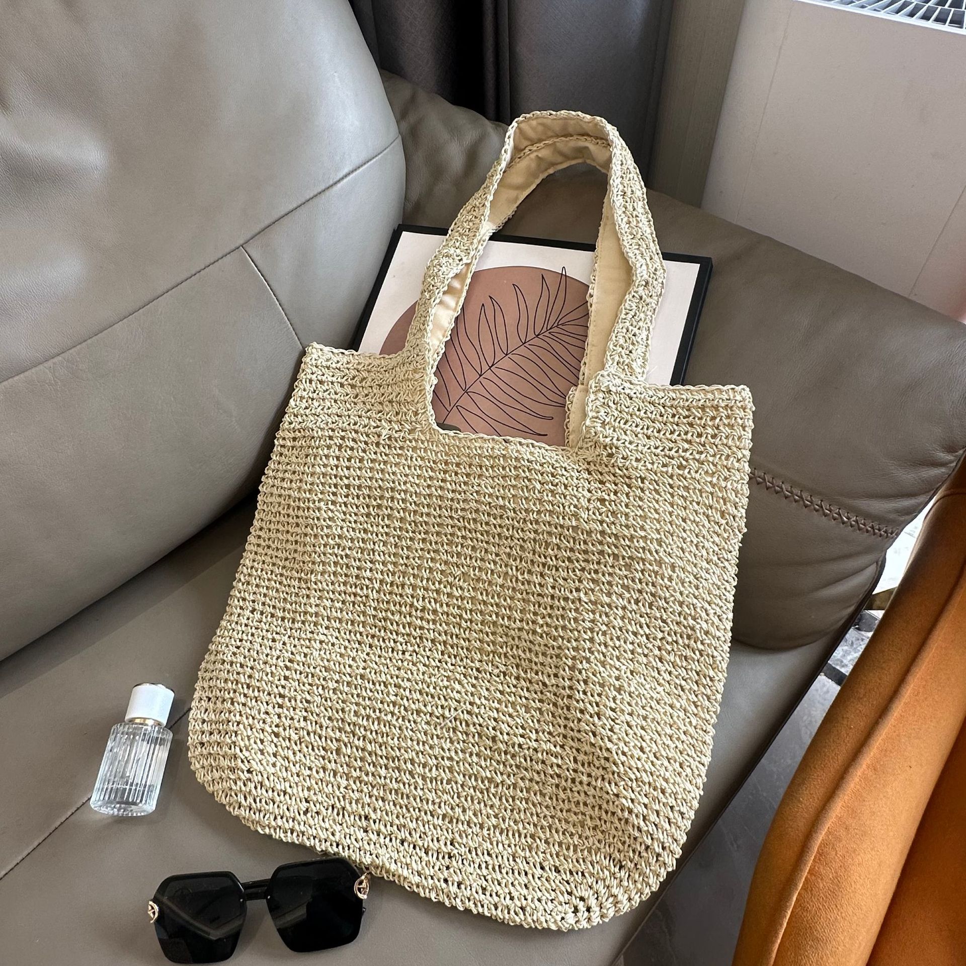 새로운 대용량 짠 2024 틈새 디자인 빈티지 밀짚 짠 가방 캐주얼 통근 토트 가방 어깨 가방 여성스토어 가기