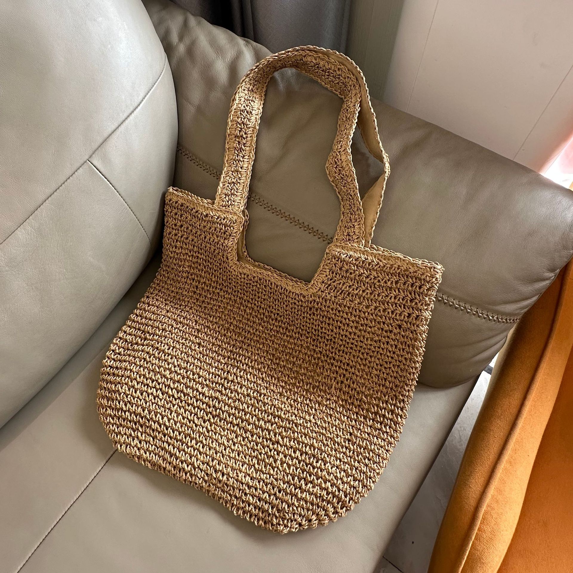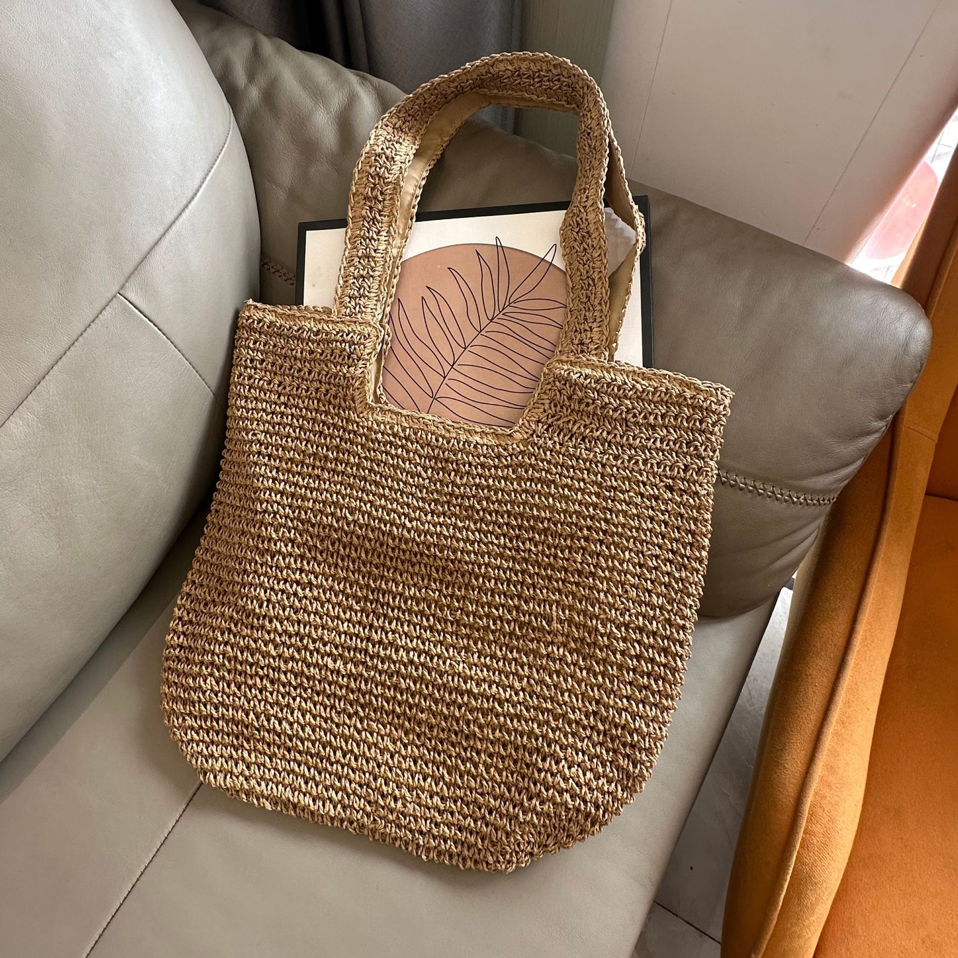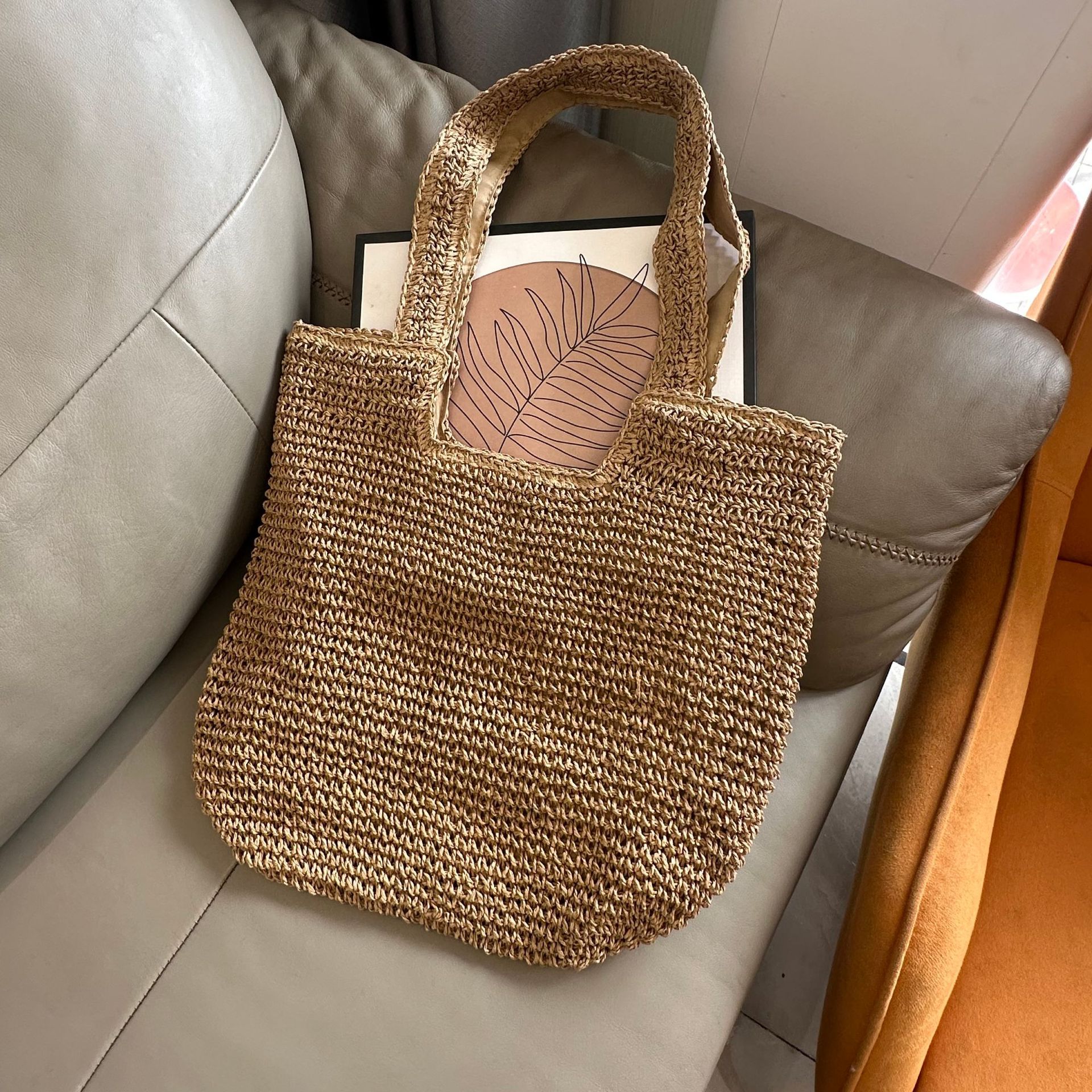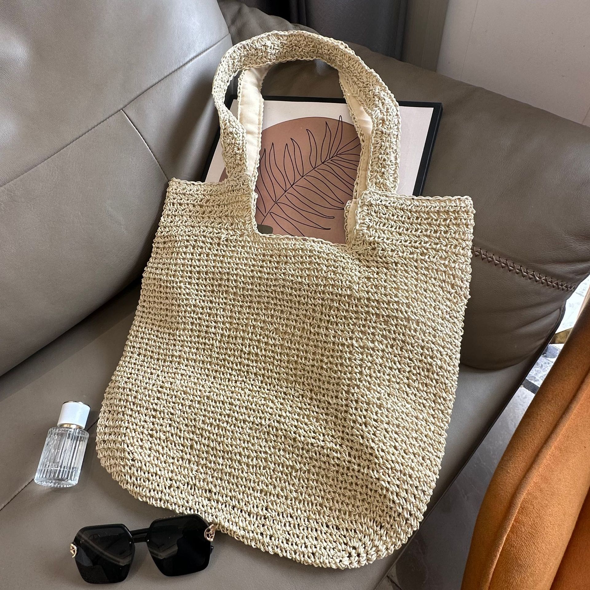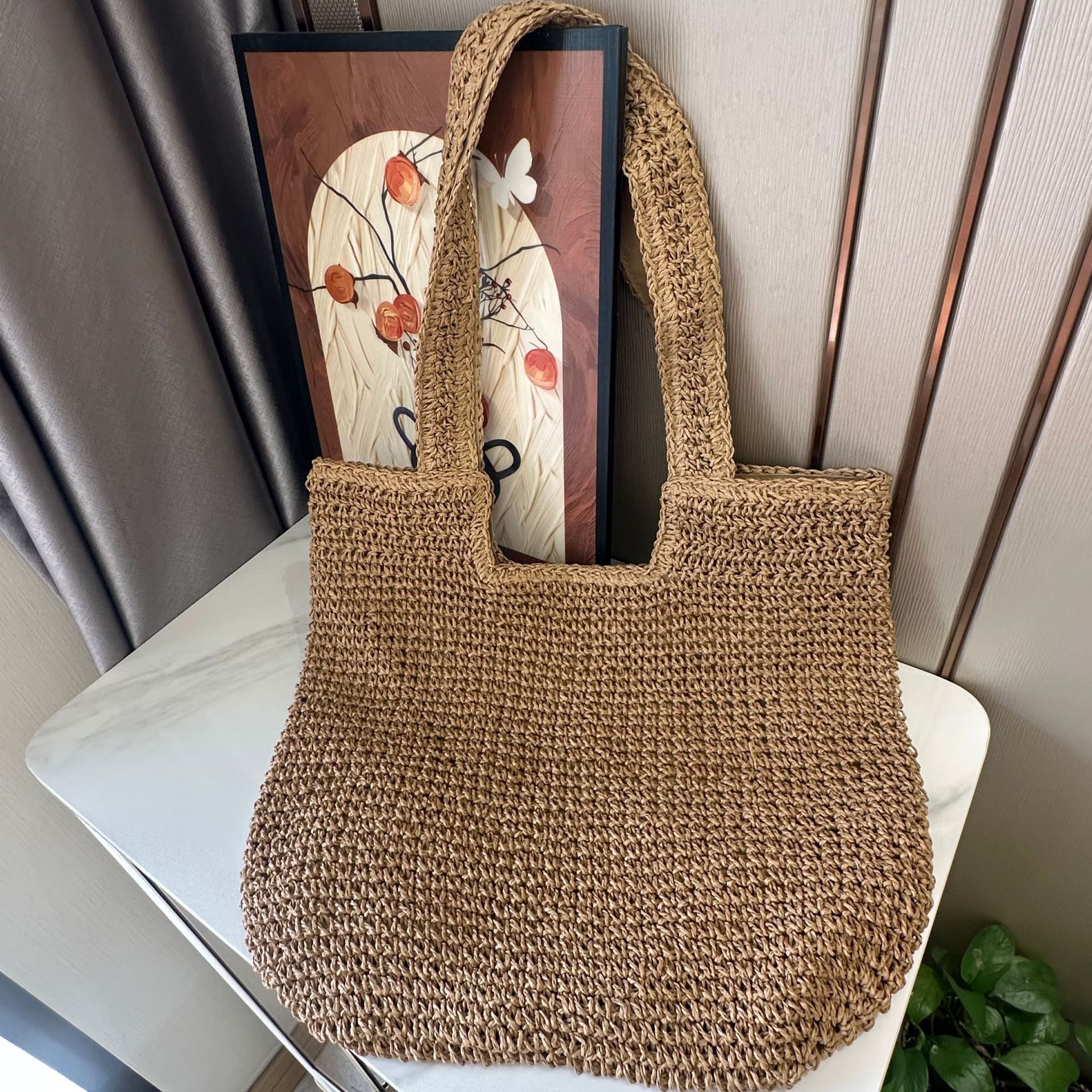 새로운 대용량 짠 2024 틈새 디자인 빈티지 밀짚 짠 가방 캐주얼 통근 토트 가방 어깨 가방 여성