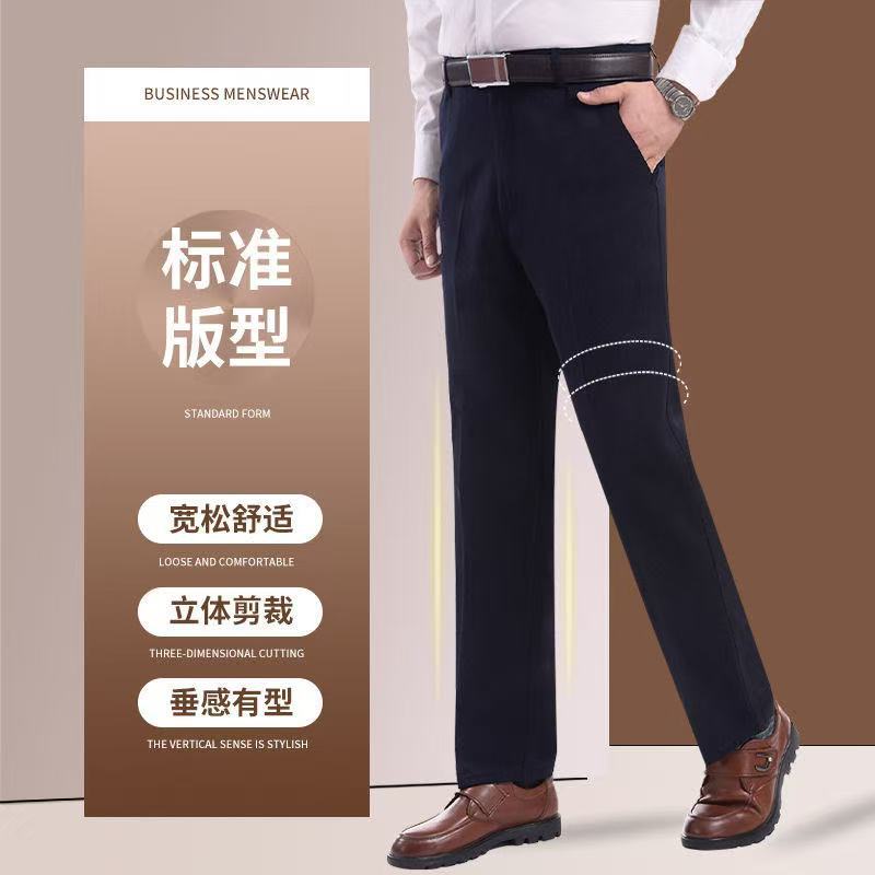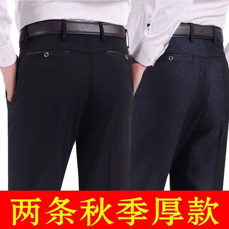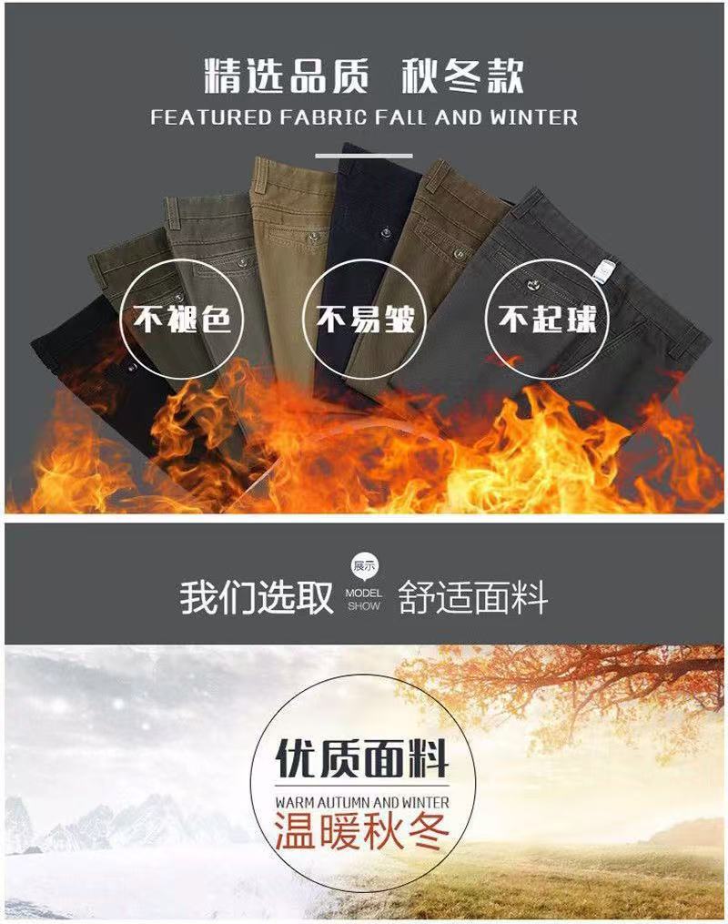 가을과 겨울 느슨한 스트레이트 스트레치 기모 두꺼운 중년 아빠 바지 캐주얼 따뜻한 바지 사업