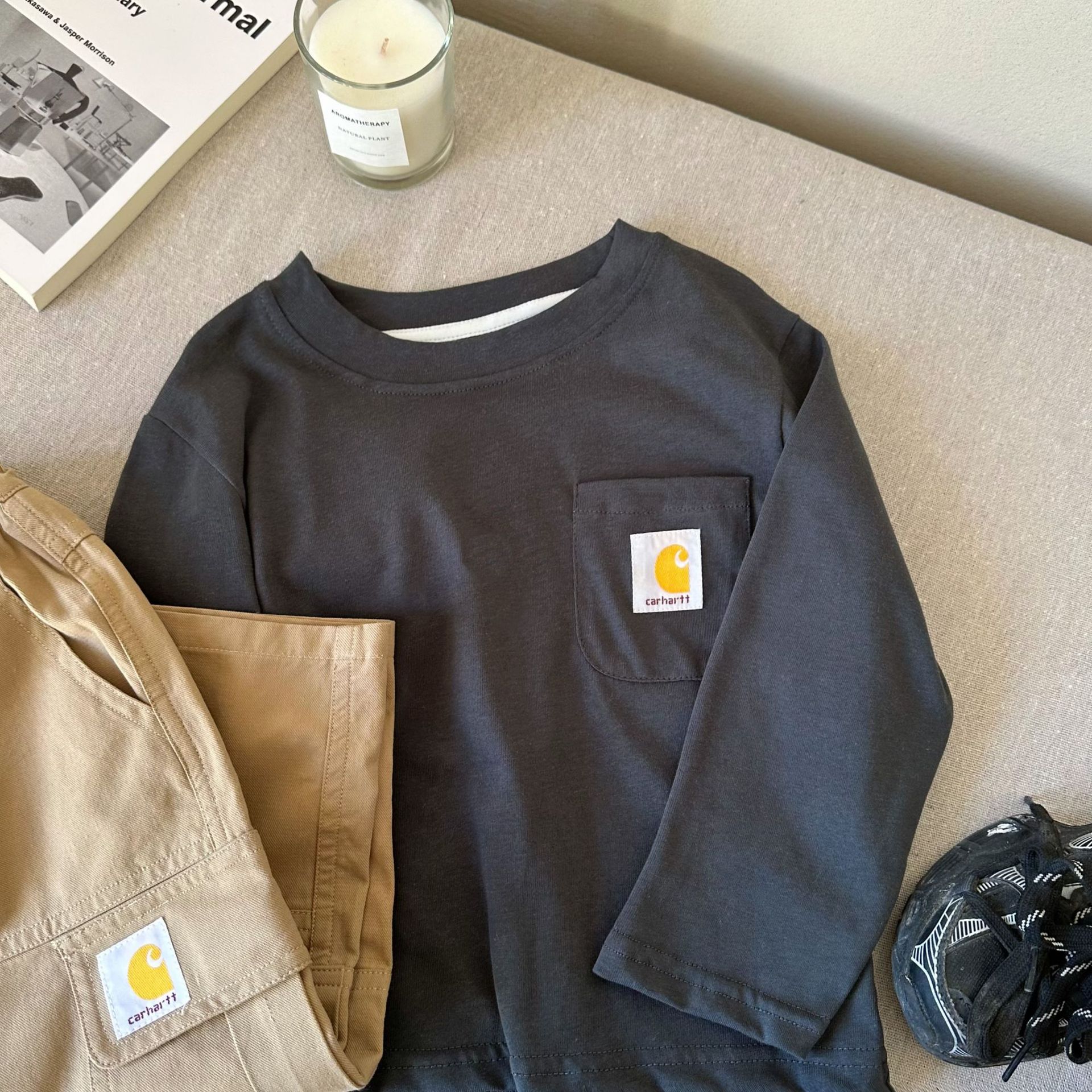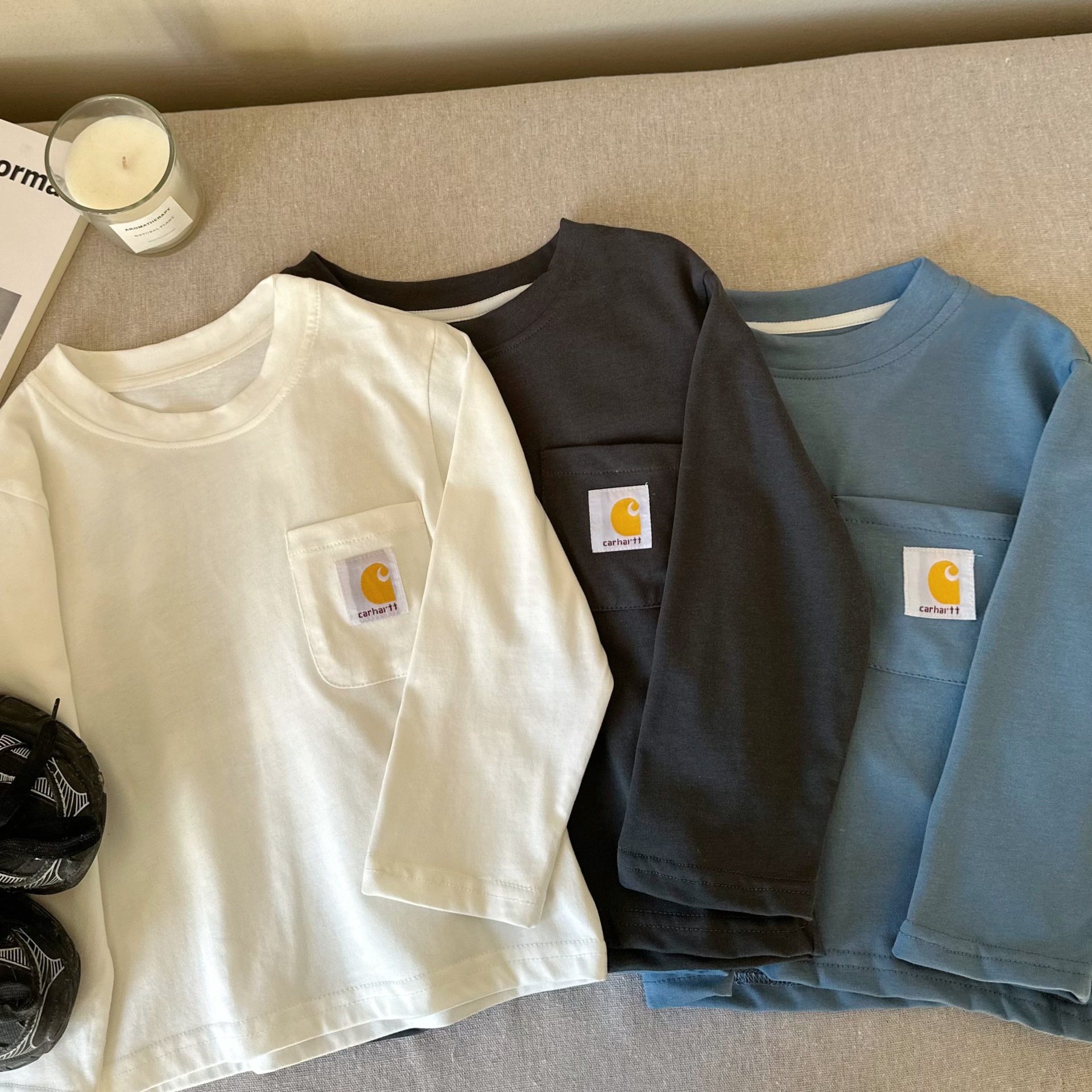 아동용 긴팔 티셔츠 25 가을 겨울 아동복 아동용 일본식 티셔츠 중소형 아동용 봄 캐주얼 티셔츠 긴팔 상의스토어 가기