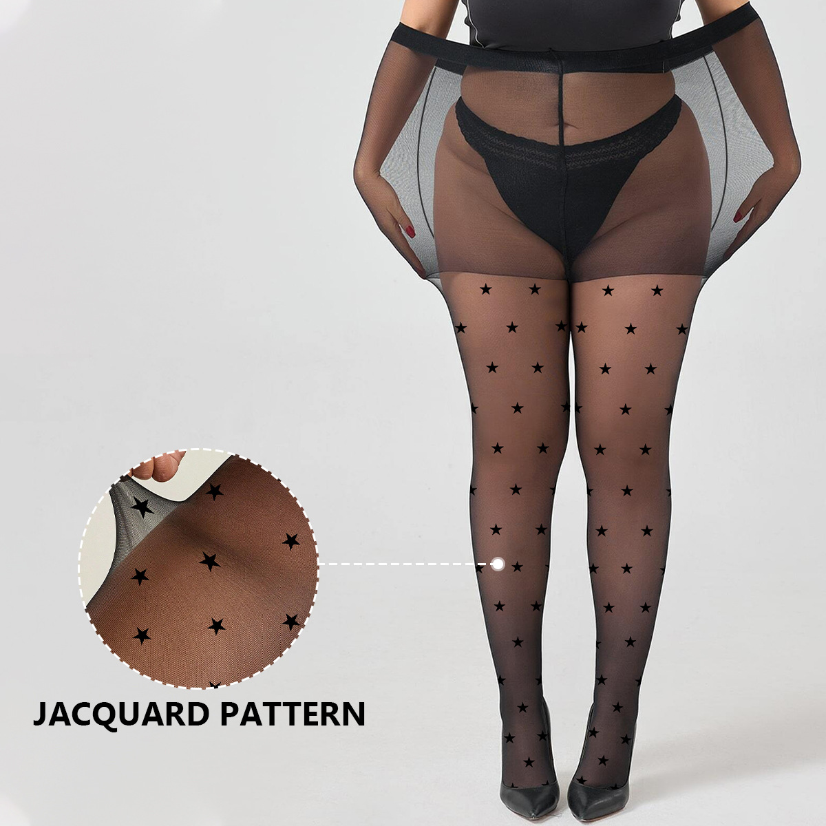 유럽과 미국의 플러스 사이즈 봄과 여름 얇은 다섯개의 별 플랫 가랑이 0D 자카드 블랙 팬티 스타킹 순수 섹시한 자카드 스타킹