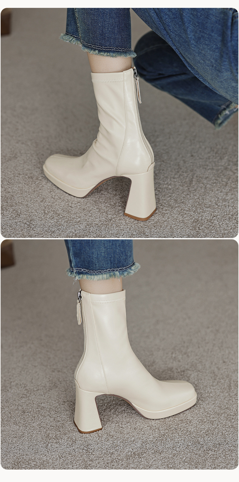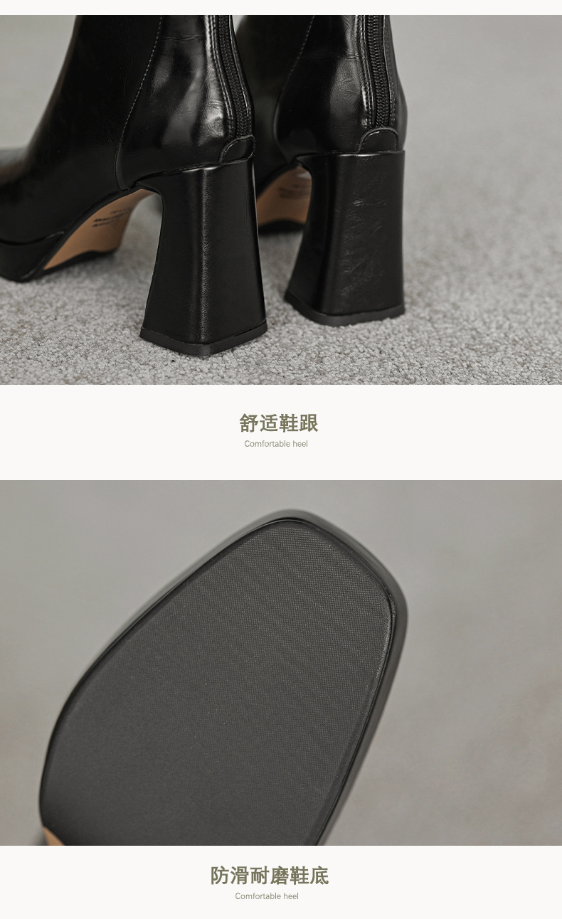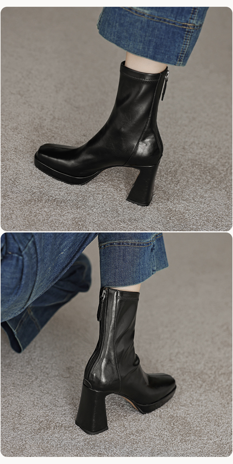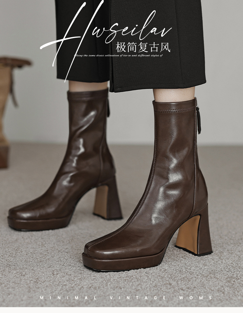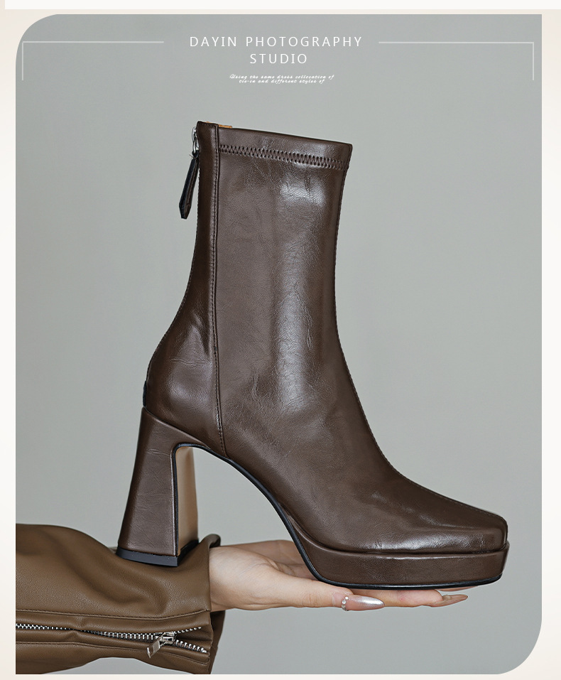 가을 겨울 하이힐 여성 스퀘어 헤드 두꺼운 힐 짧은 부츠 두꺼운 바닥 얇은 부츠 새로운 스타일 방수 플랫폼 탄성 부츠 작은 여성용 부츠스토어 가기