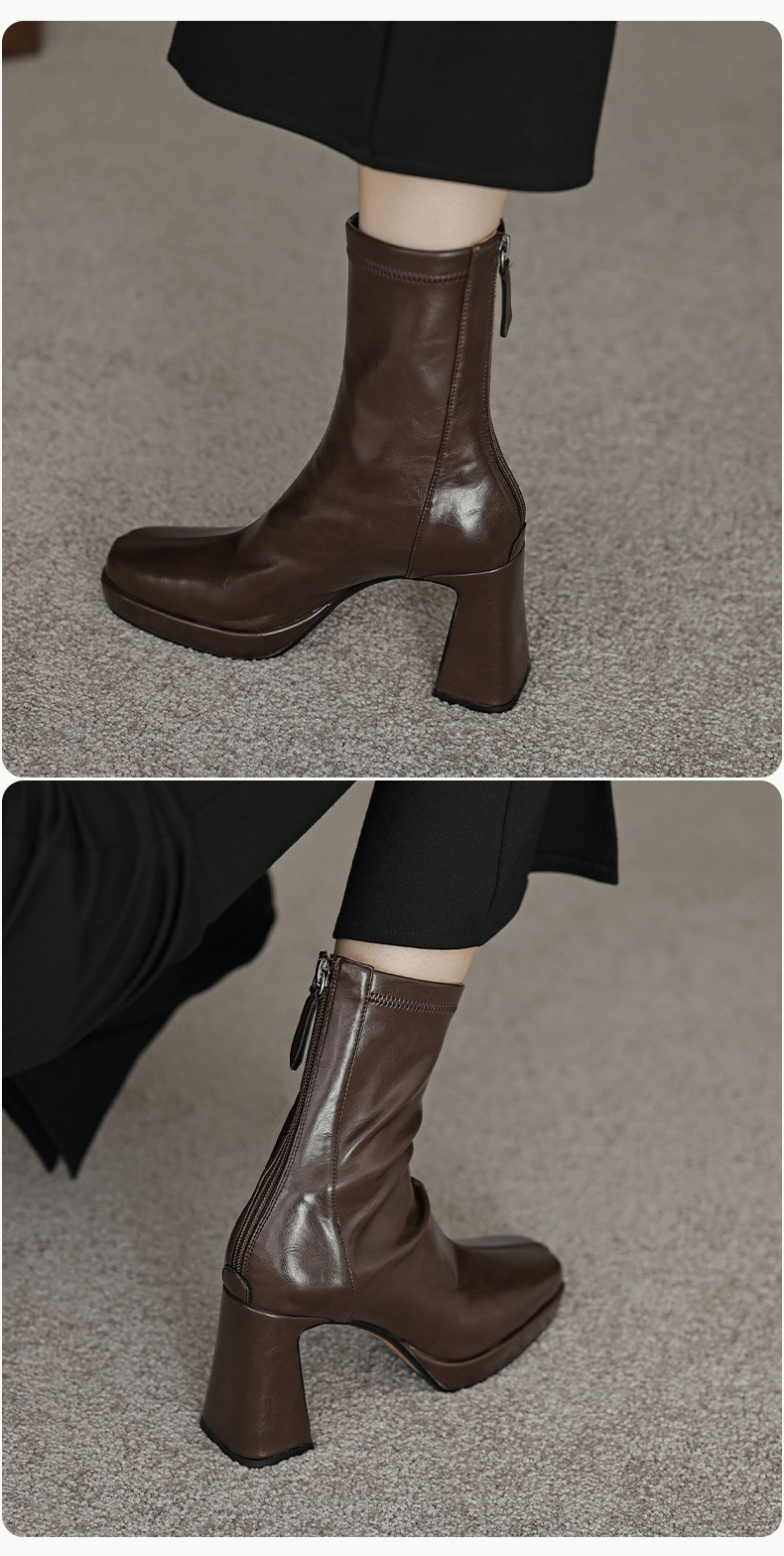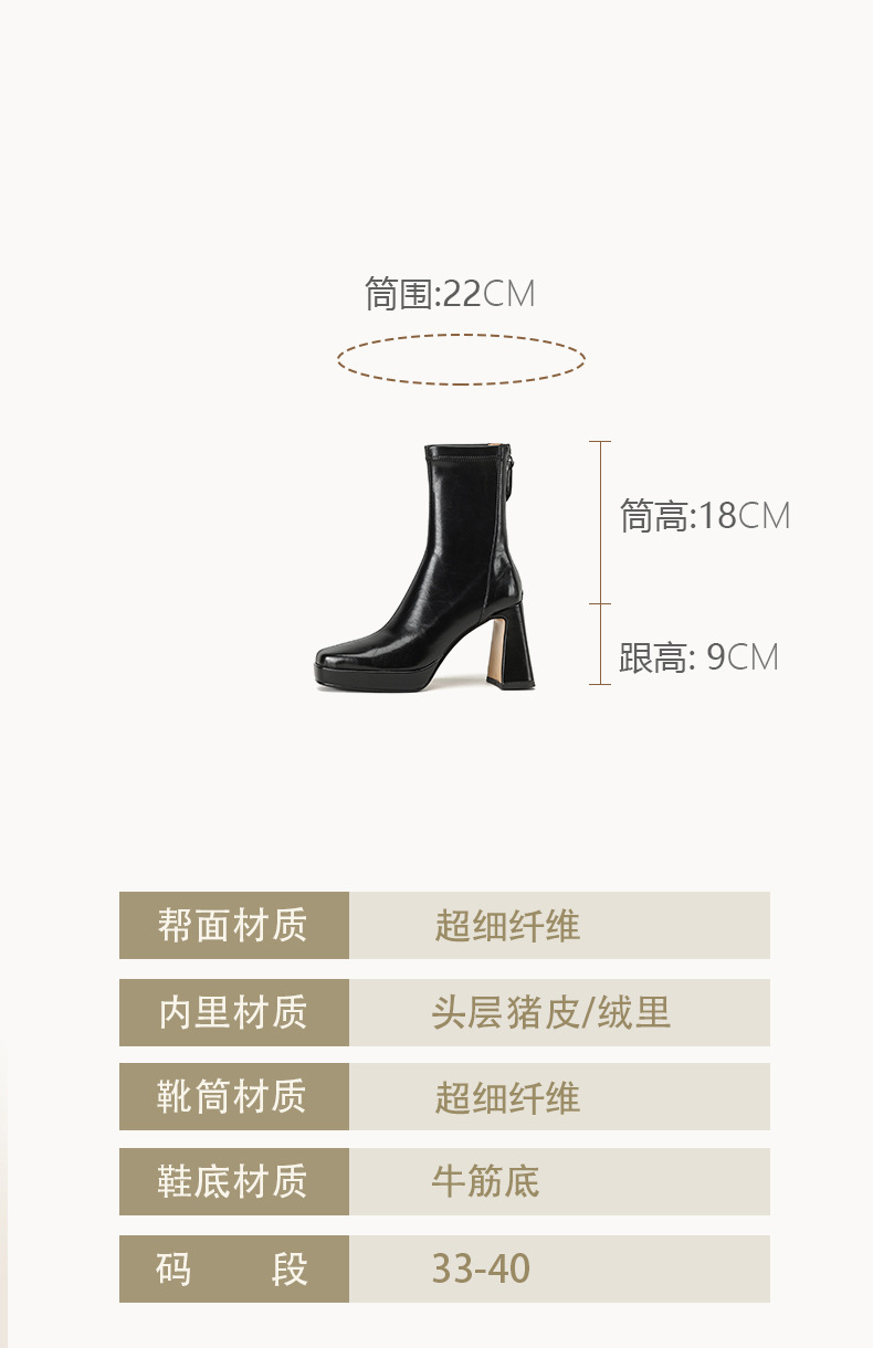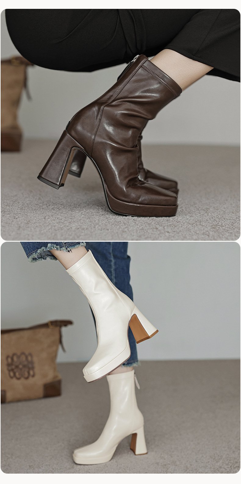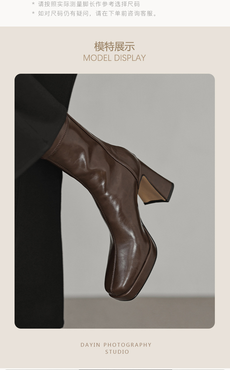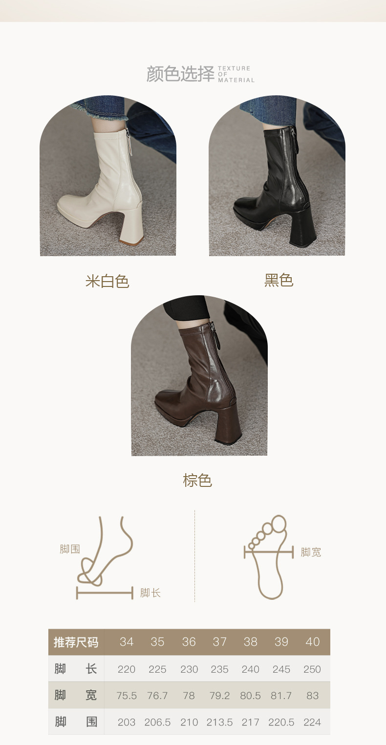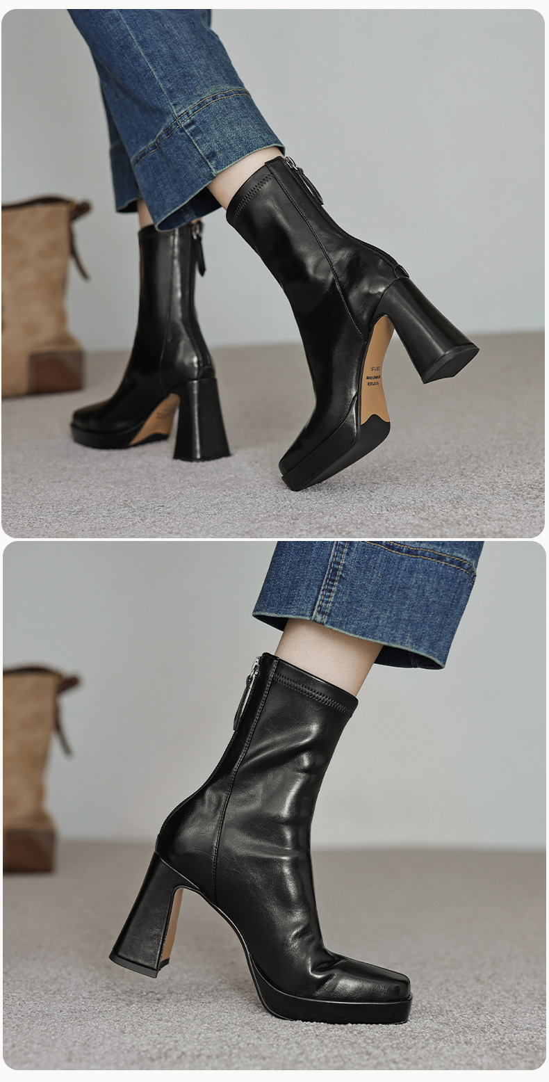 가을 겨울 하이힐 여성 스퀘어 헤드 두꺼운 힐 짧은 부츠 두꺼운 바닥 얇은 부츠 새로운 스타일 방수 플랫폼 탄성 부츠 작은 여성용 부츠스토어 가기
