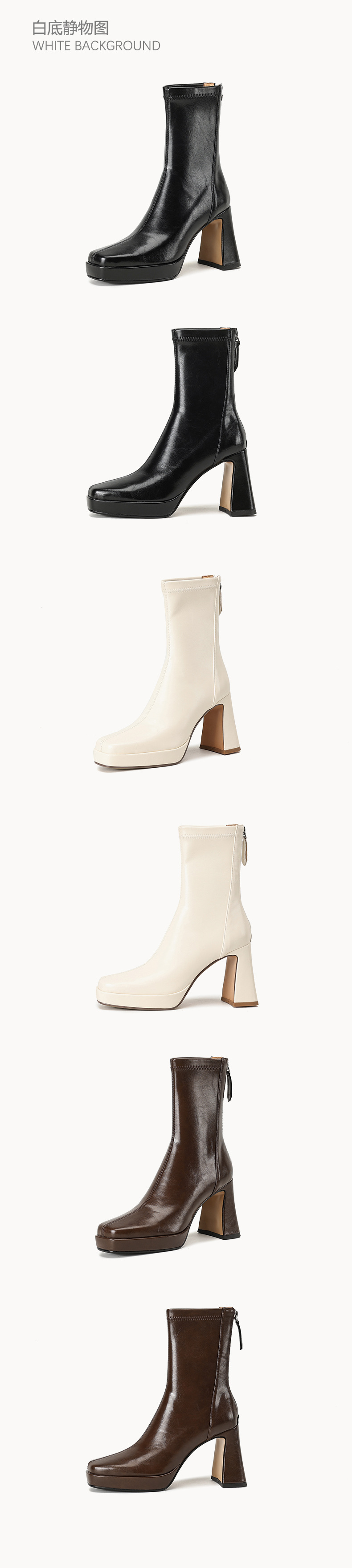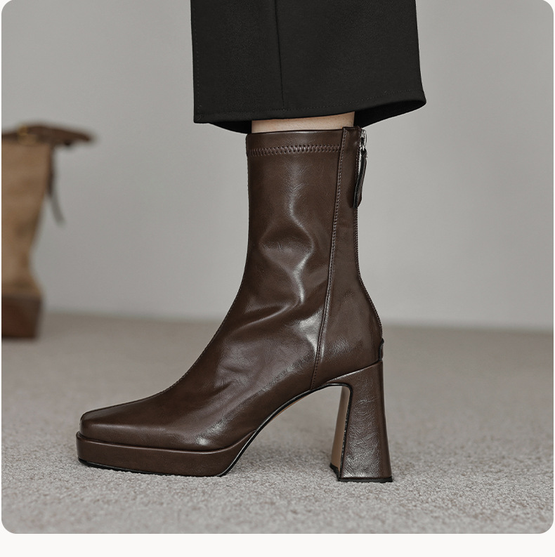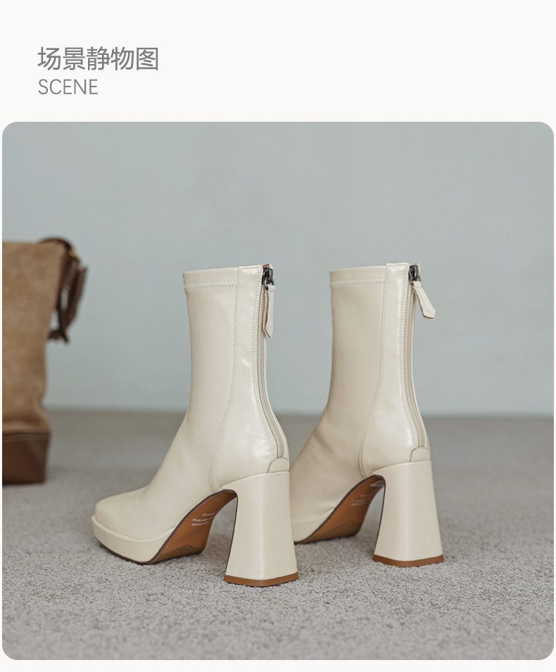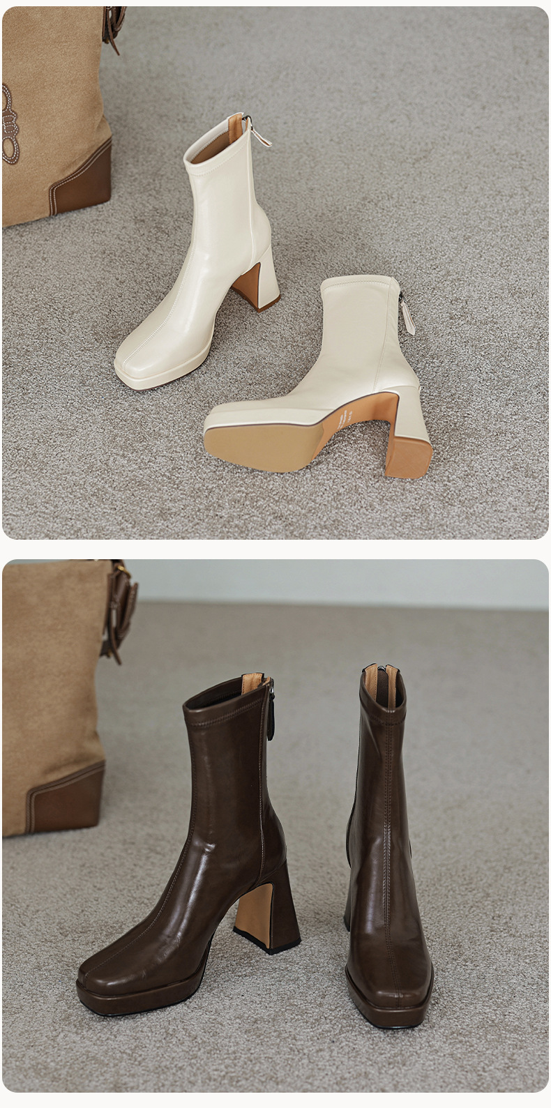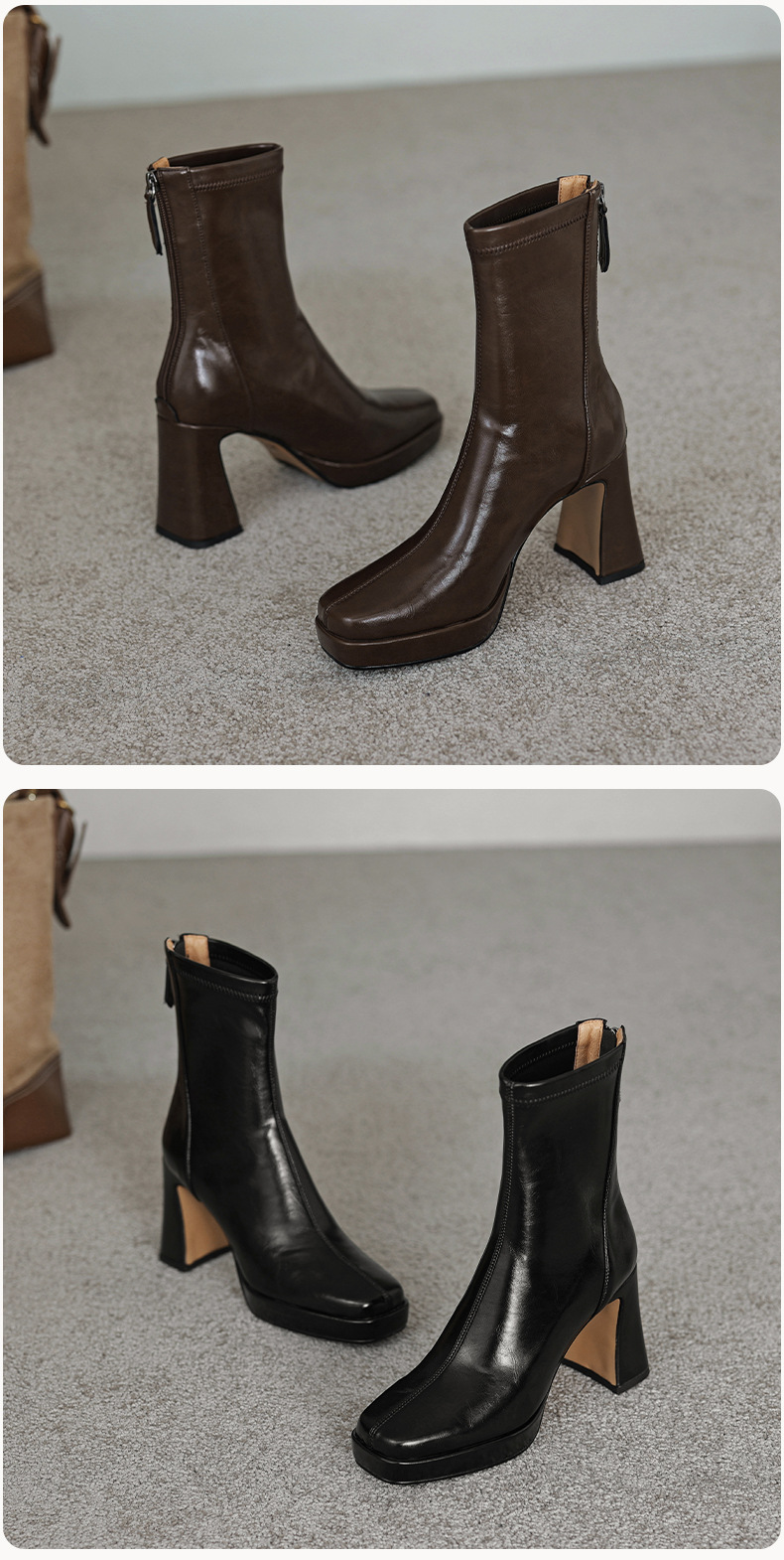 가을 겨울 하이힐 여성 스퀘어 헤드 두꺼운 힐 짧은 부츠 두꺼운 바닥 얇은 부츠 새로운 스타일 방수 플랫폼 탄성 부츠 작은 여성용 부츠스토어 가기