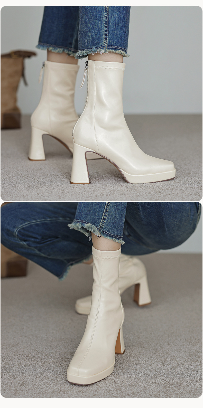 가을 겨울 하이힐 여성 스퀘어 헤드 두꺼운 힐 짧은 부츠 두꺼운 바닥 얇은 부츠 새로운 스타일 방수 플랫폼 탄성 부츠 작은 여성용 부츠
