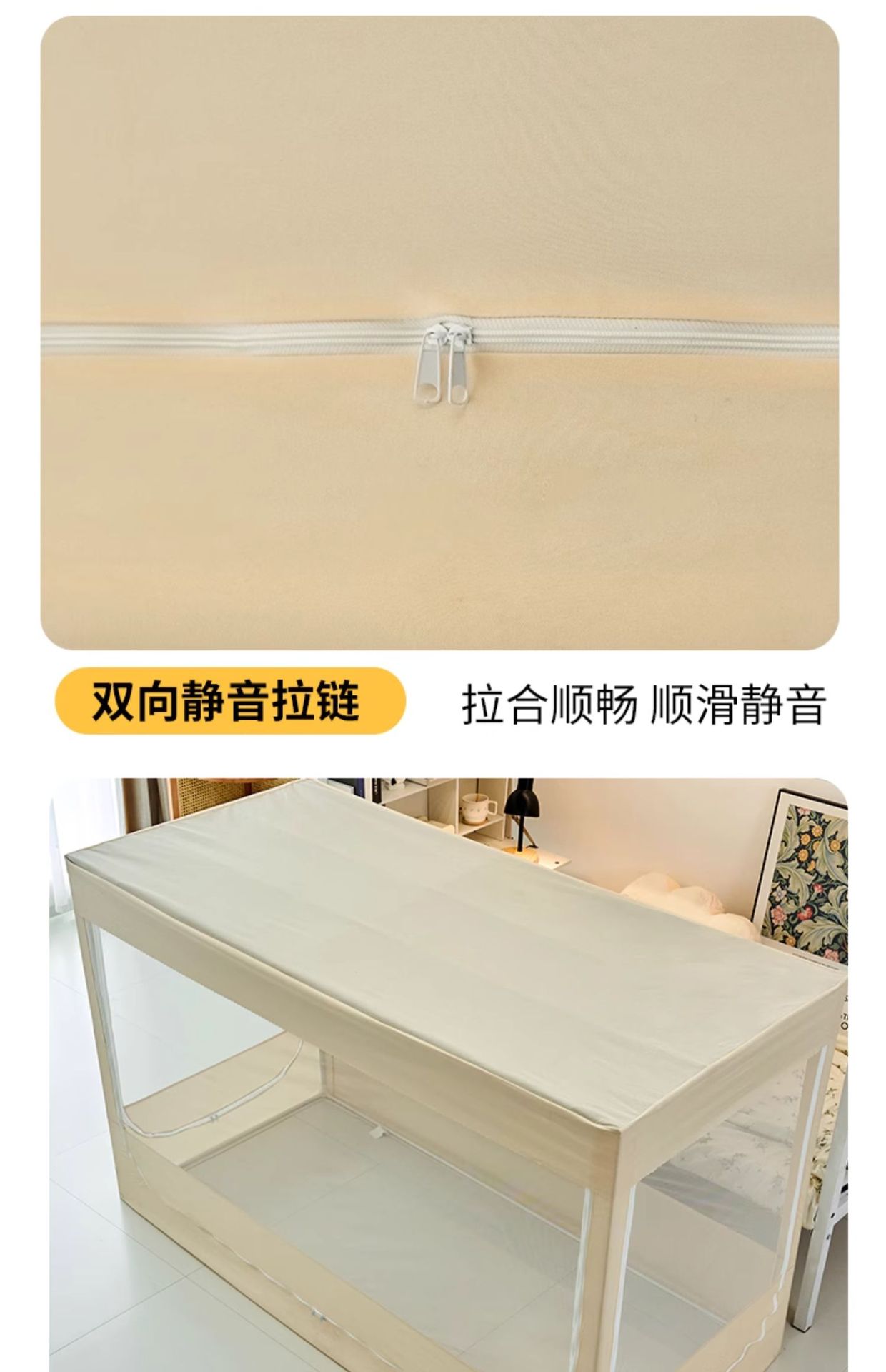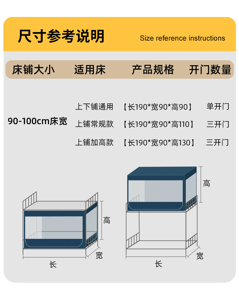 • [길이 190x가로 90x높이 130] 모기장 일체형 커튼 2개 + 상단 및 4면 강력한 차광 [상단 침대 높이 버전]