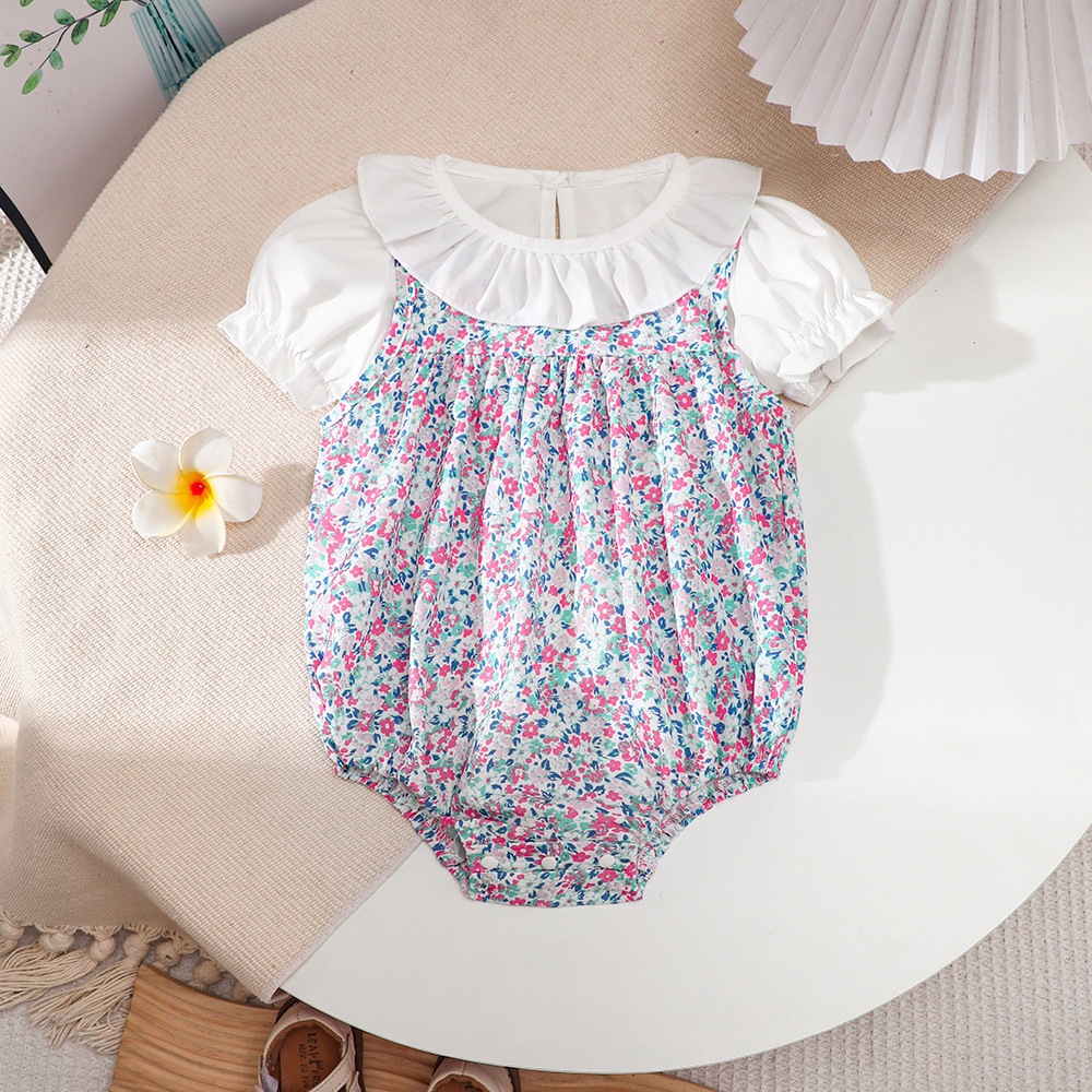 아기의 달콤한 슬링 하기의 새 스타일 아기 소녀의 꽃 점프 수트 2025 여름 소녀의 보물 등반 투피스 세트