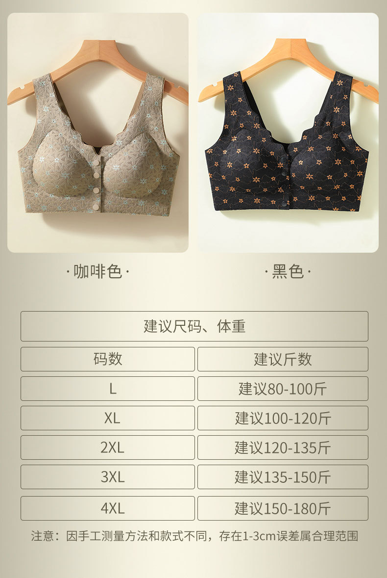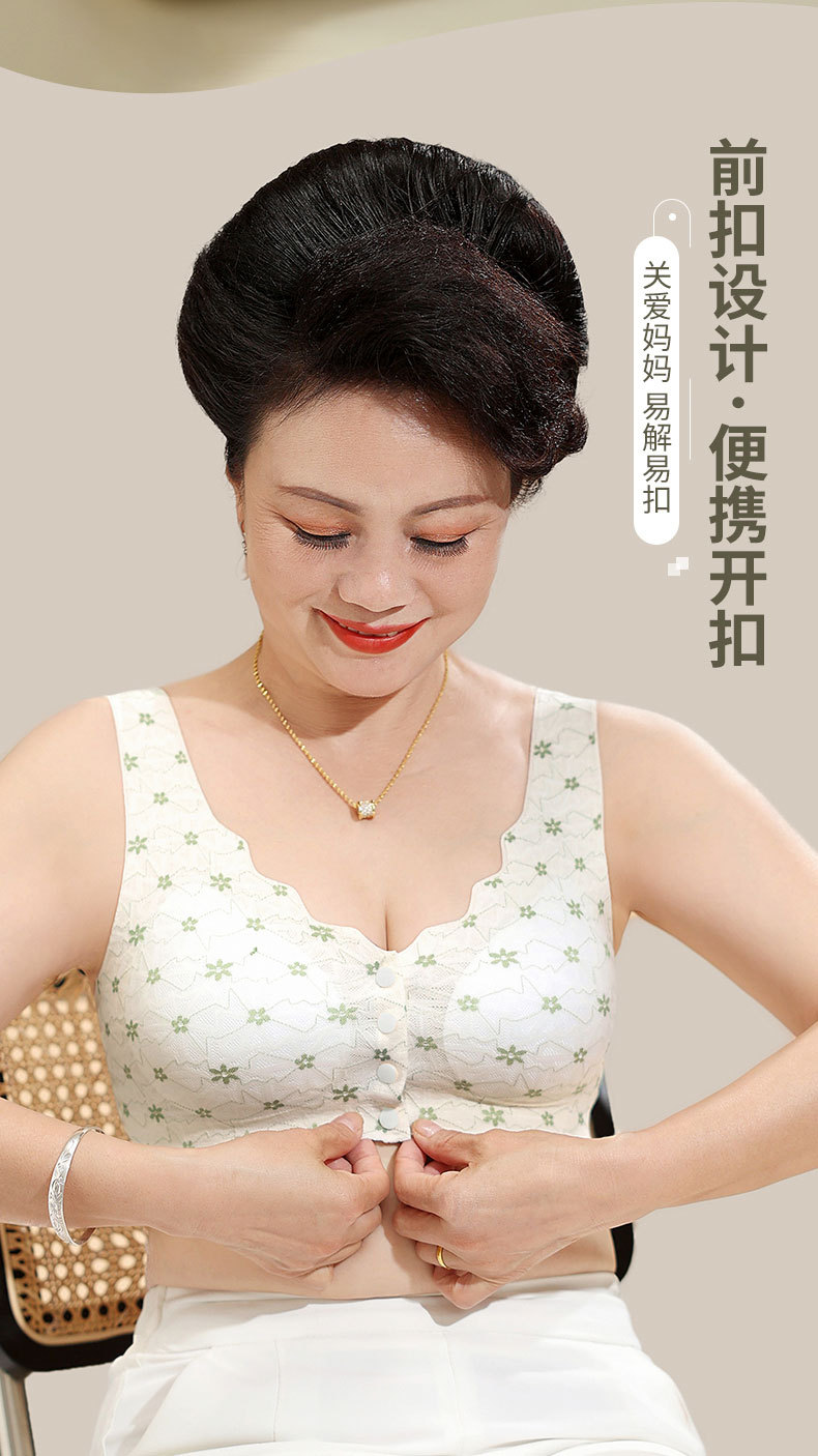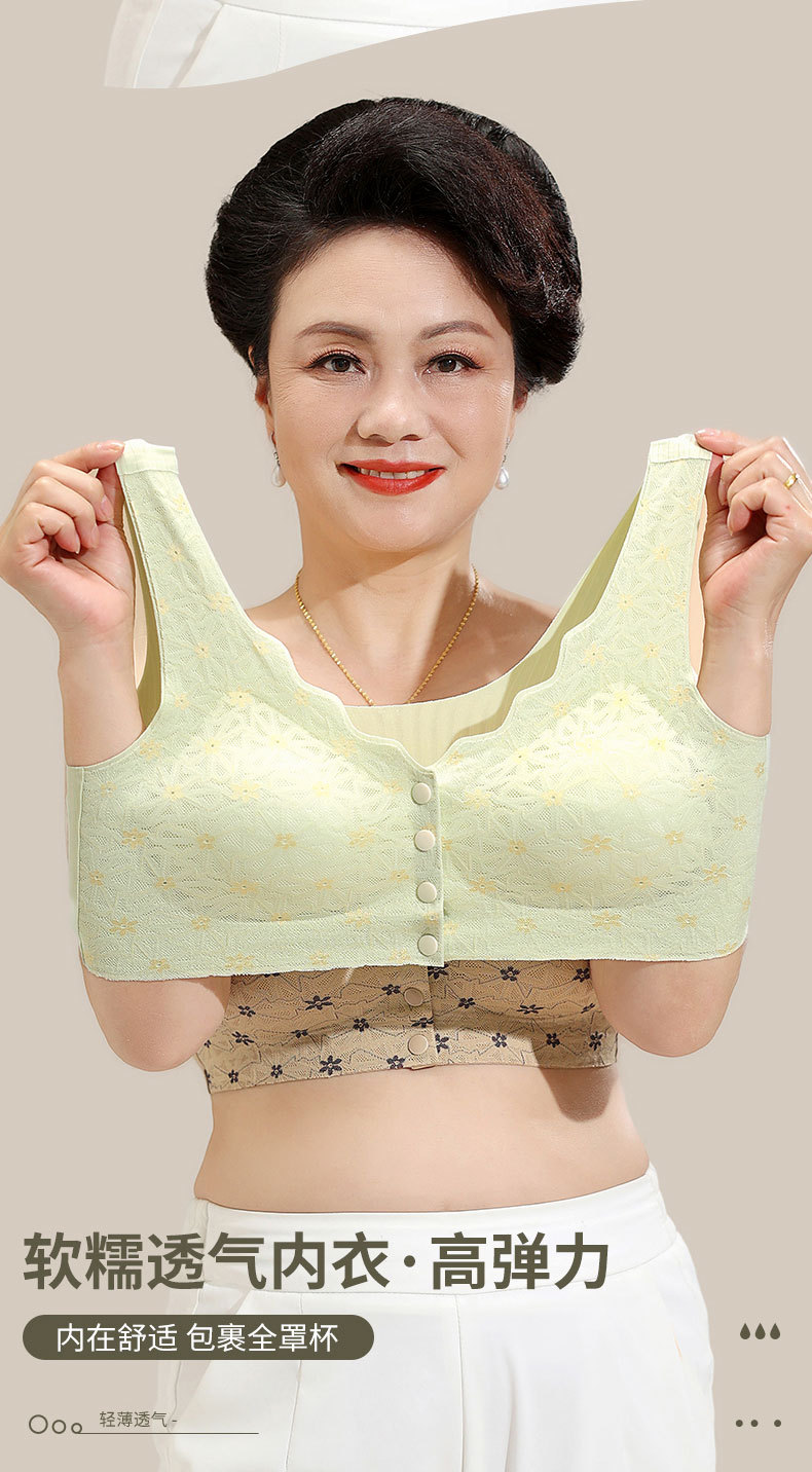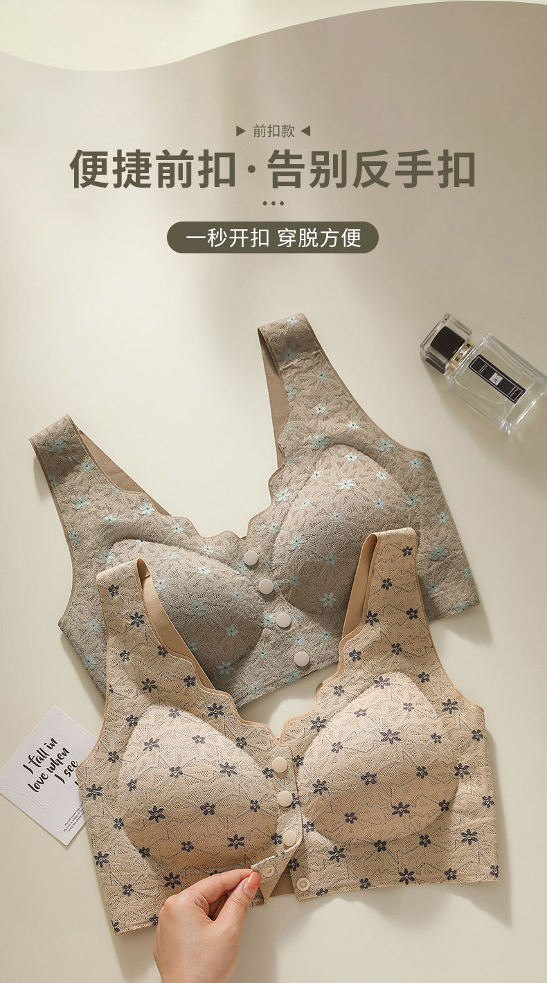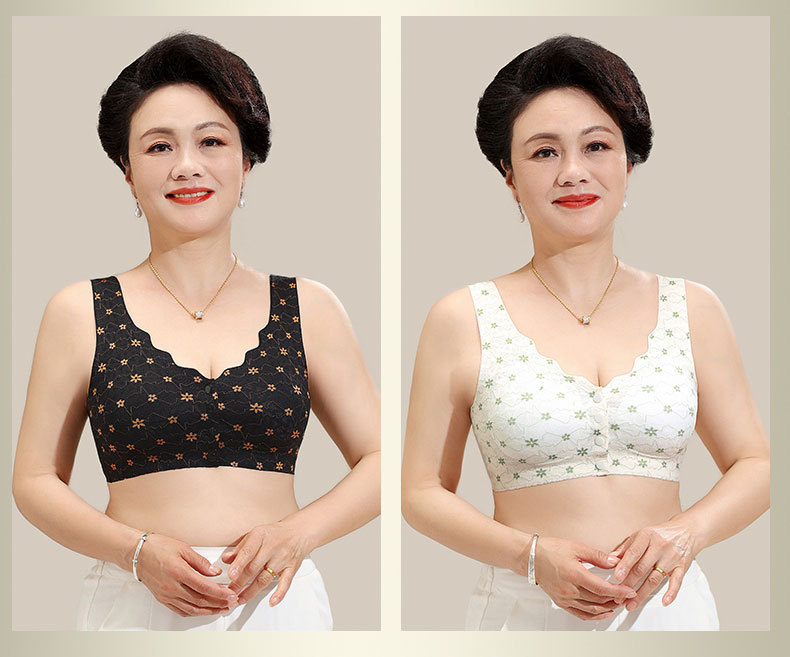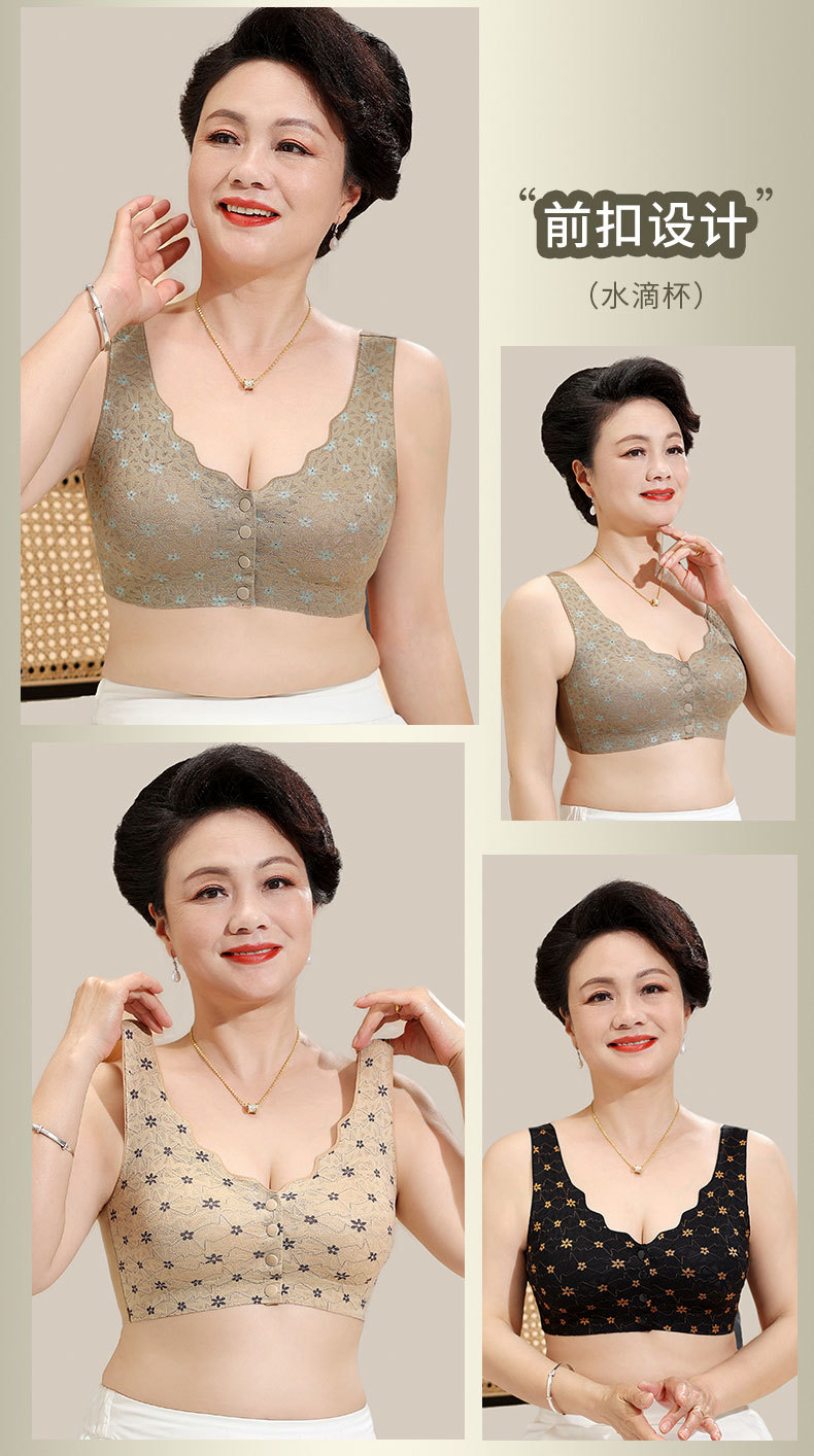 엄마용 여성 무봉제 중년 앞후크 브라 탑형 대형 무와이어 처짐방지 레이스스토어 가기
