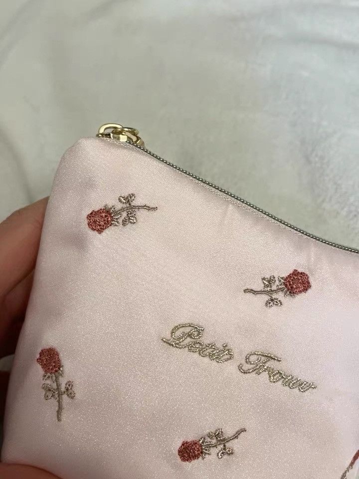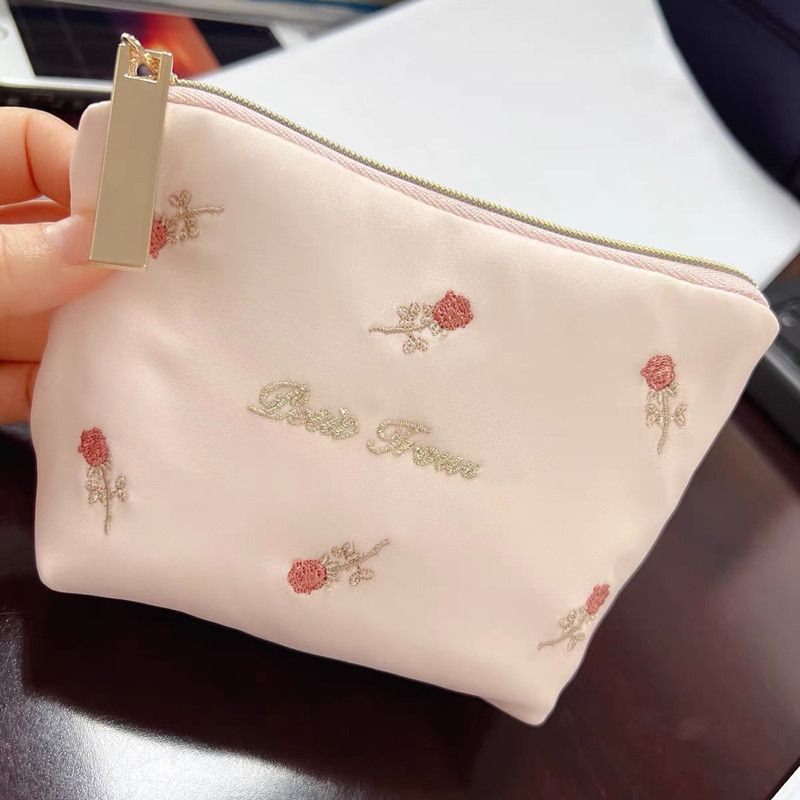 빈티지 자수 장미 꽃 화장품 가방 미니 귀여운 휴대용 지퍼 핸드백 립스틱 에어 쿠션 메이크업 가방 티슈 백스토어 가기
