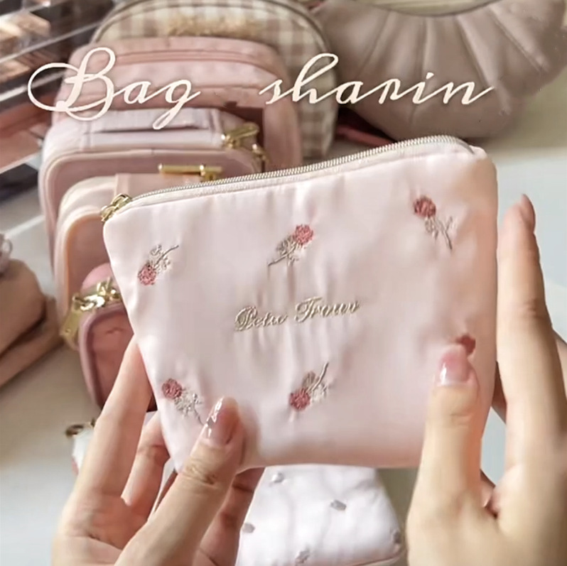 빈티지 자수 장미 꽃 화장품 가방 미니 귀여운 휴대용 지퍼 핸드백 립스틱 에어 쿠션 메이크업 가방 티슈 백