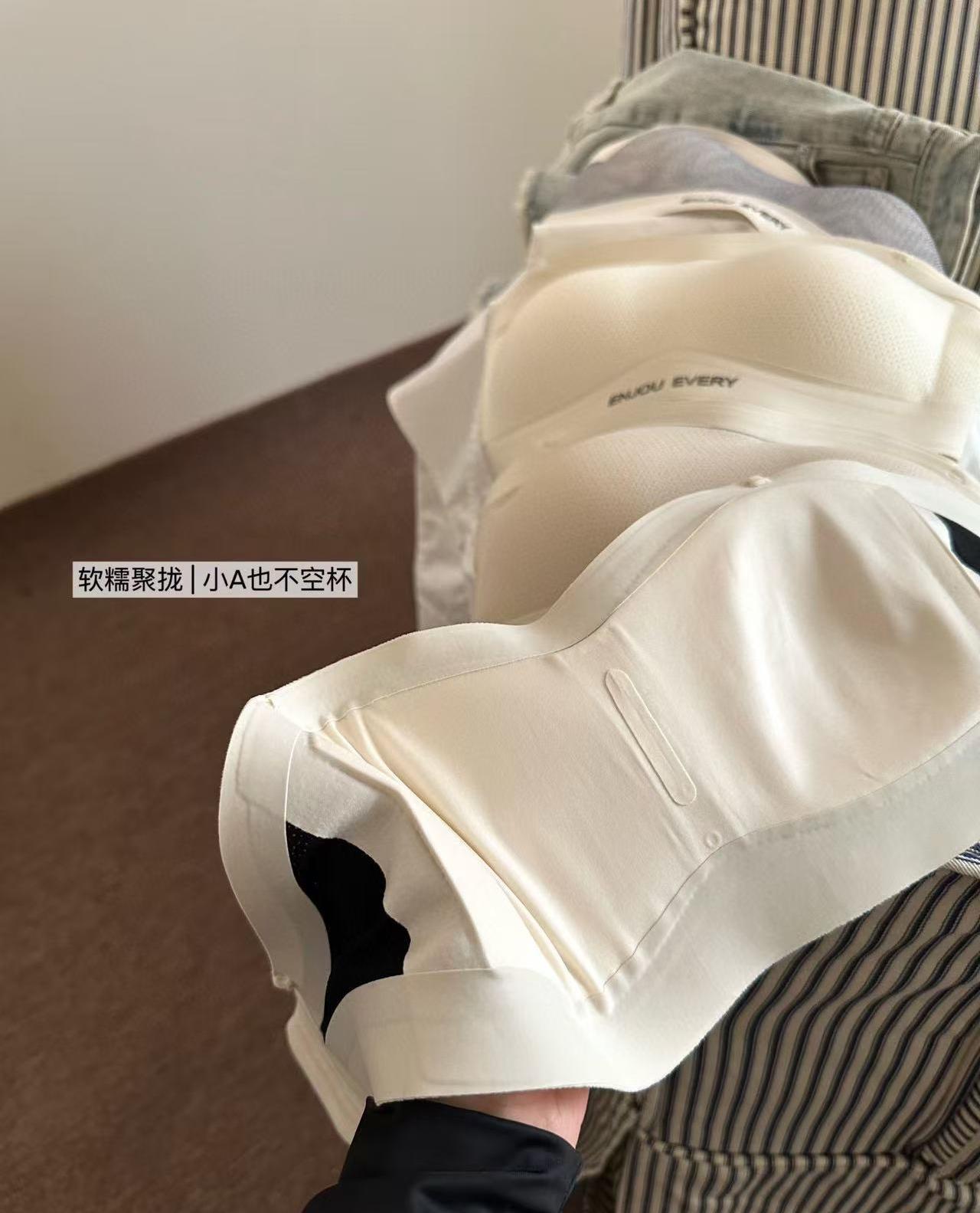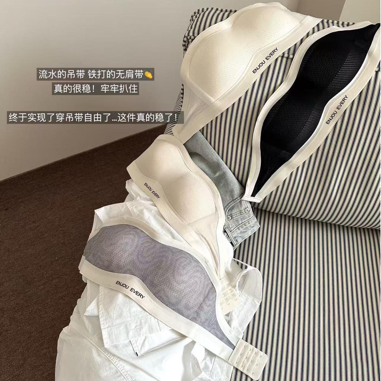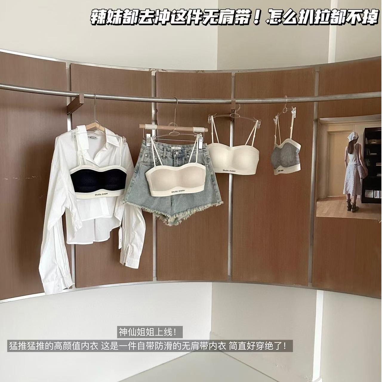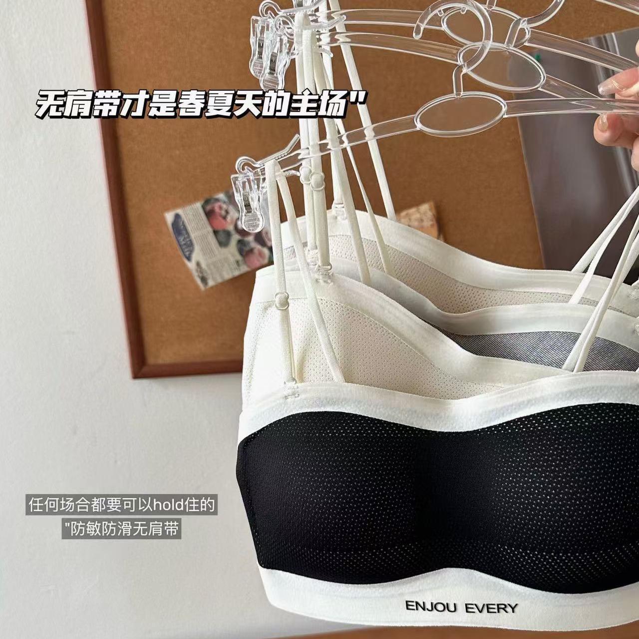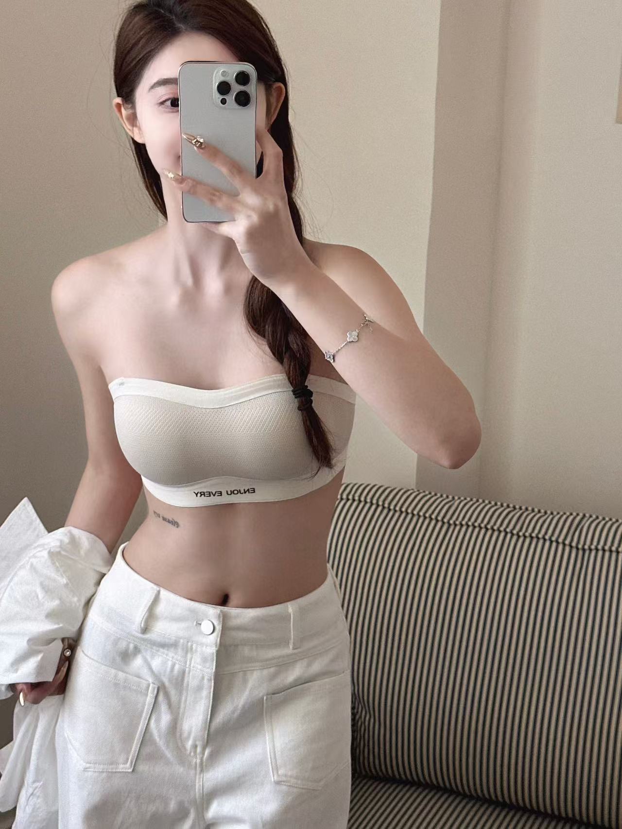 2025 봄과 여름 새로운 디스코 속옷 세련된 중공 레이스 미끄럼 방지 튜브 탑은 컵 한 단어 아름다운 백 브래지어를 실행하지 않습니다.스토어 가기
