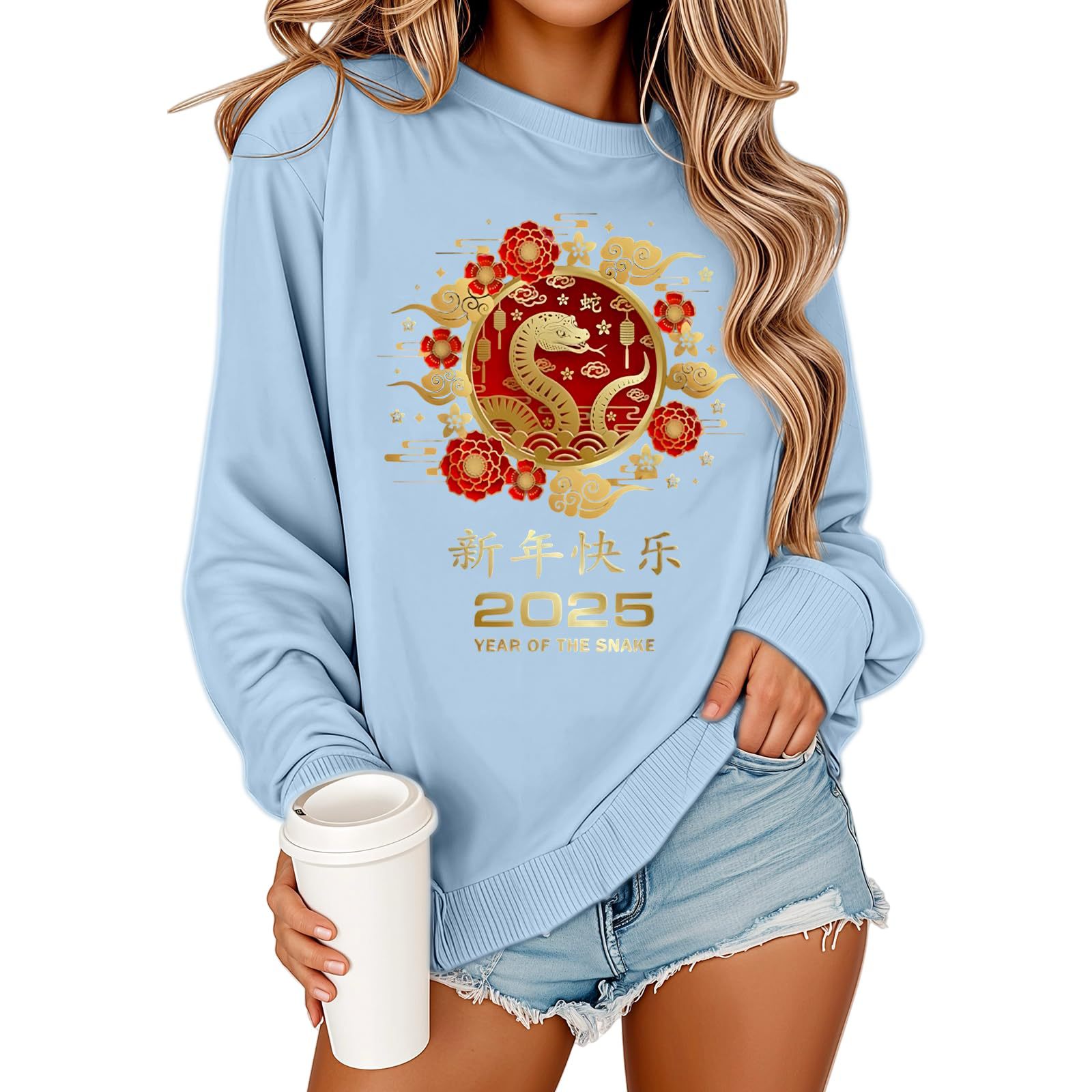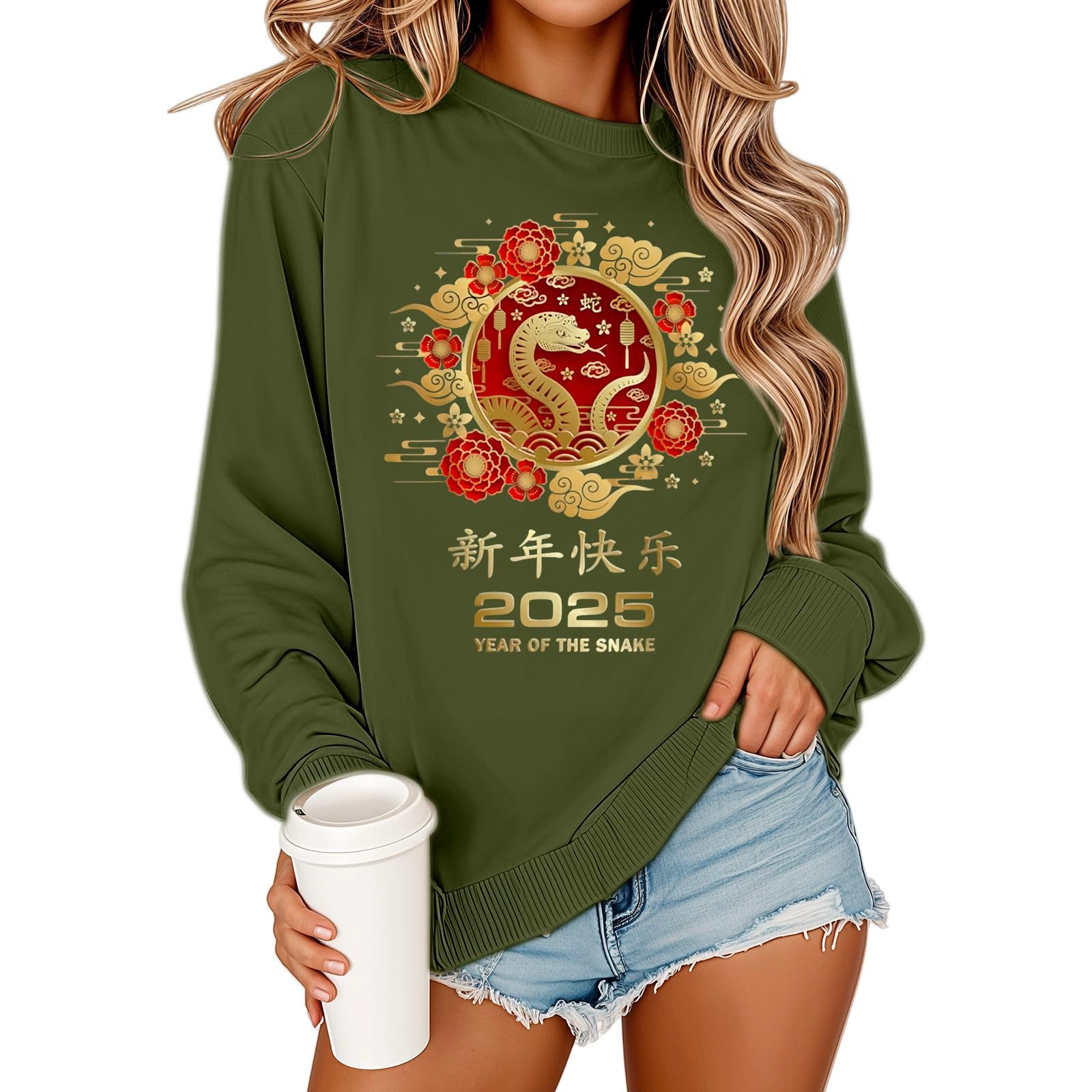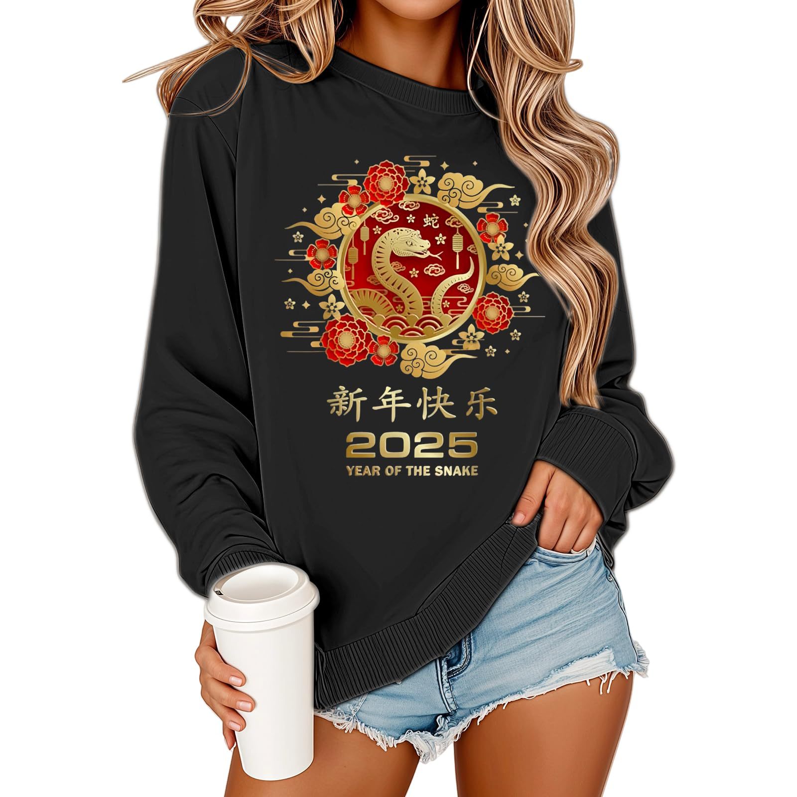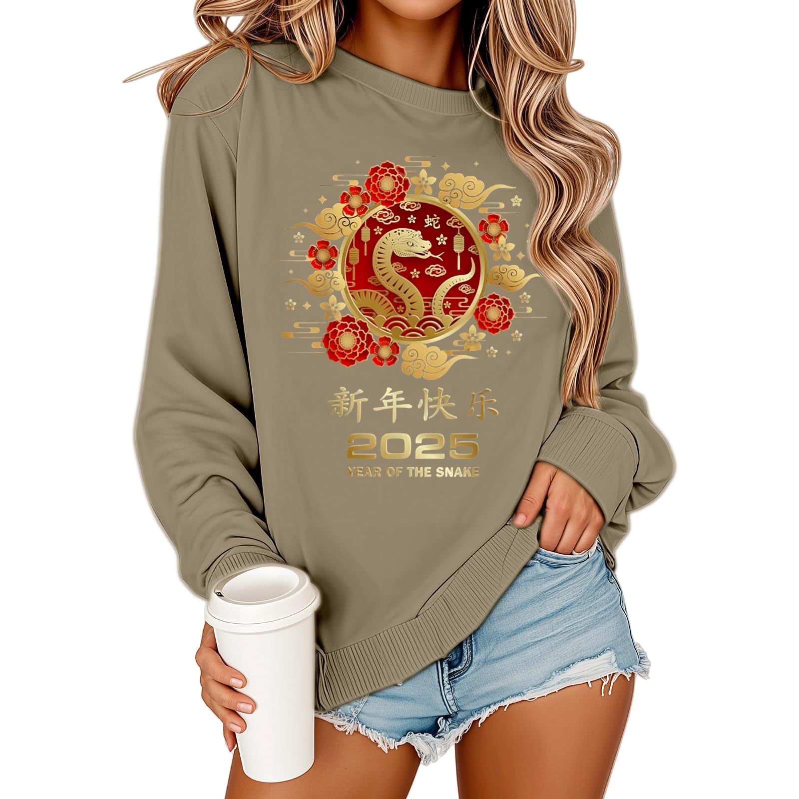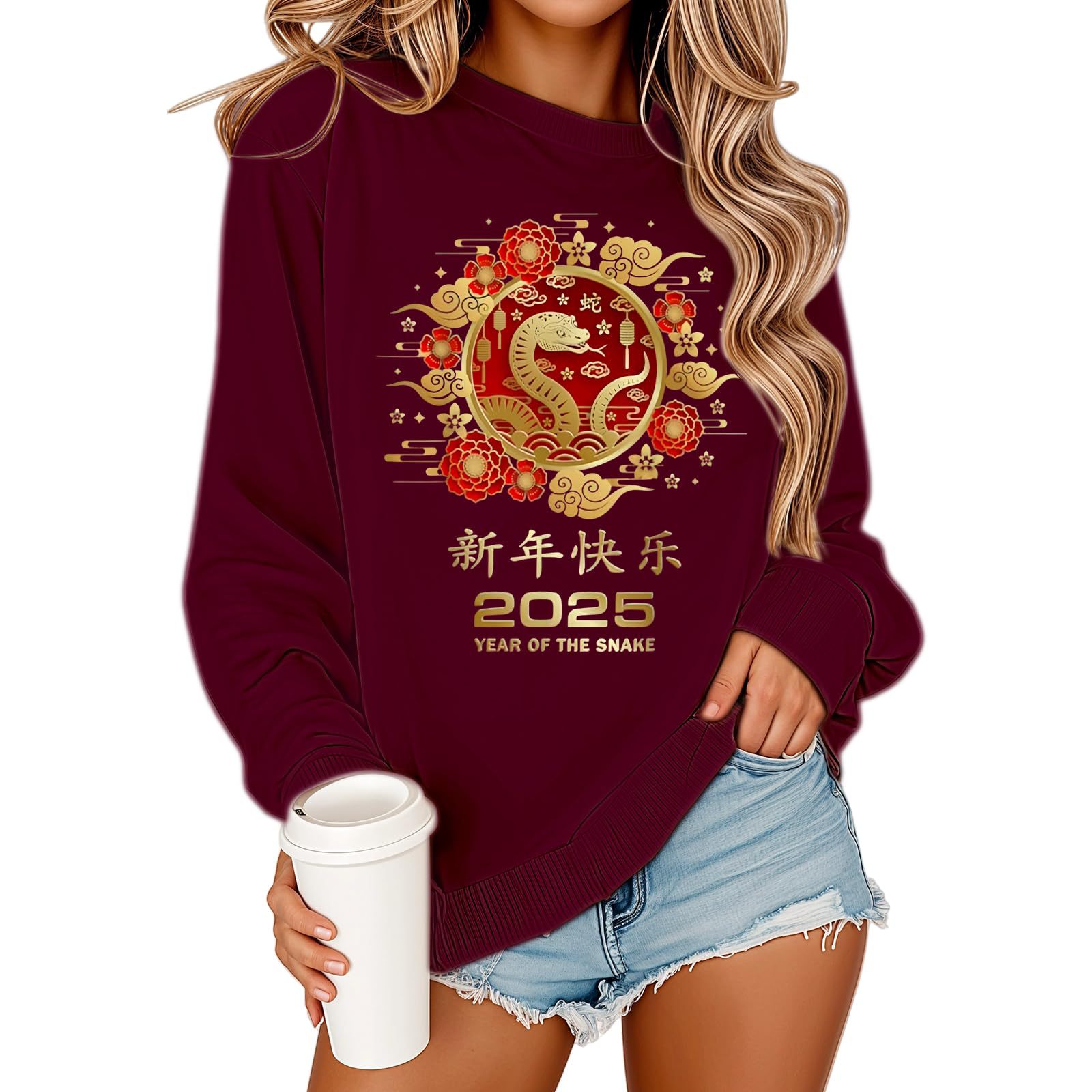 2025 해피 뉴 이어 유럽과 미국 스타일 패션 가을과 겨울 새로운 올 매치 느슨한 기모 패션 인쇄 풀오버 크루 넥 가드