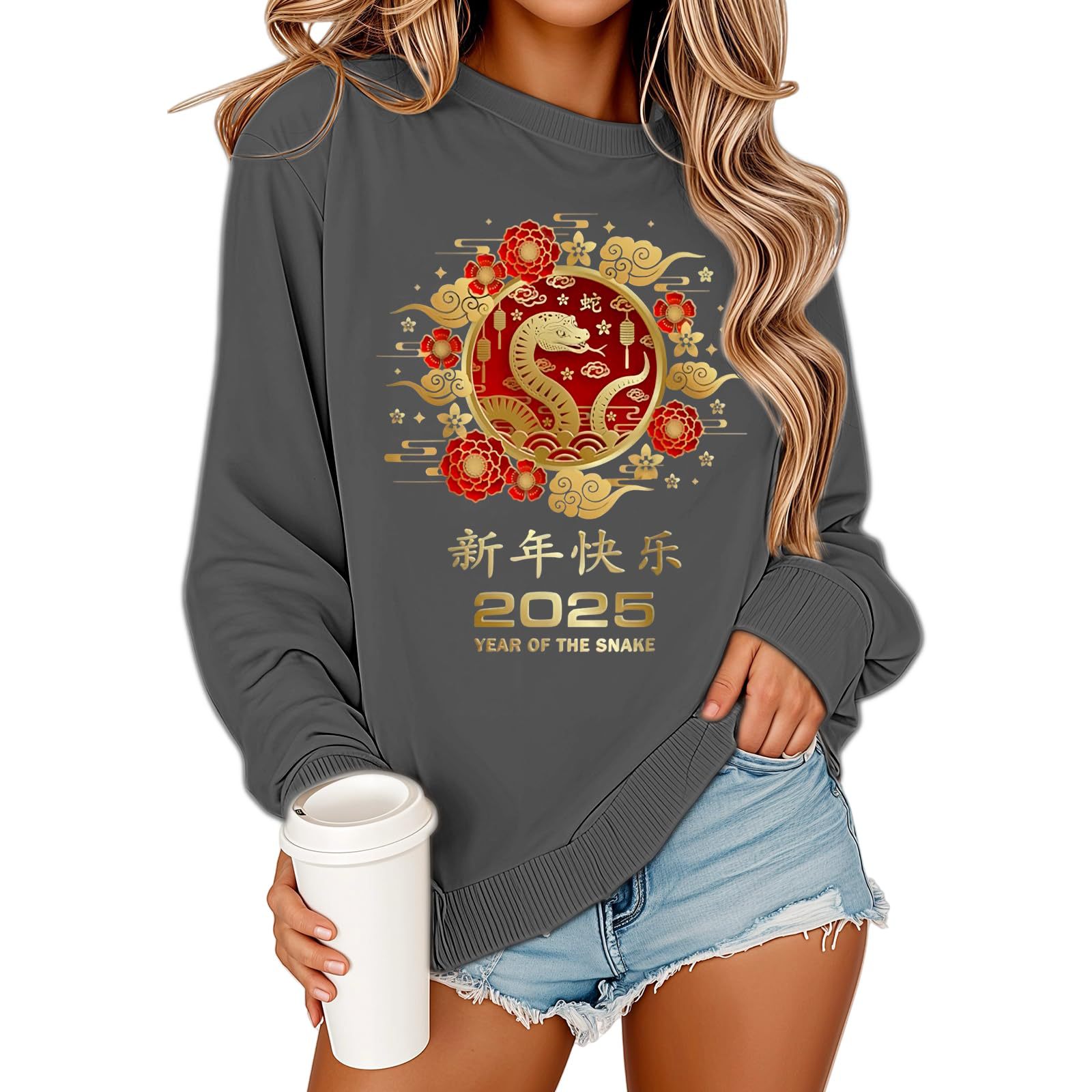 2025 해피 뉴 이어 유럽과 미국 스타일 패션 가을과 겨울 새로운 올 매치 느슨한 기모 패션 인쇄 풀오버 크루 넥 가드스토어 가기