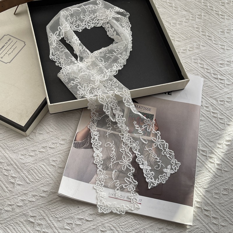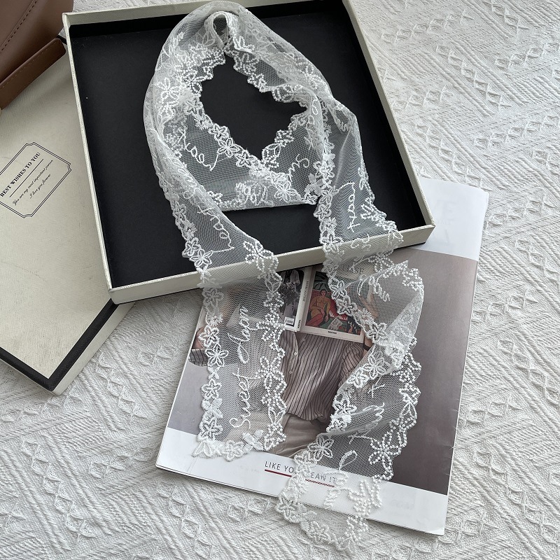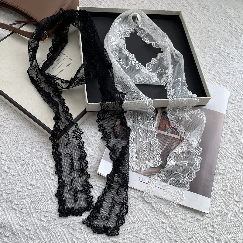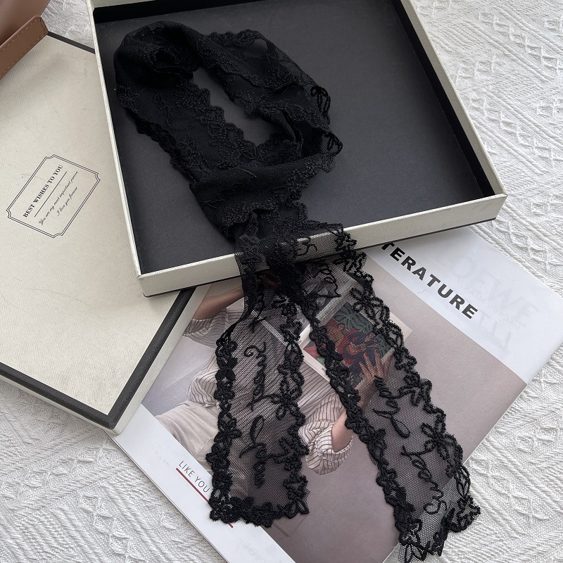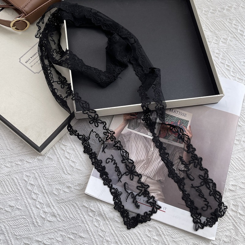 한국 스타일 블랙 순수한 욕망 레이스 리본 여성의 얇은 실크 스카프 헤어 밴드 타이 헤어 빈티지 장식 스카프 벨트 봄과 여름스토어 가기