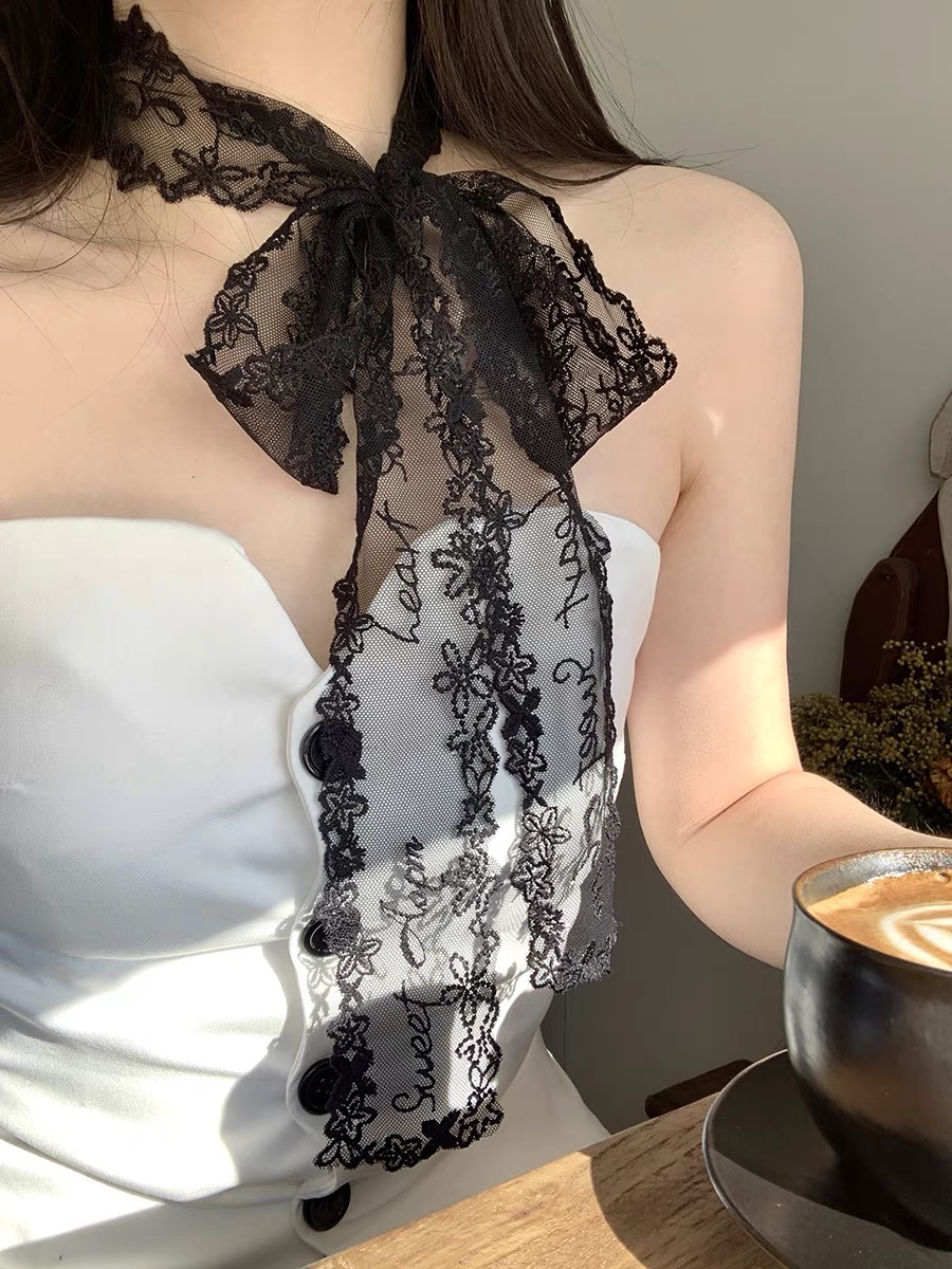 한국 스타일 블랙 순수한 욕망 레이스 리본 여성의 얇은 실크 스카프 헤어 밴드 타이 헤어 빈티지 장식 스카프 벨트 봄과 여름