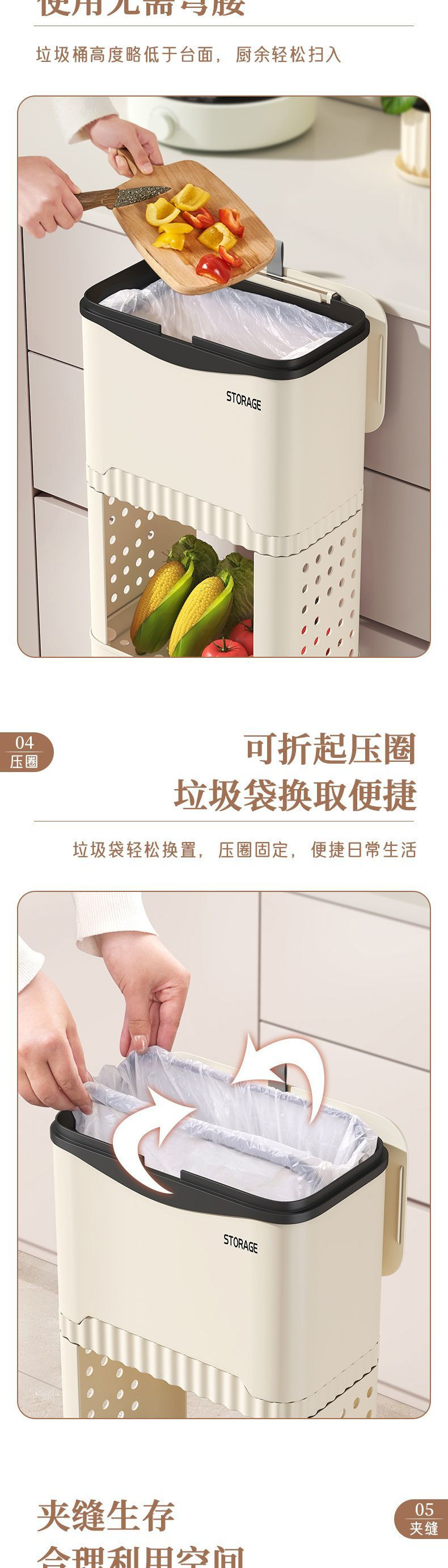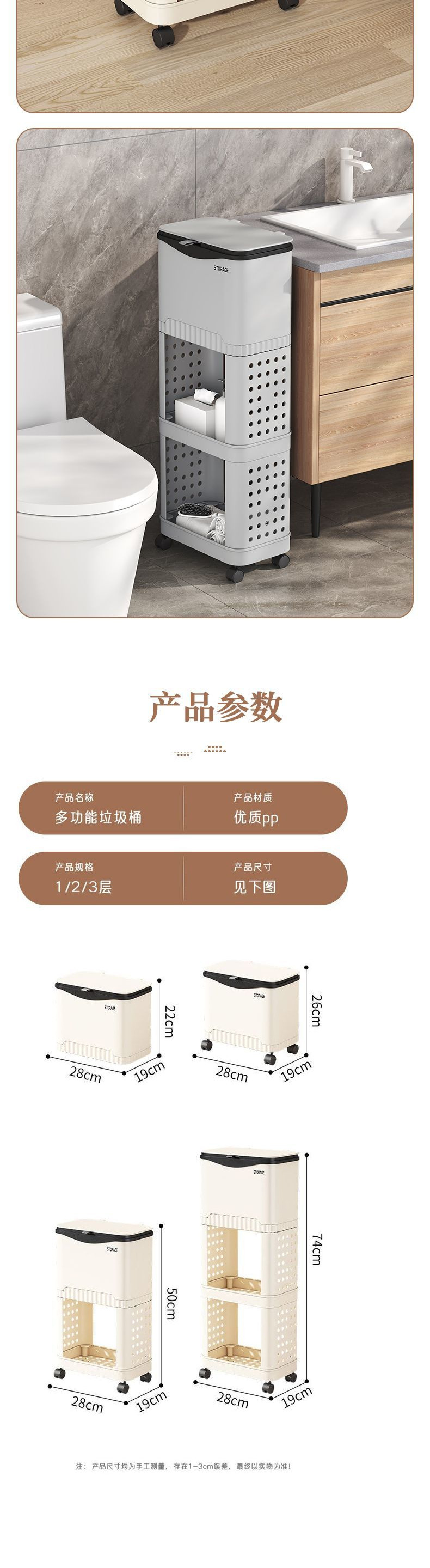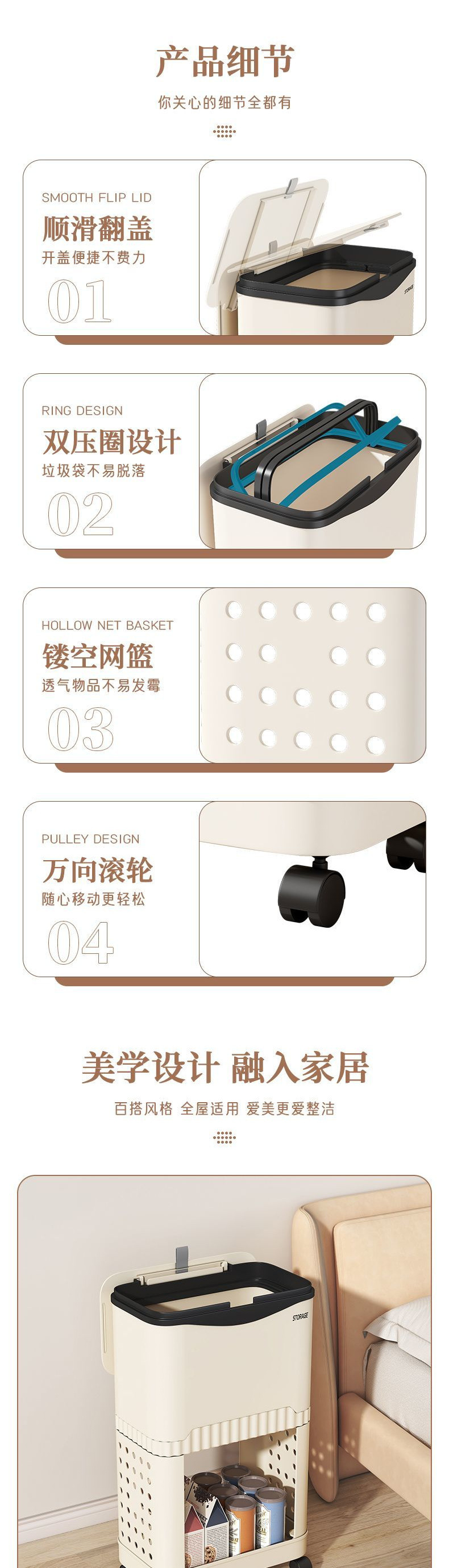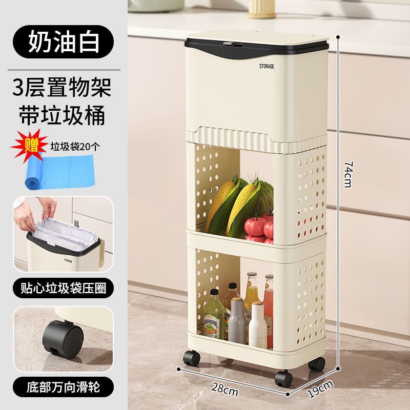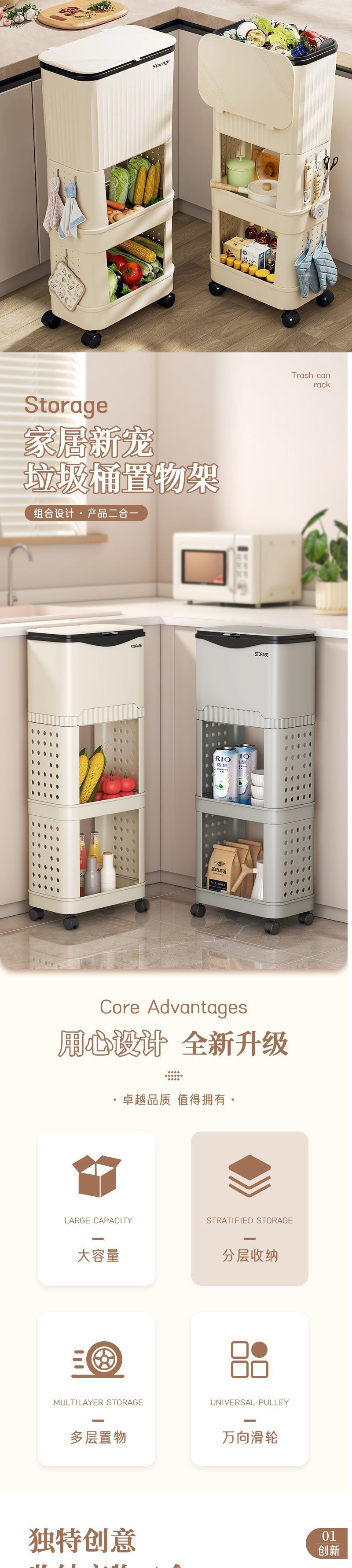 주방 휴지통 가정용 대용량 모바일 더블 레이어 스토리지 벤트 허리 용 뚜껑이있는 일본식 다층 스토리지 랙