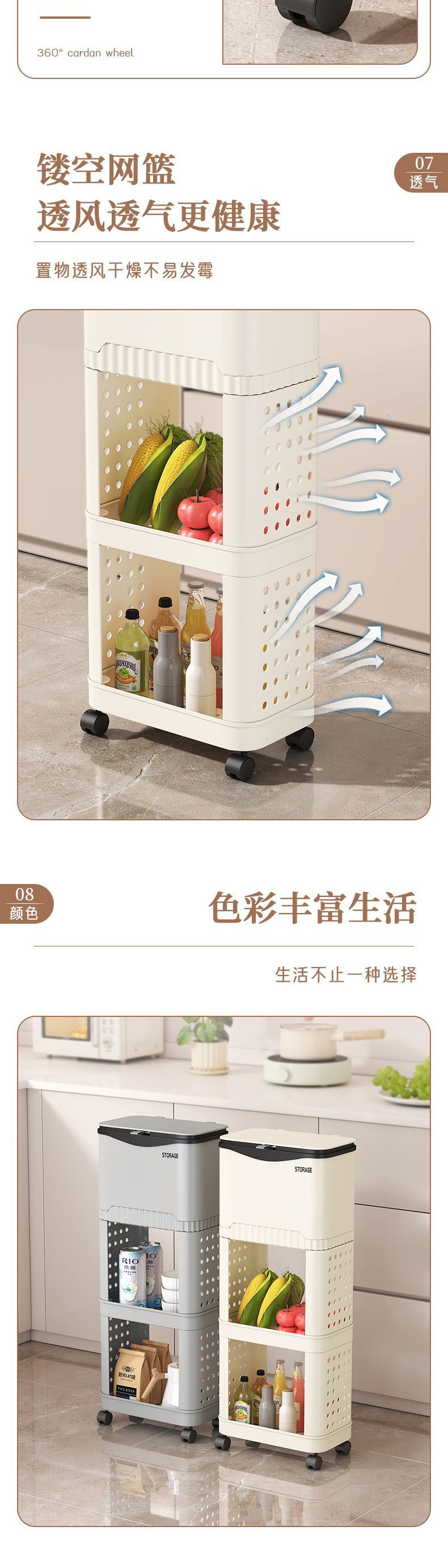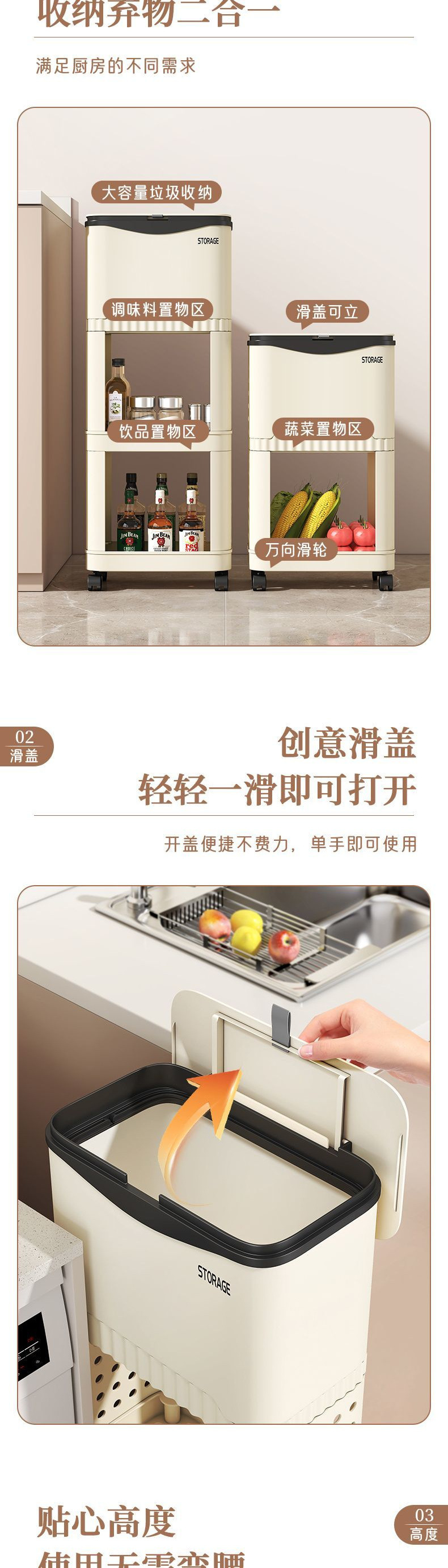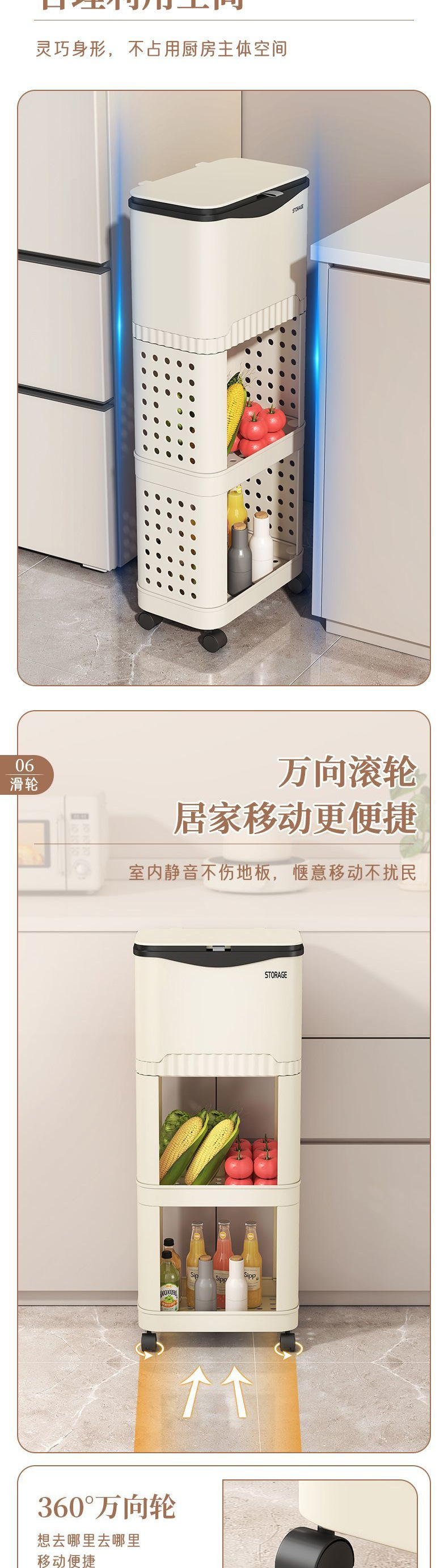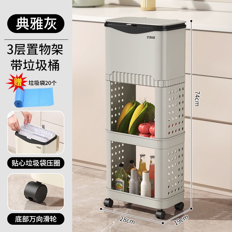 주방 휴지통 가정용 대용량 모바일 더블 레이어 스토리지 벤트 허리 용 뚜껑이있는 일본식 다층 스토리지 랙스토어 가기