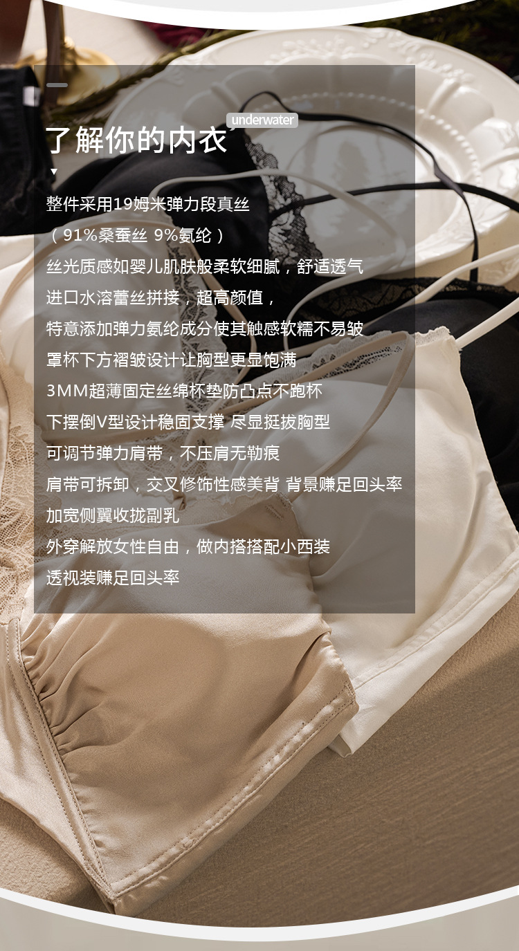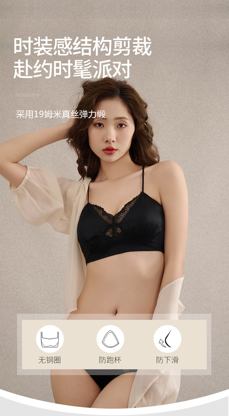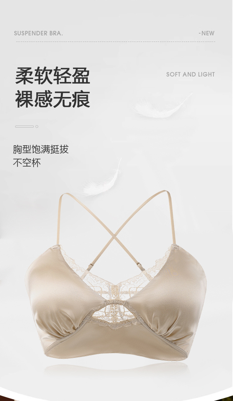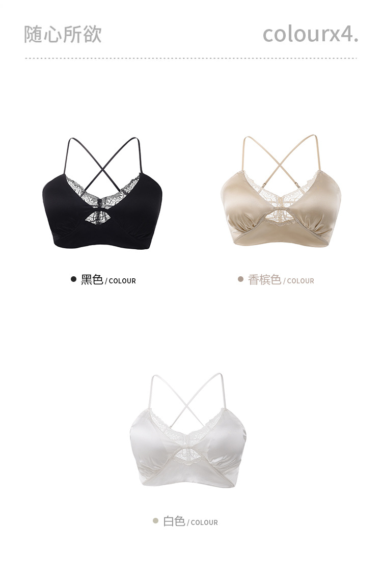 Guolan 19 Mmi Satin 실크 얇은 브라 뽕나무 실크 크로스 벨트 뷰티 백 사이드 웨어러리스 속옷