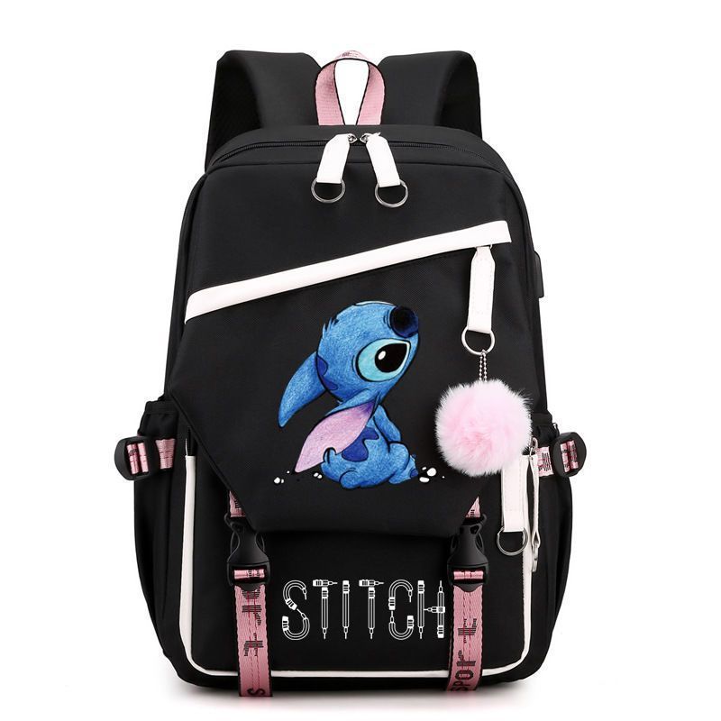 새로운 스타 아기 스티치 스티치 스티치 USB 충전식 스쿨백 남녀 학생 배낭 배낭스토어 가기