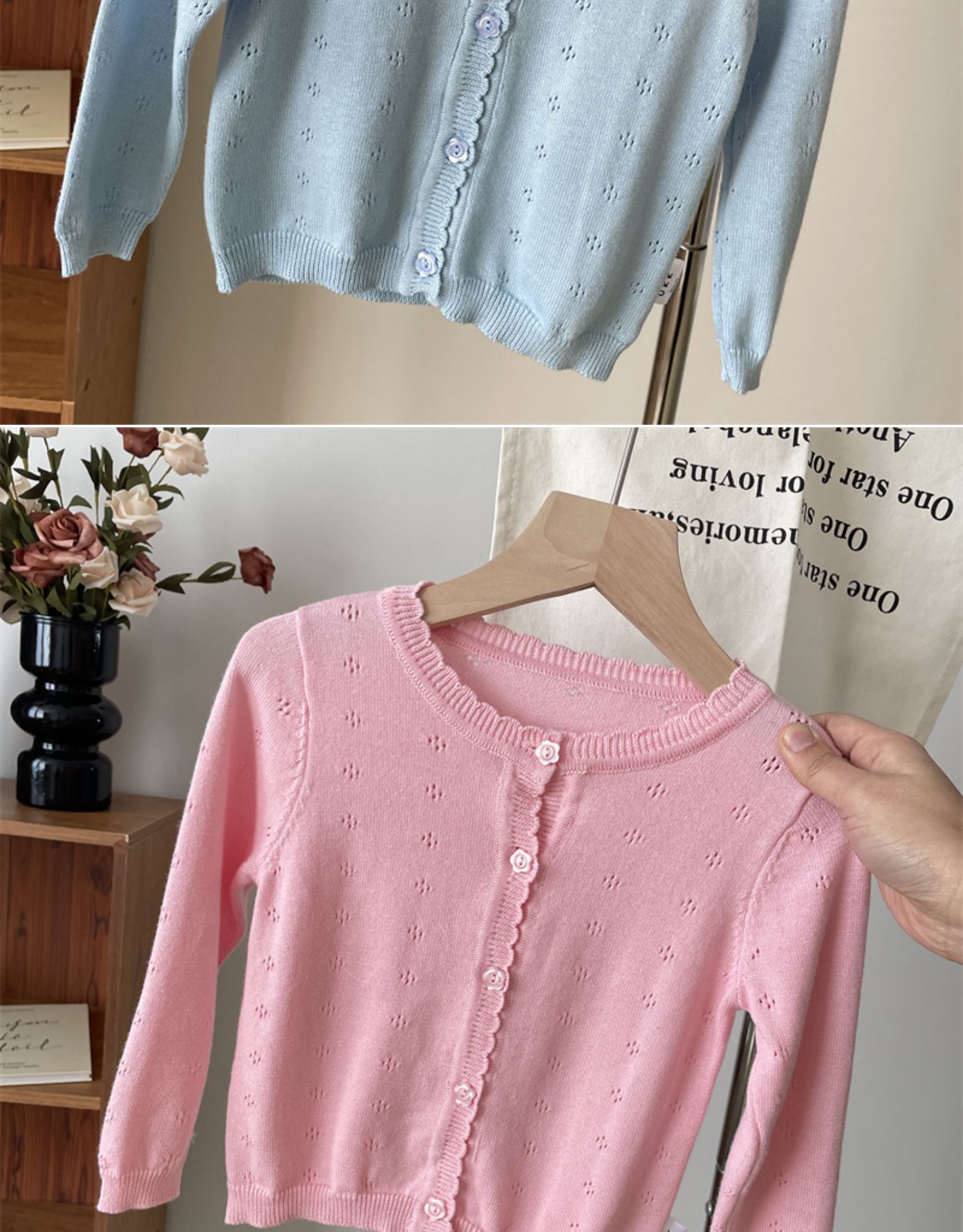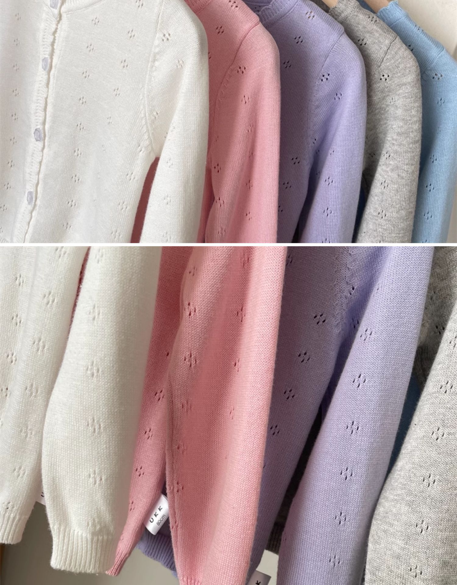 • 핑크 중공 곰팡이 가장자리 니트 가디건