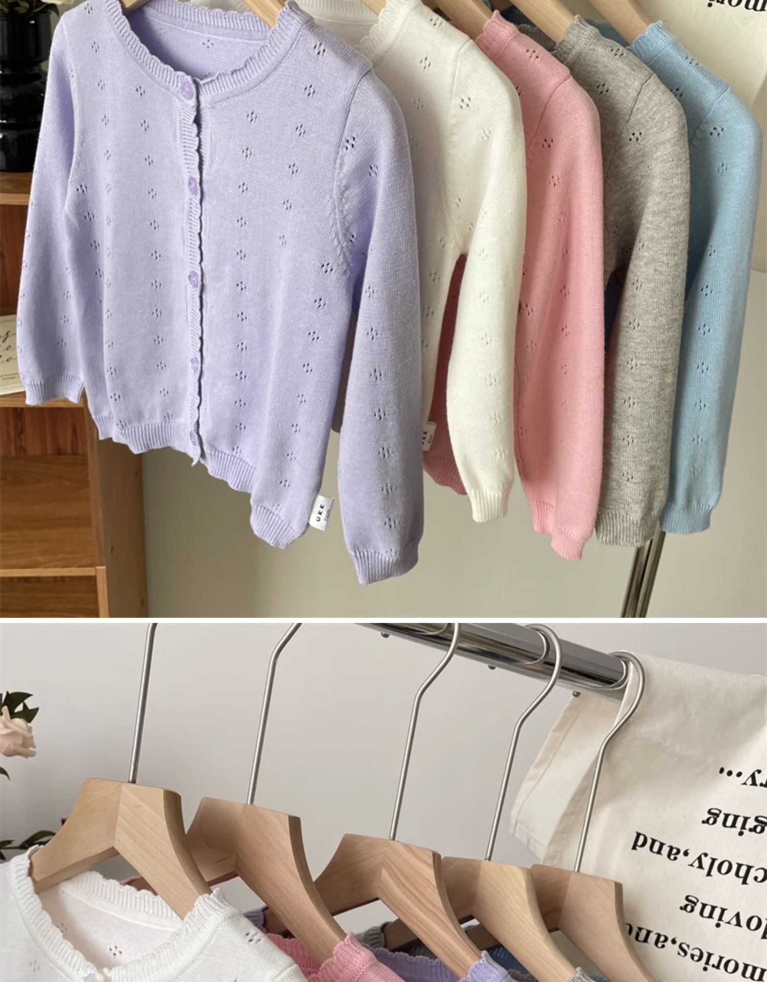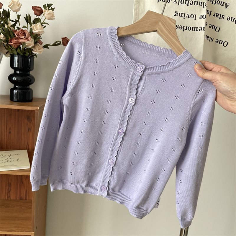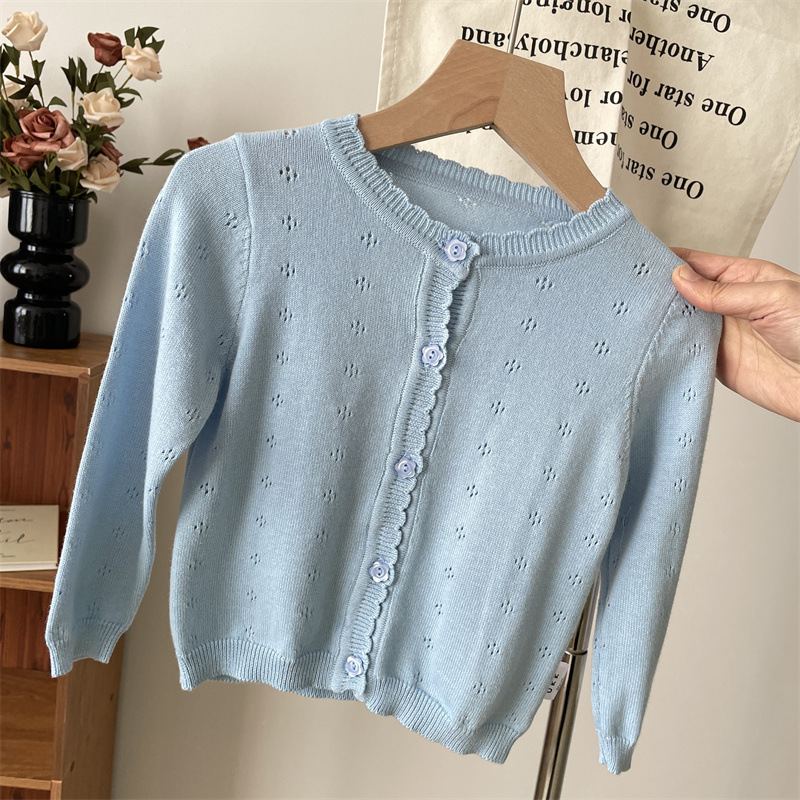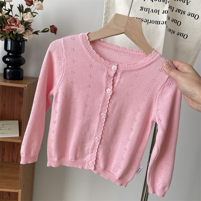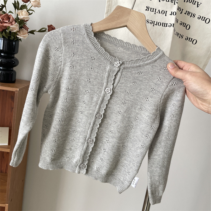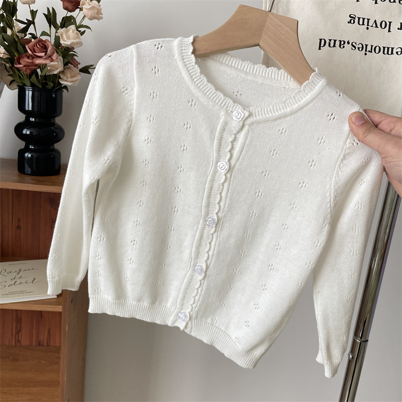 2025 봄 옷 아기의 얇은 니트 카디건 소녀의 흰색 외부 착용 작은 코트 어린이 순수 면 외부 착용