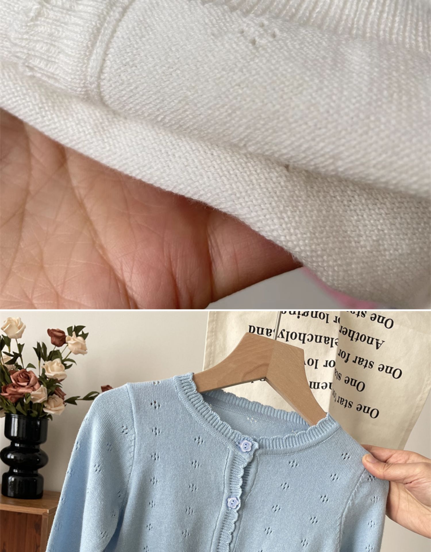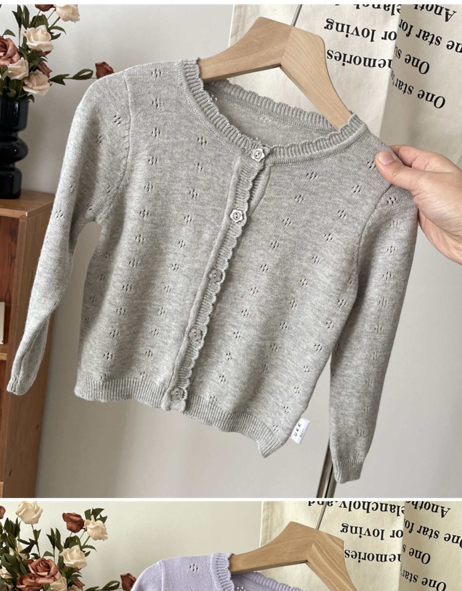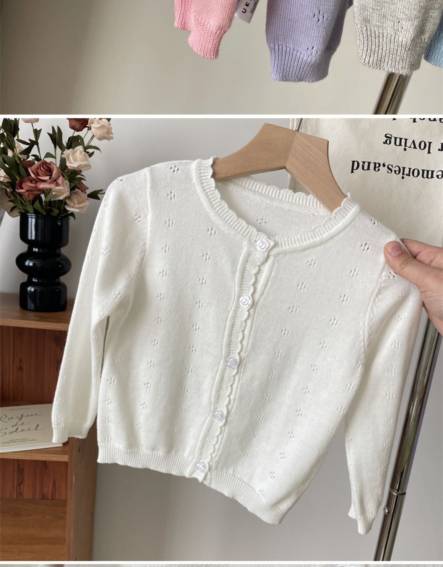 2025 봄 옷 아기의 얇은 니트 카디건 소녀의 흰색 외부 착용 작은 코트 어린이 순수 면 외부 착용