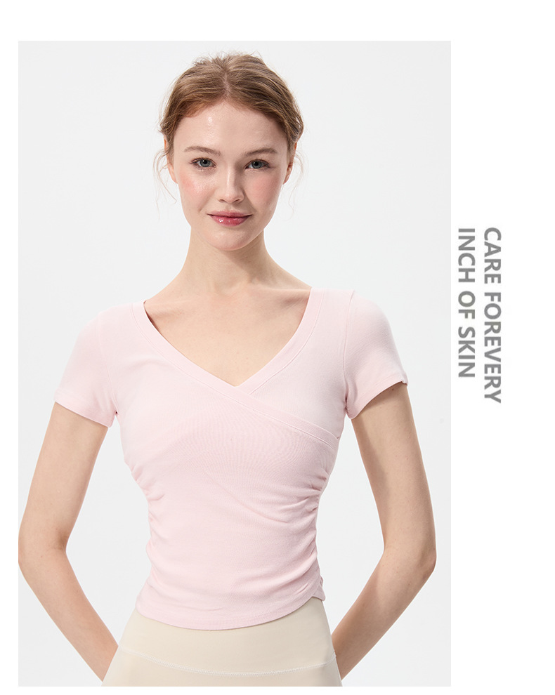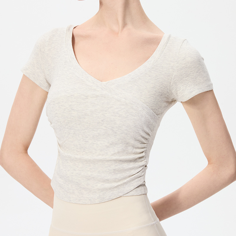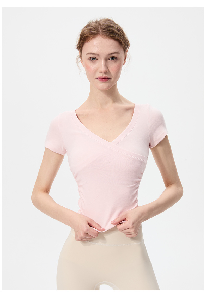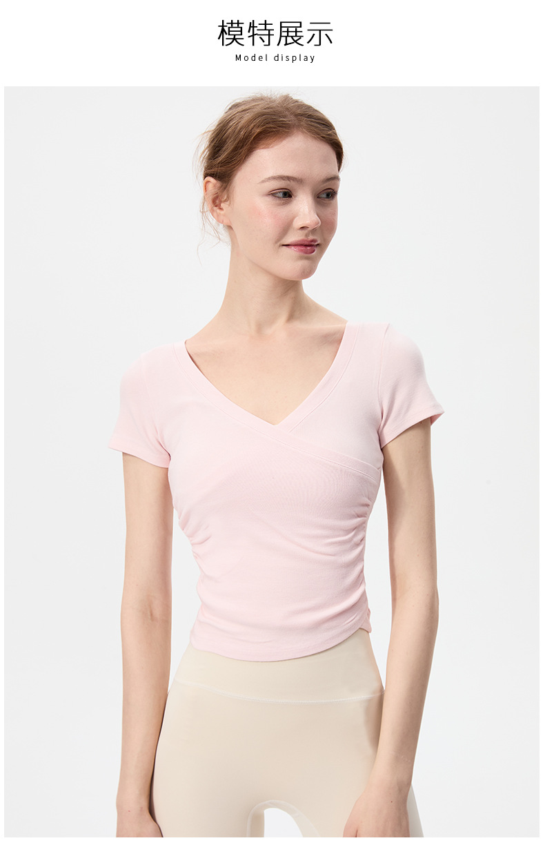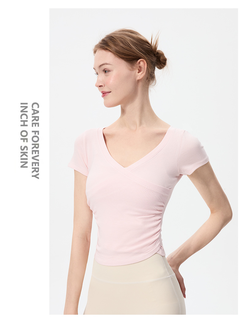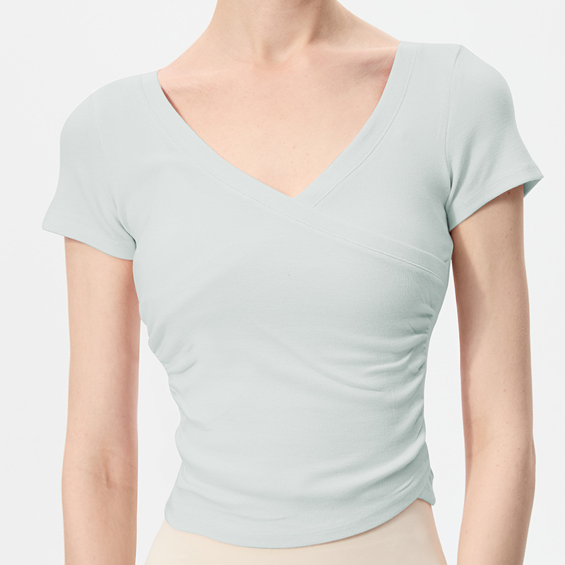 이른 봄 새로운 섹시한 크로스 오버 V 넥 요가 탑 여성용 슬림 핏 슬리밍 스포츠 티셔츠 빠른 건조 달리기 피트니스 옷